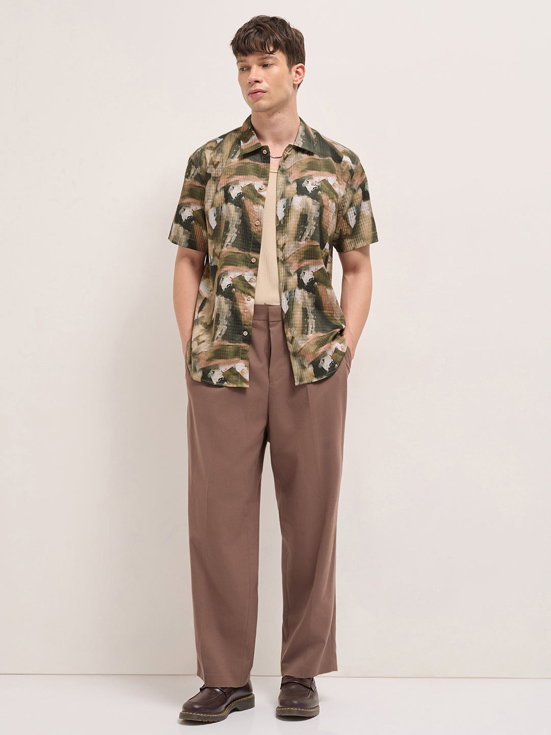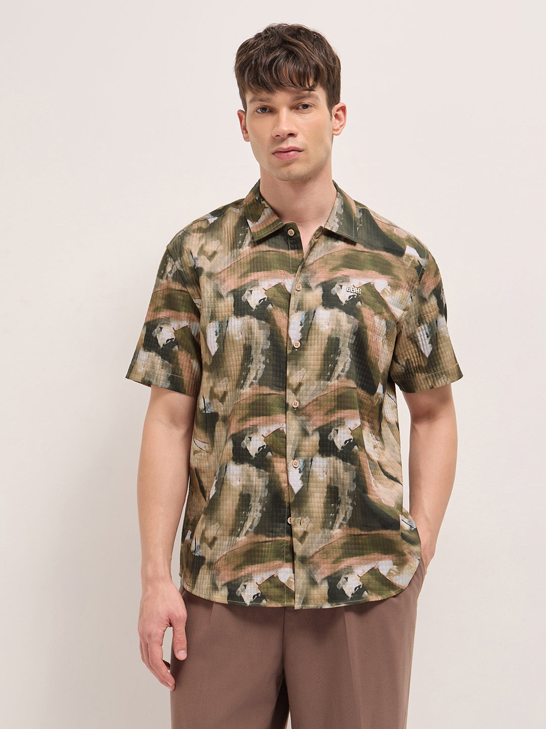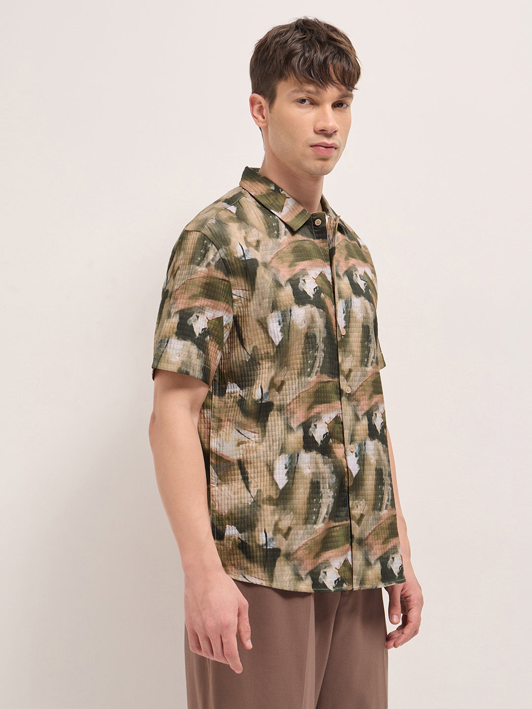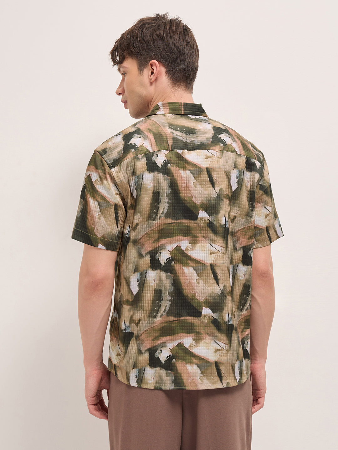 Multicolor Textured Check Abstract Digital Print Relaxed Fit Casual Shirt