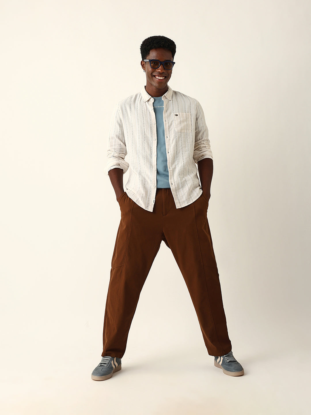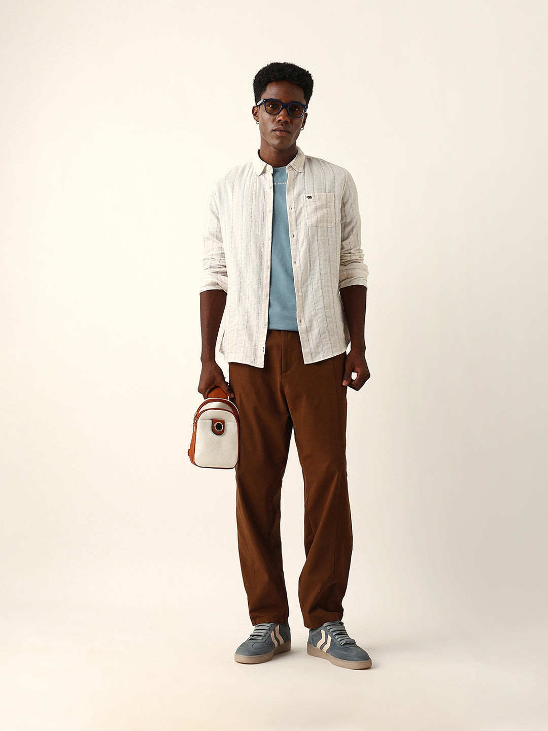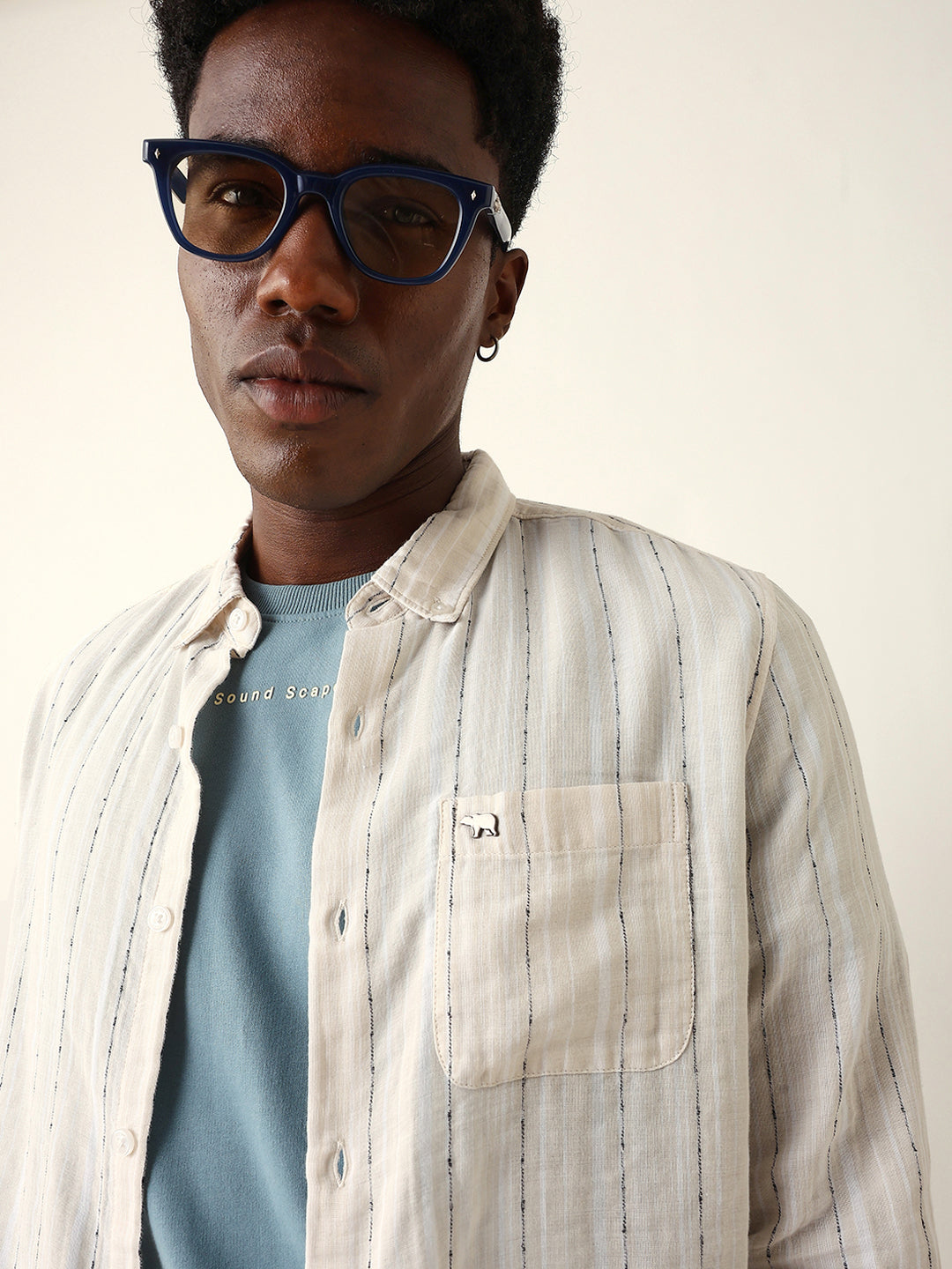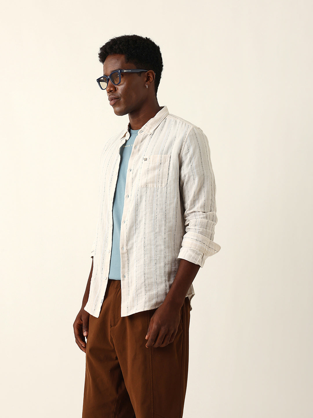 Shop Cream Woven Vertical Striped Slim Fit Casual Shirt Online.