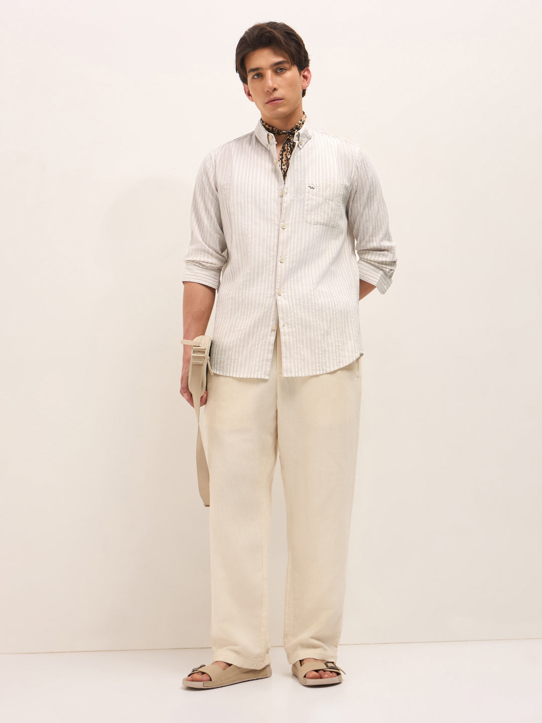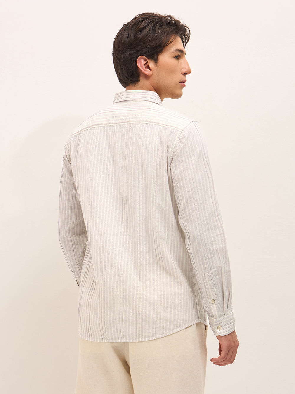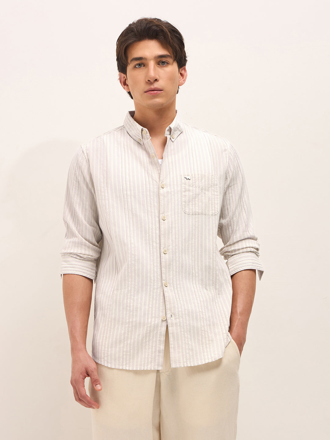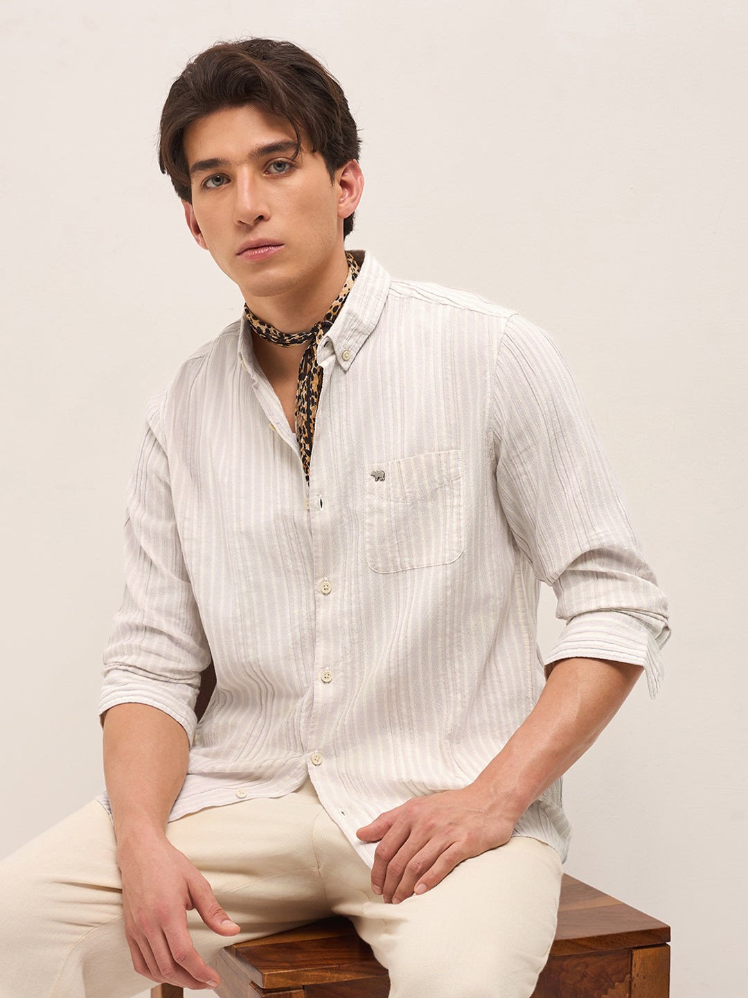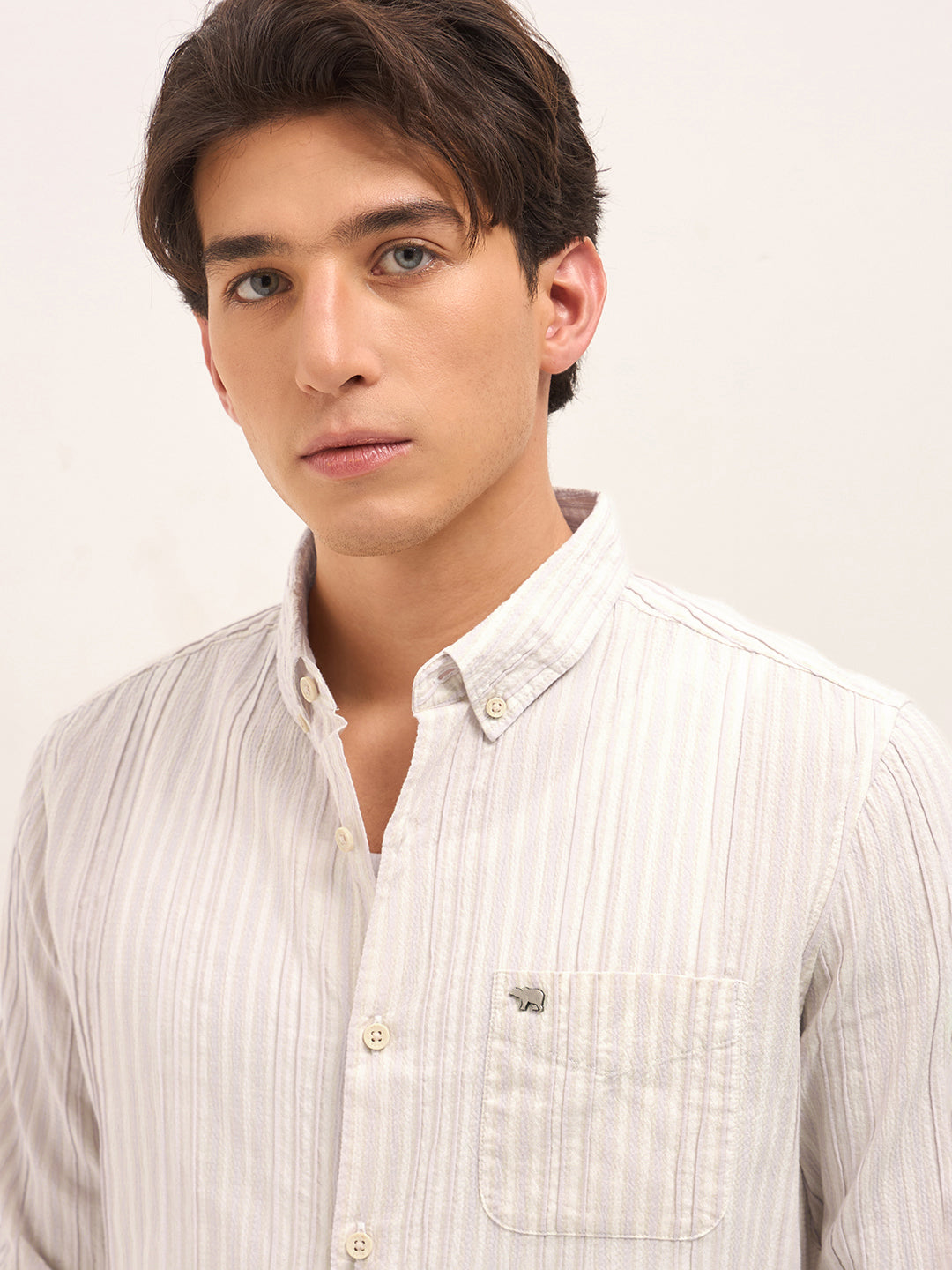 Shop Pink Slim Fit Casual Shirt with Woven Vertical Textured Stripes Online.
