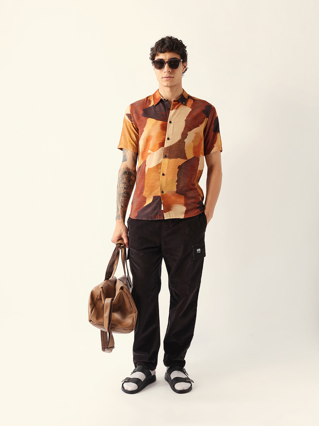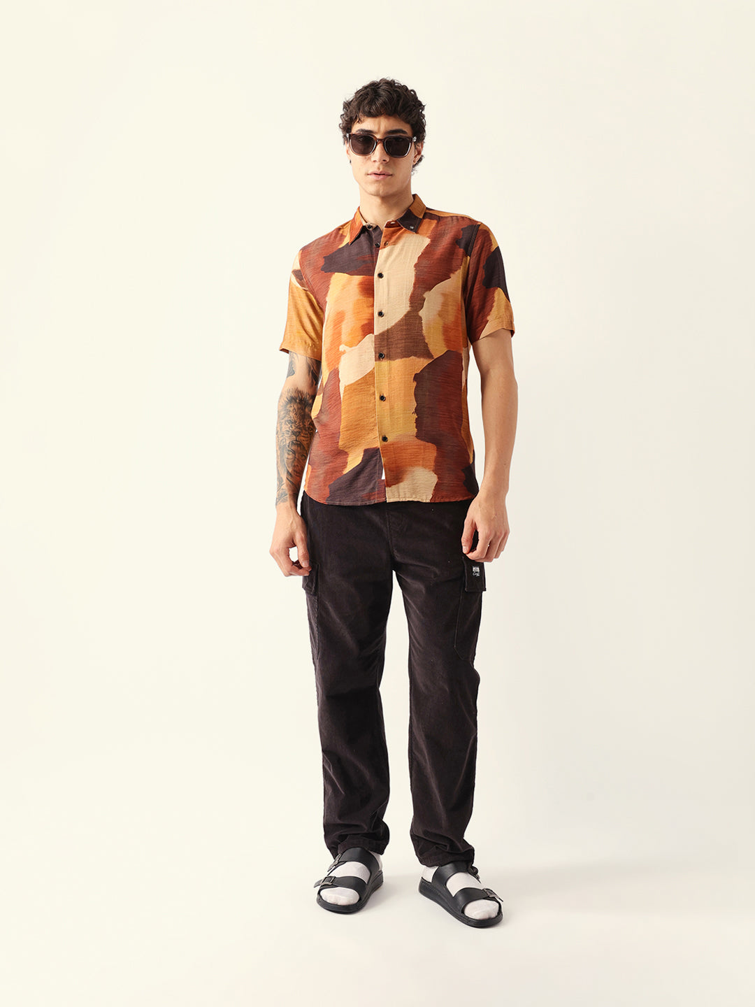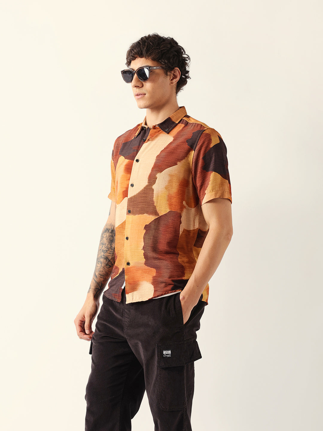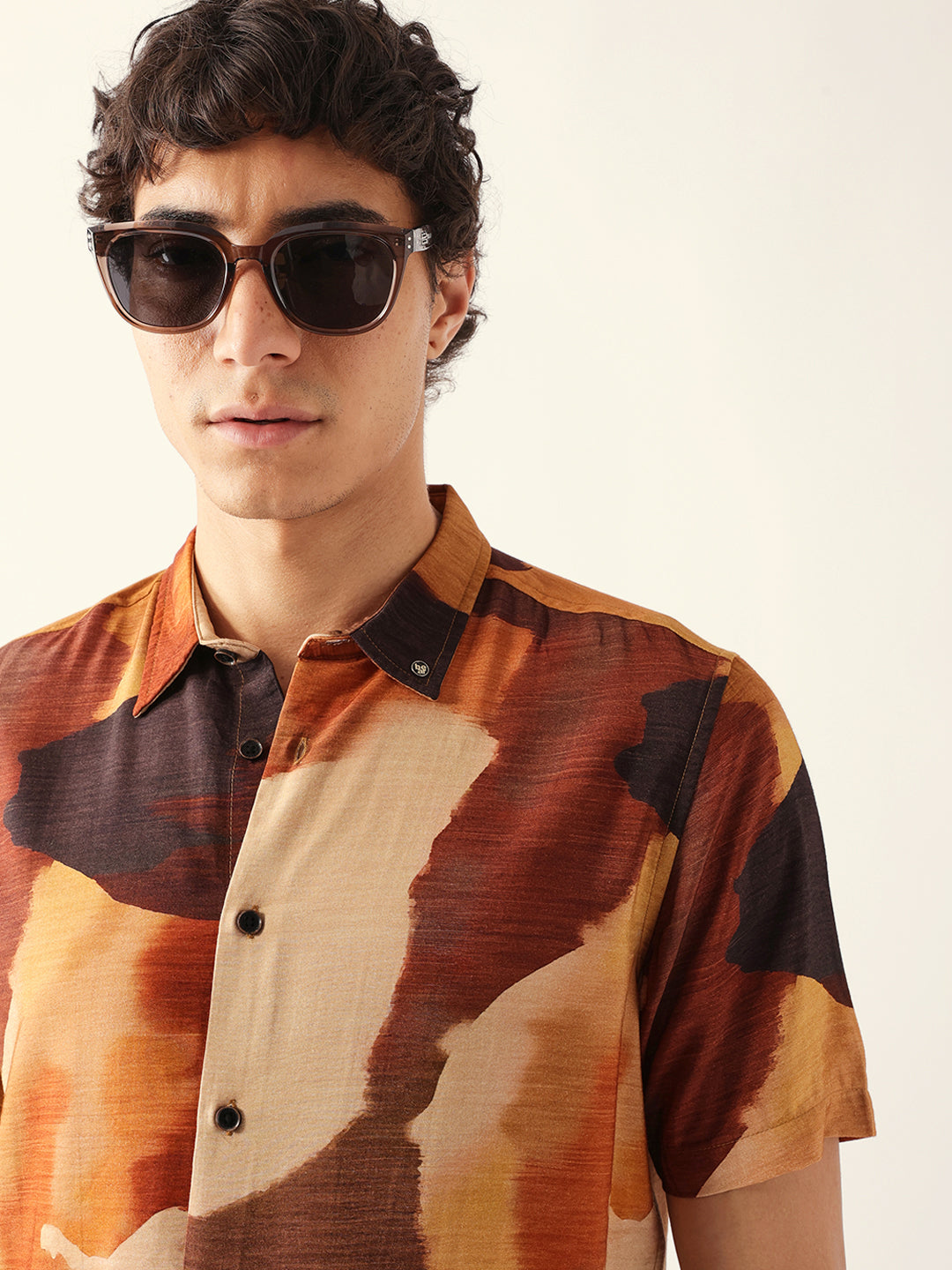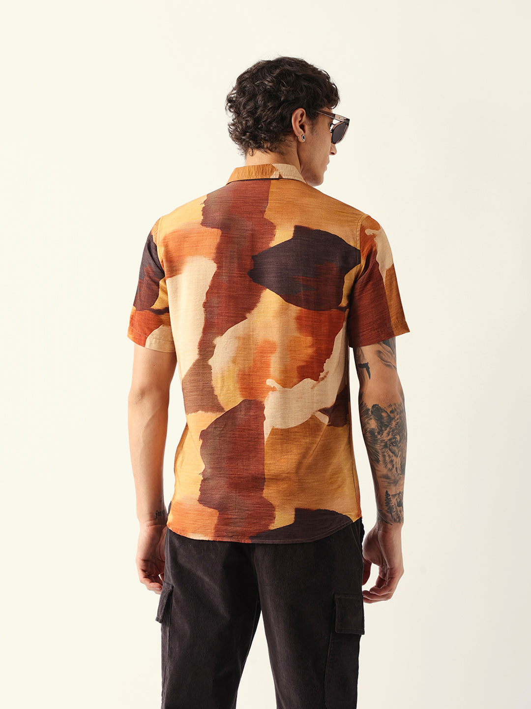 Shop Multicolor Abstract Watercolor Brushstroke Print Regular Fit Casual Shirt Online.