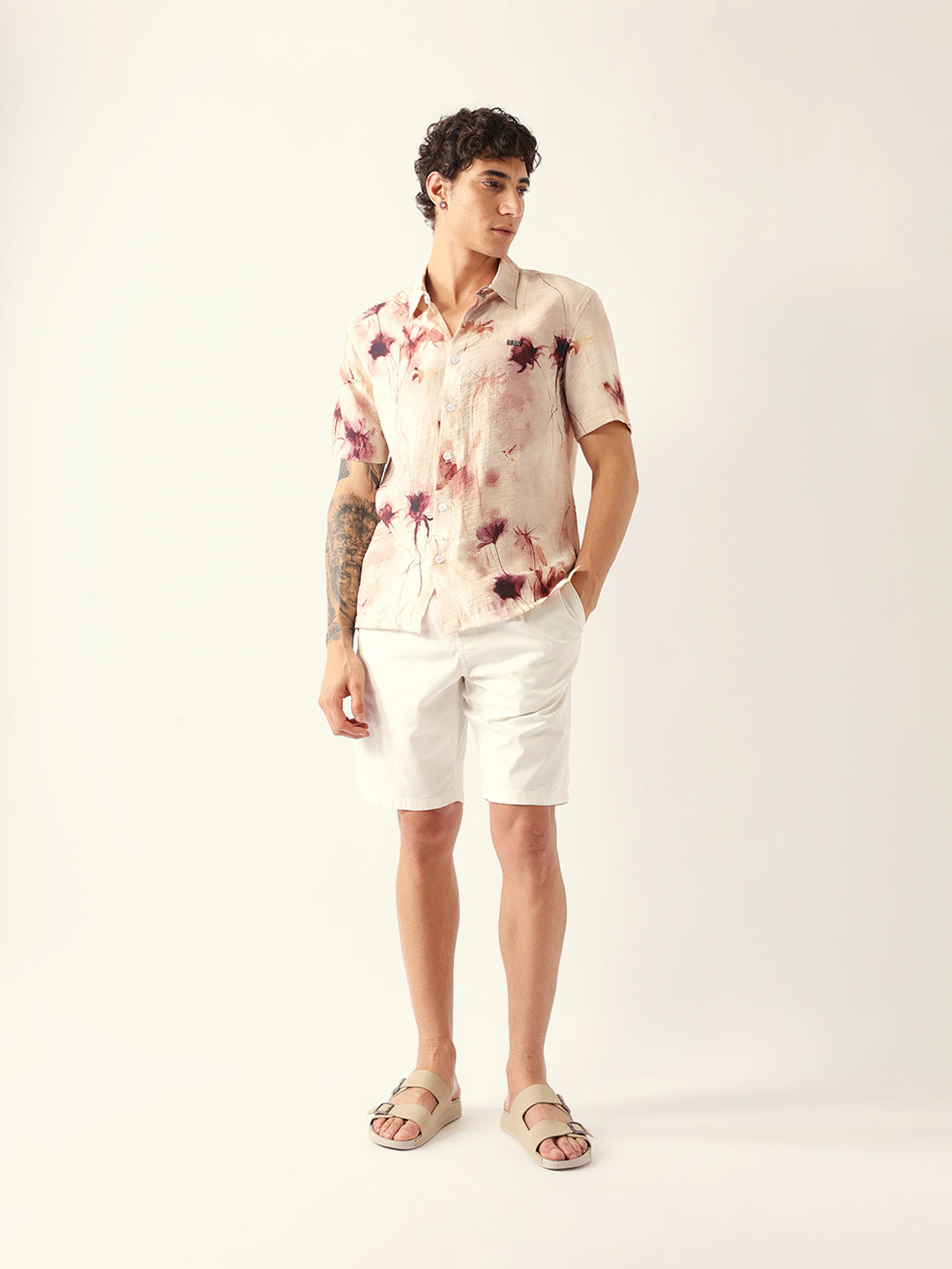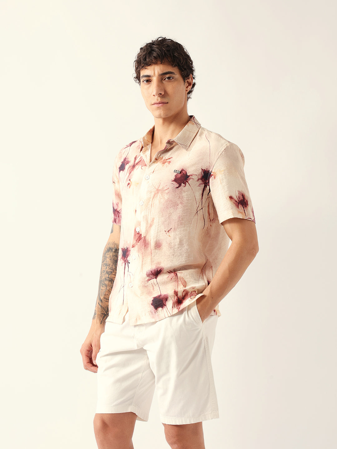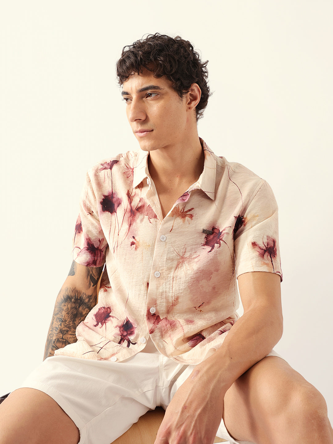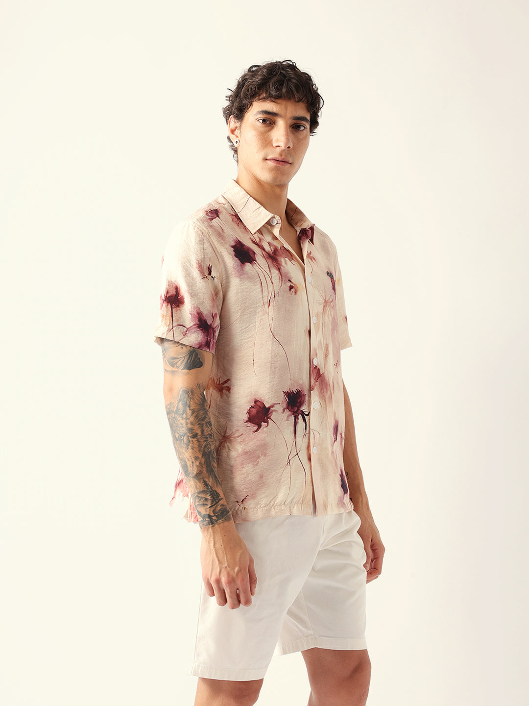 Shop Multicolor Watercolor Botanical Print Relax Fit Casual Shirt Online.