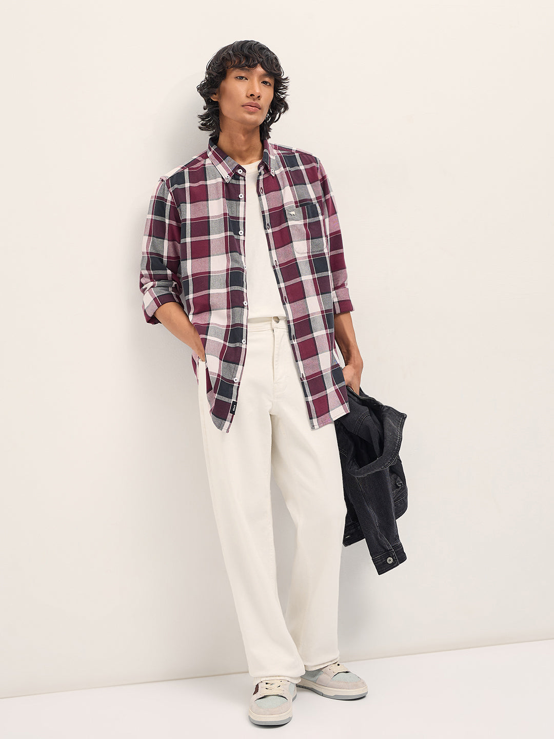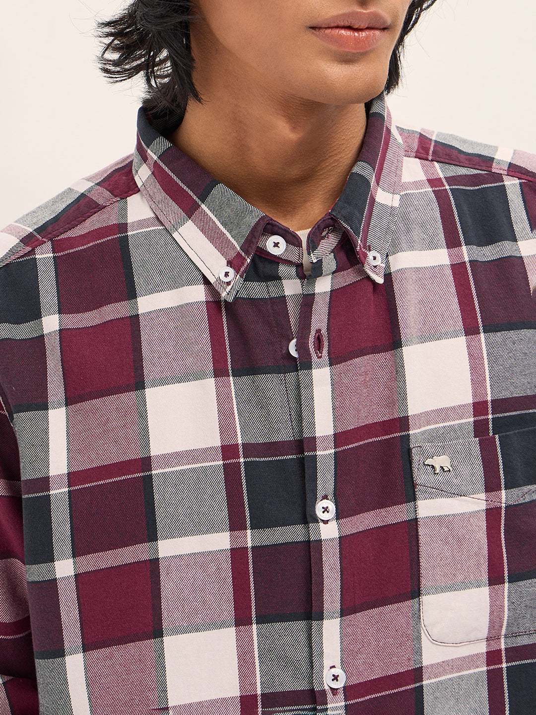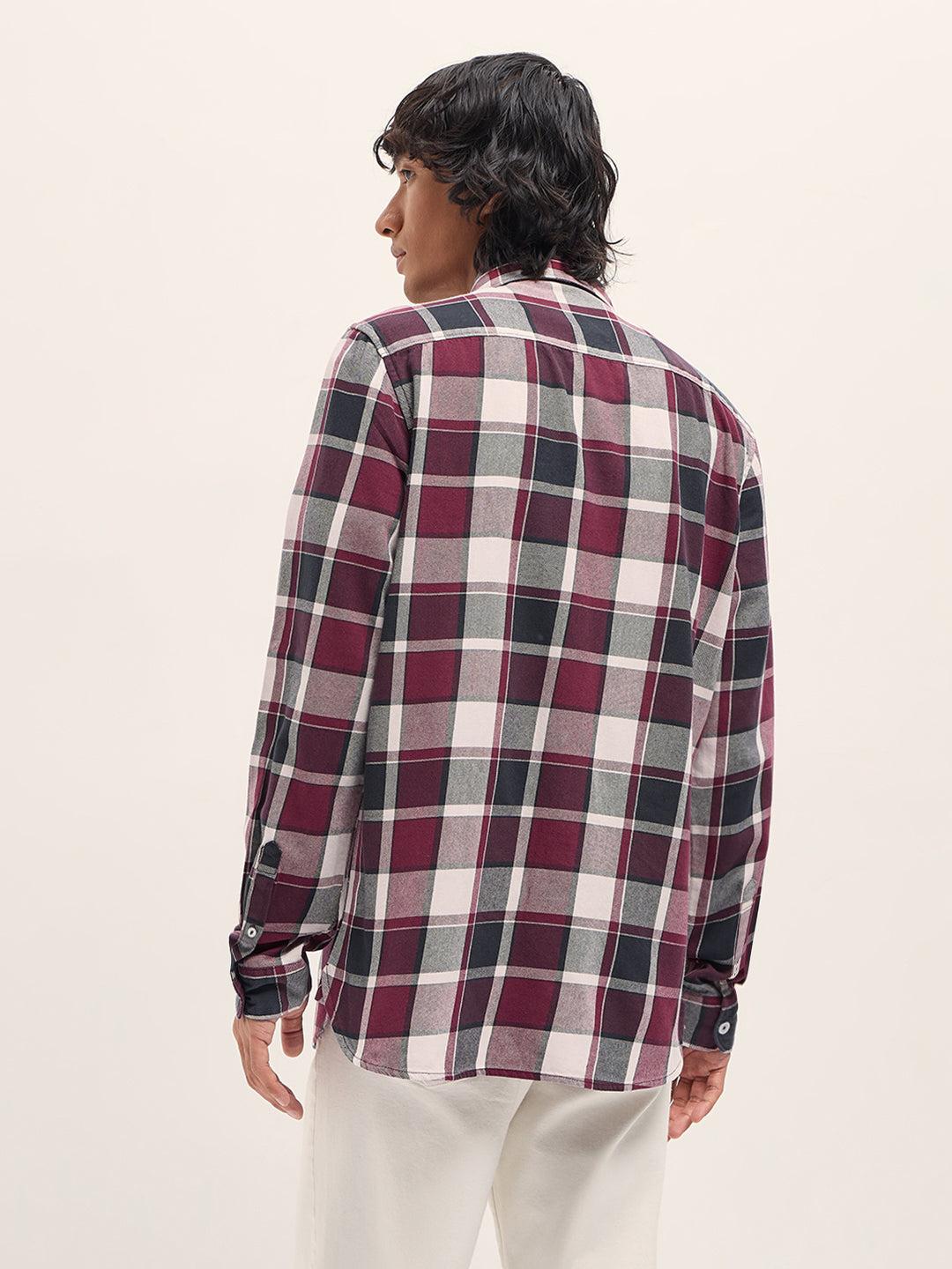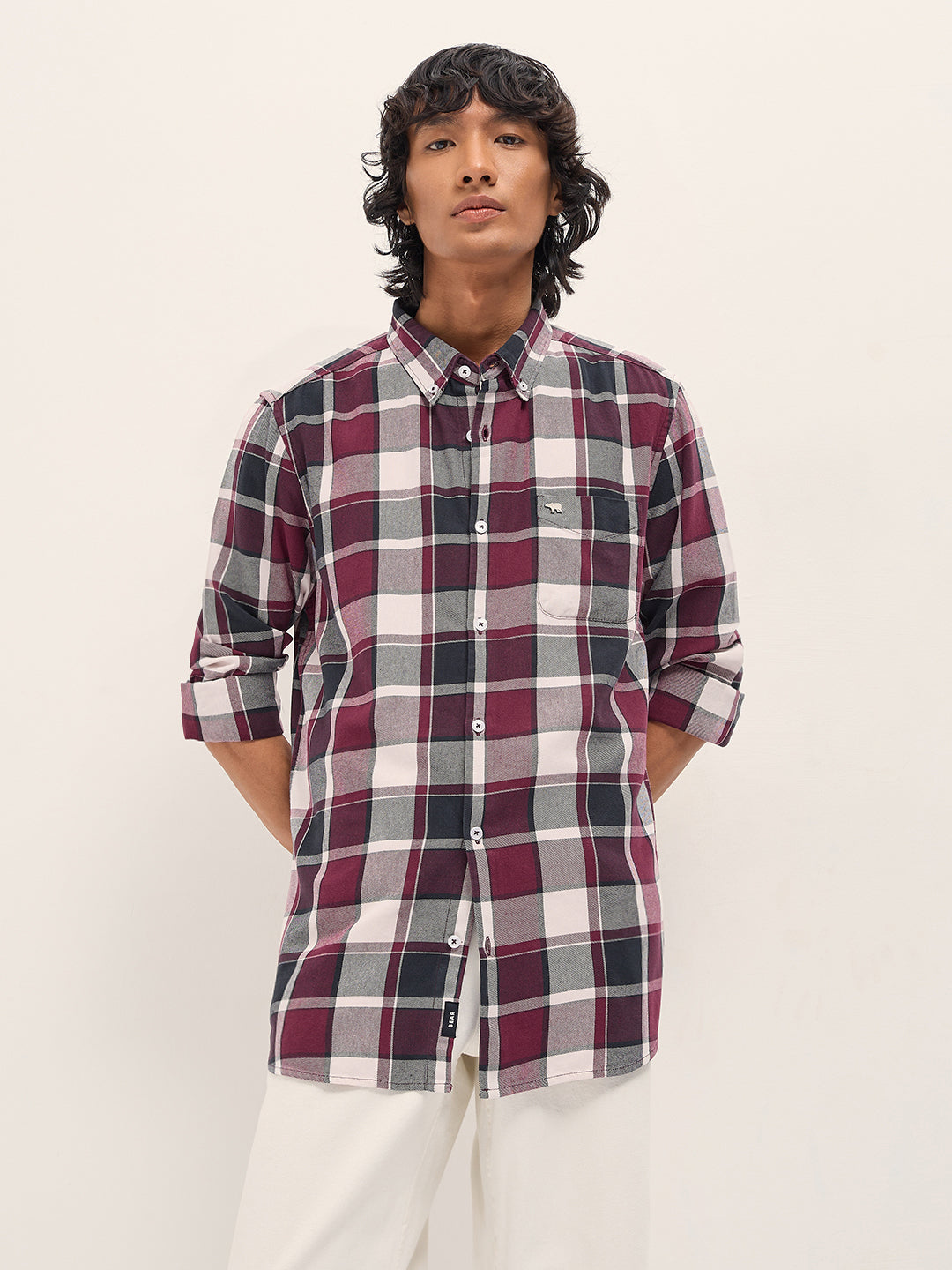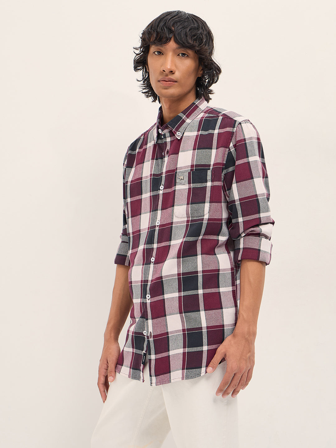 Multicolor Woven Tartan Checks Slim Fit Casual Shirt