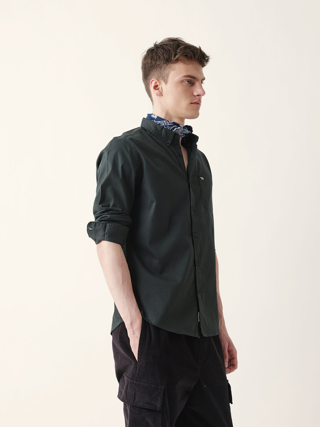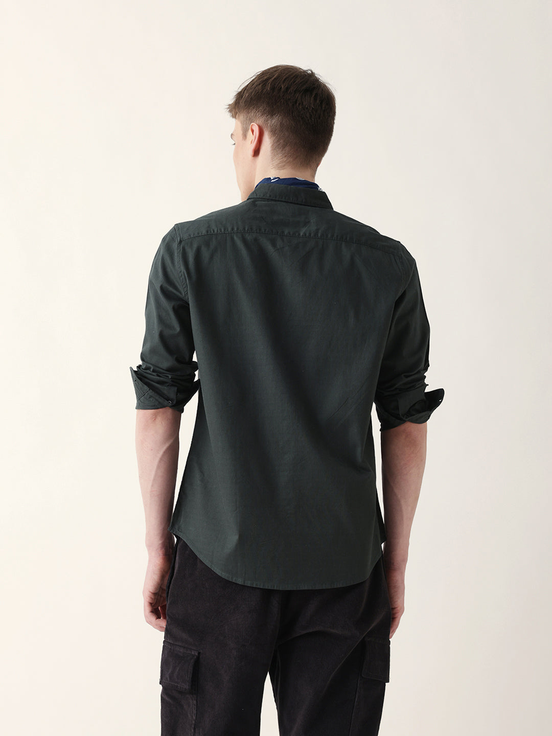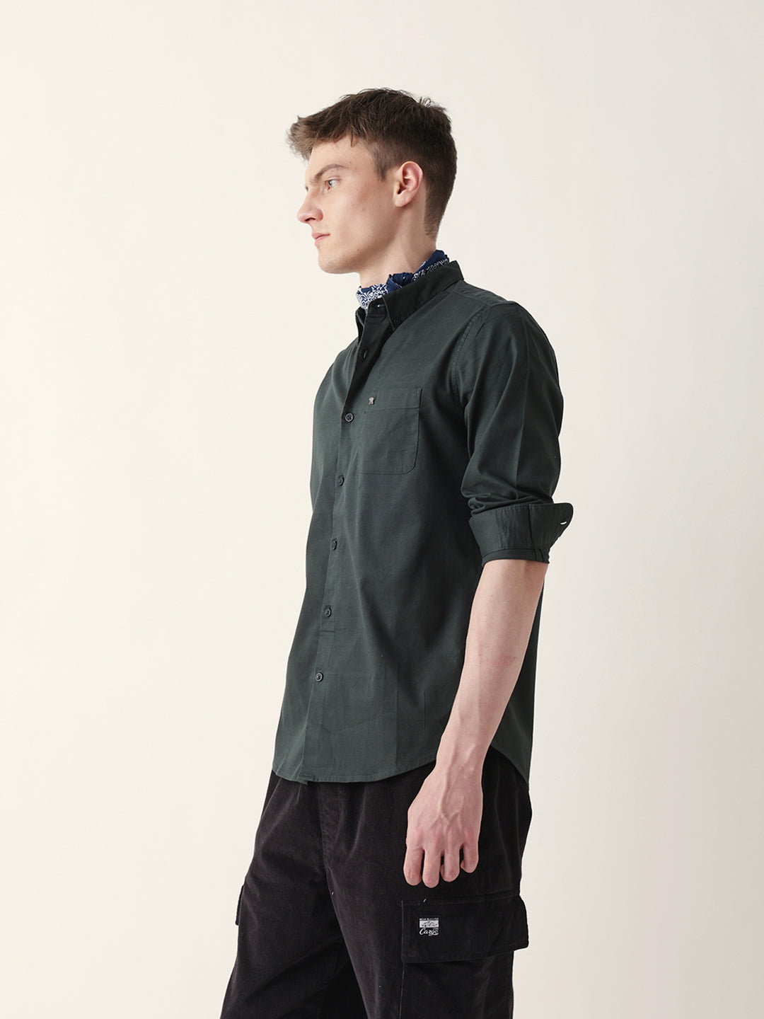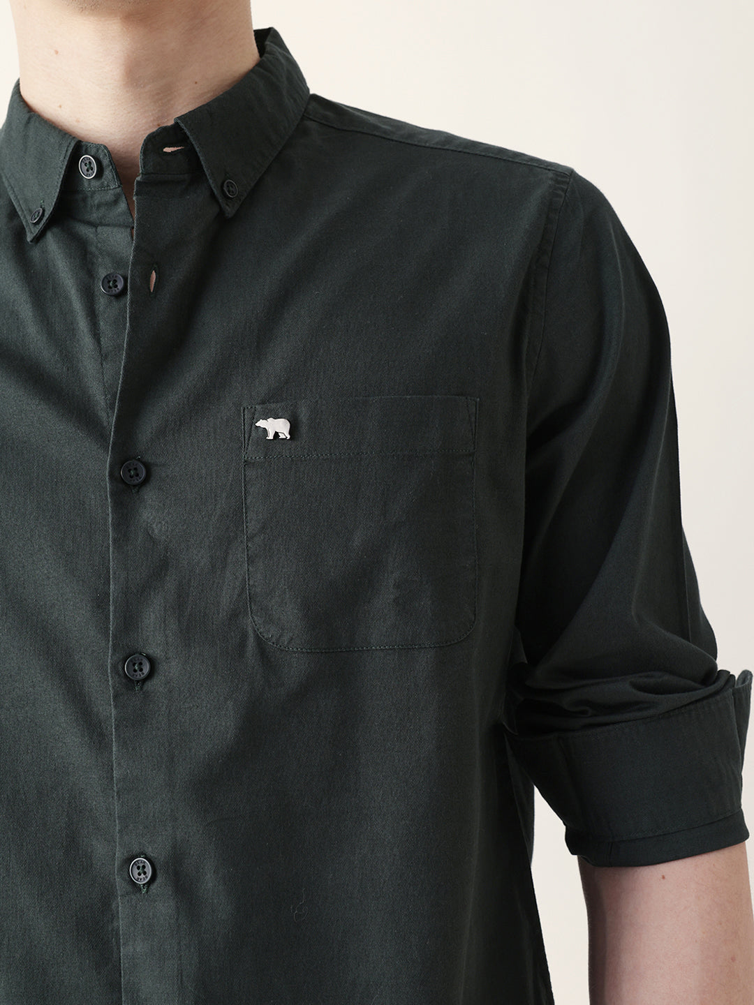 Dark Olive Solid Slim-Fit Casual Shirt with Button-Down Collar