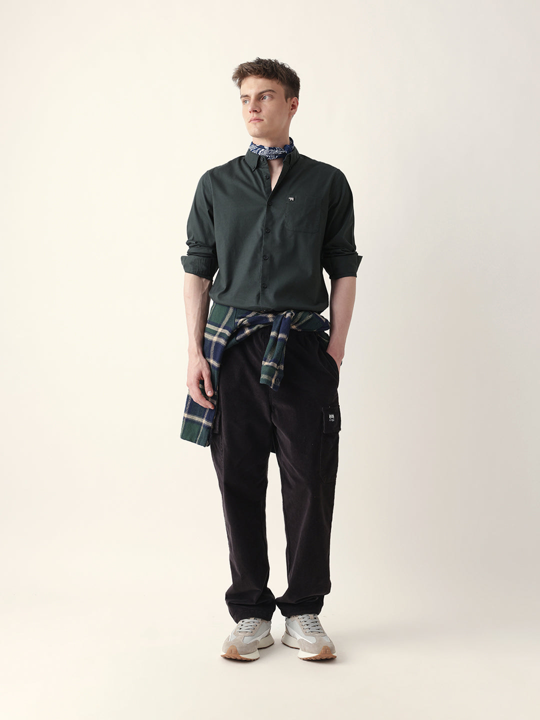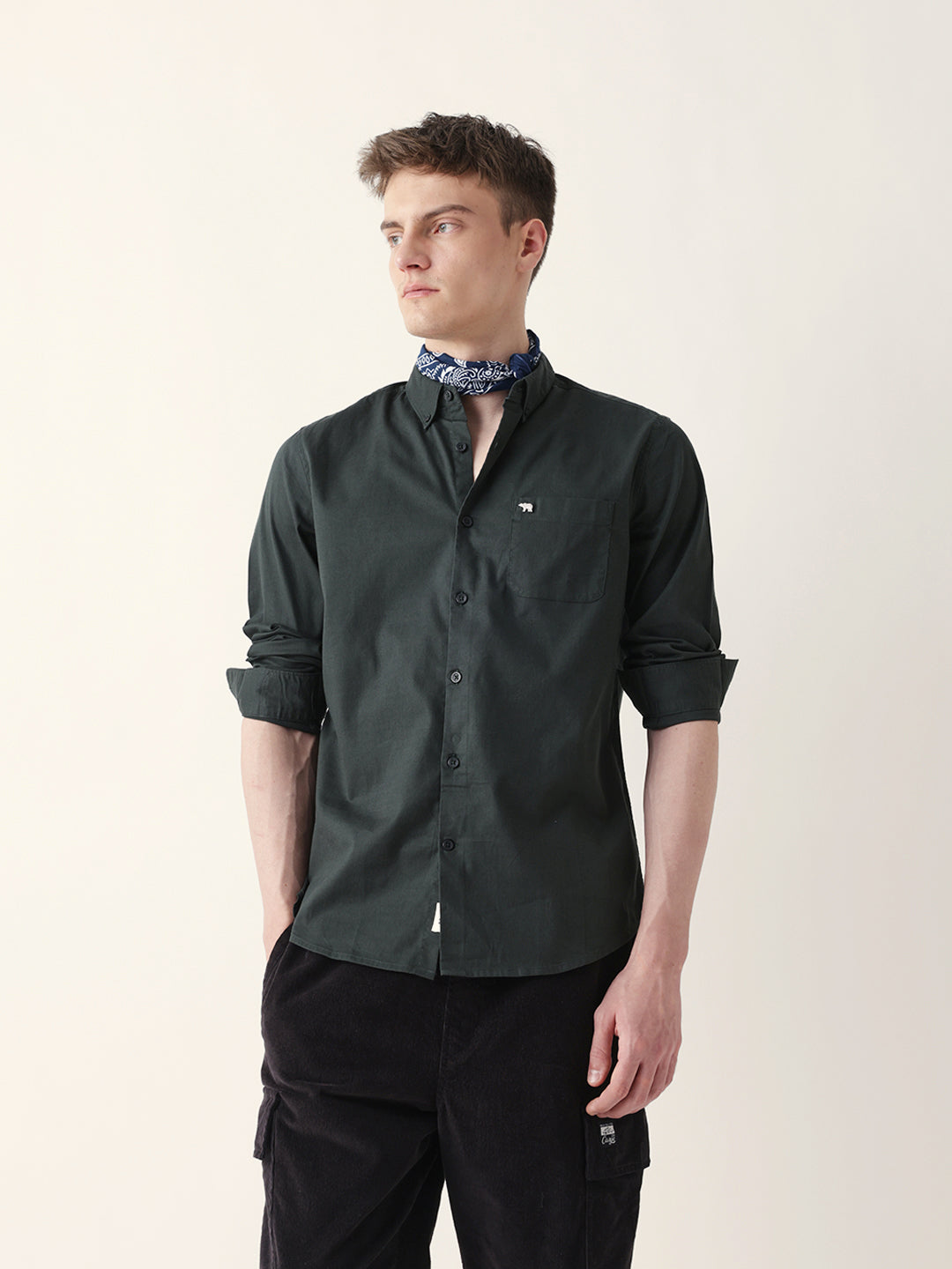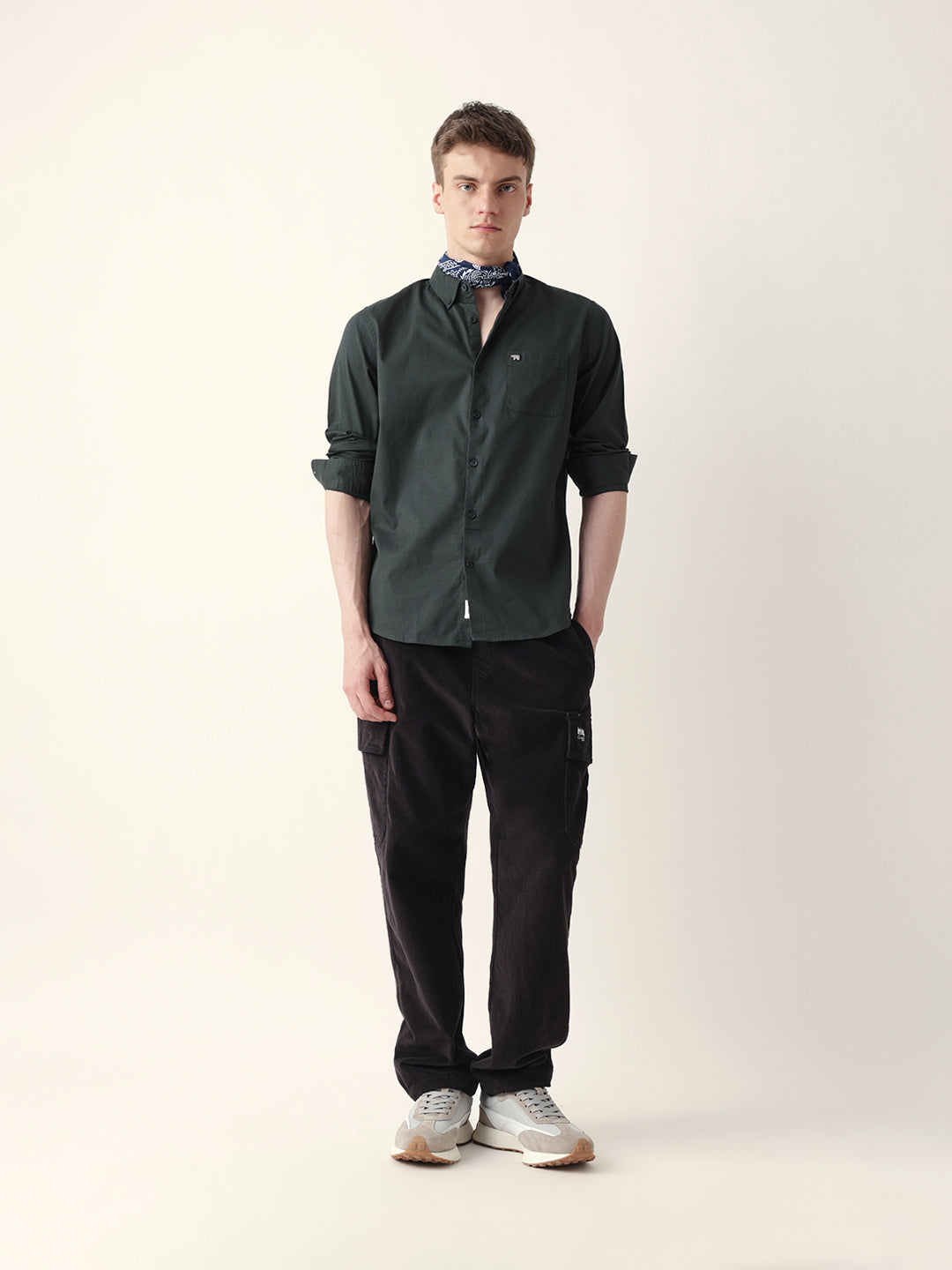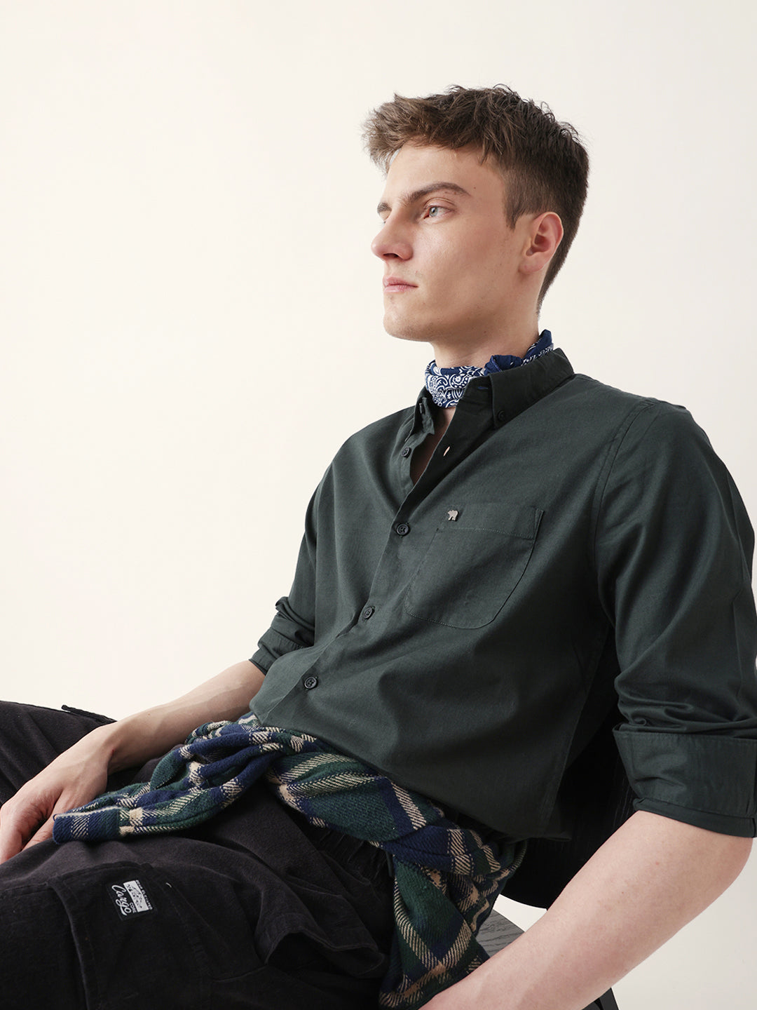 Dark Olive Solid Slim-Fit Casual Shirt with Button-Down Collar
