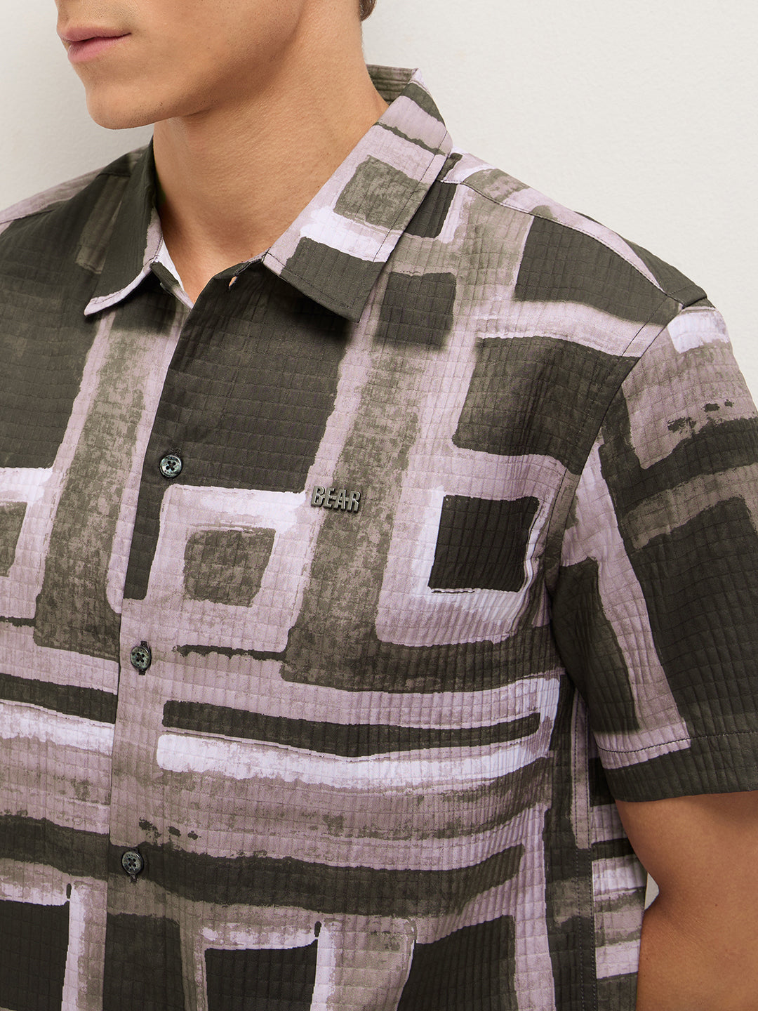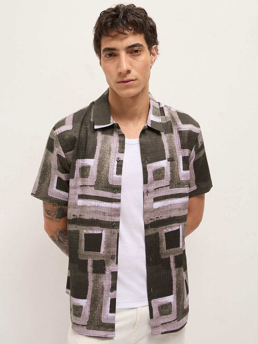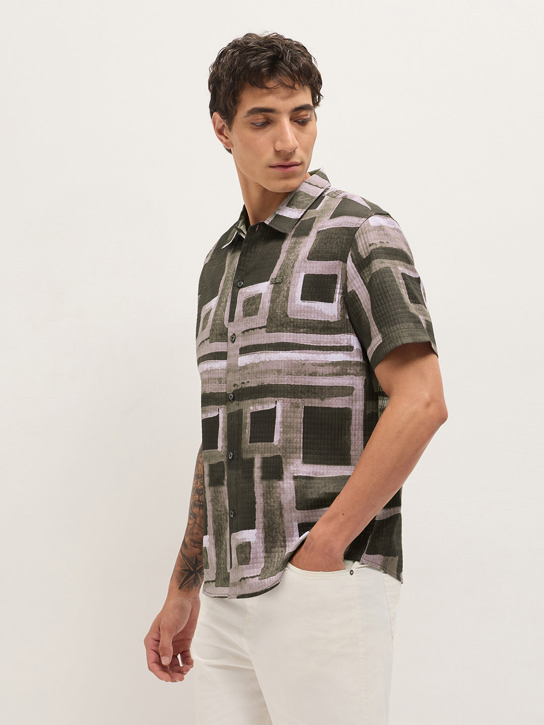 Multicolor Textured Check Geometric Digital Print Relaxed Fit Casual Shirt