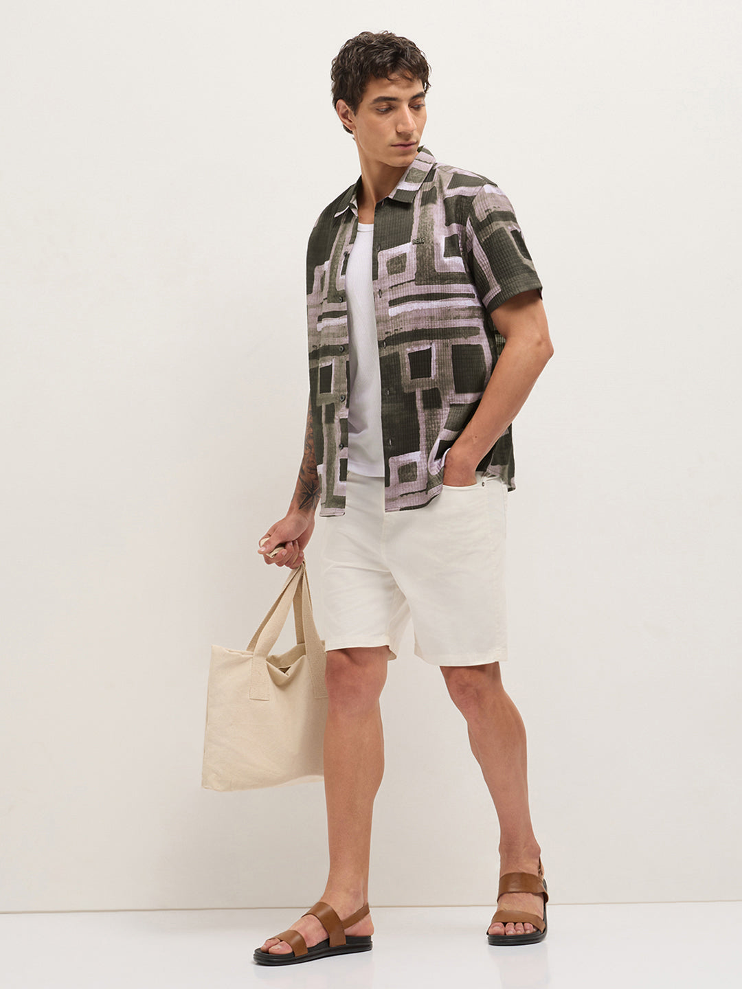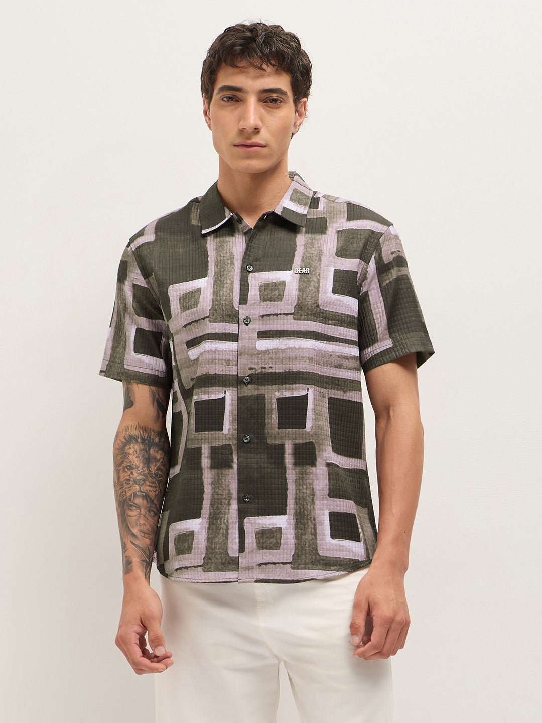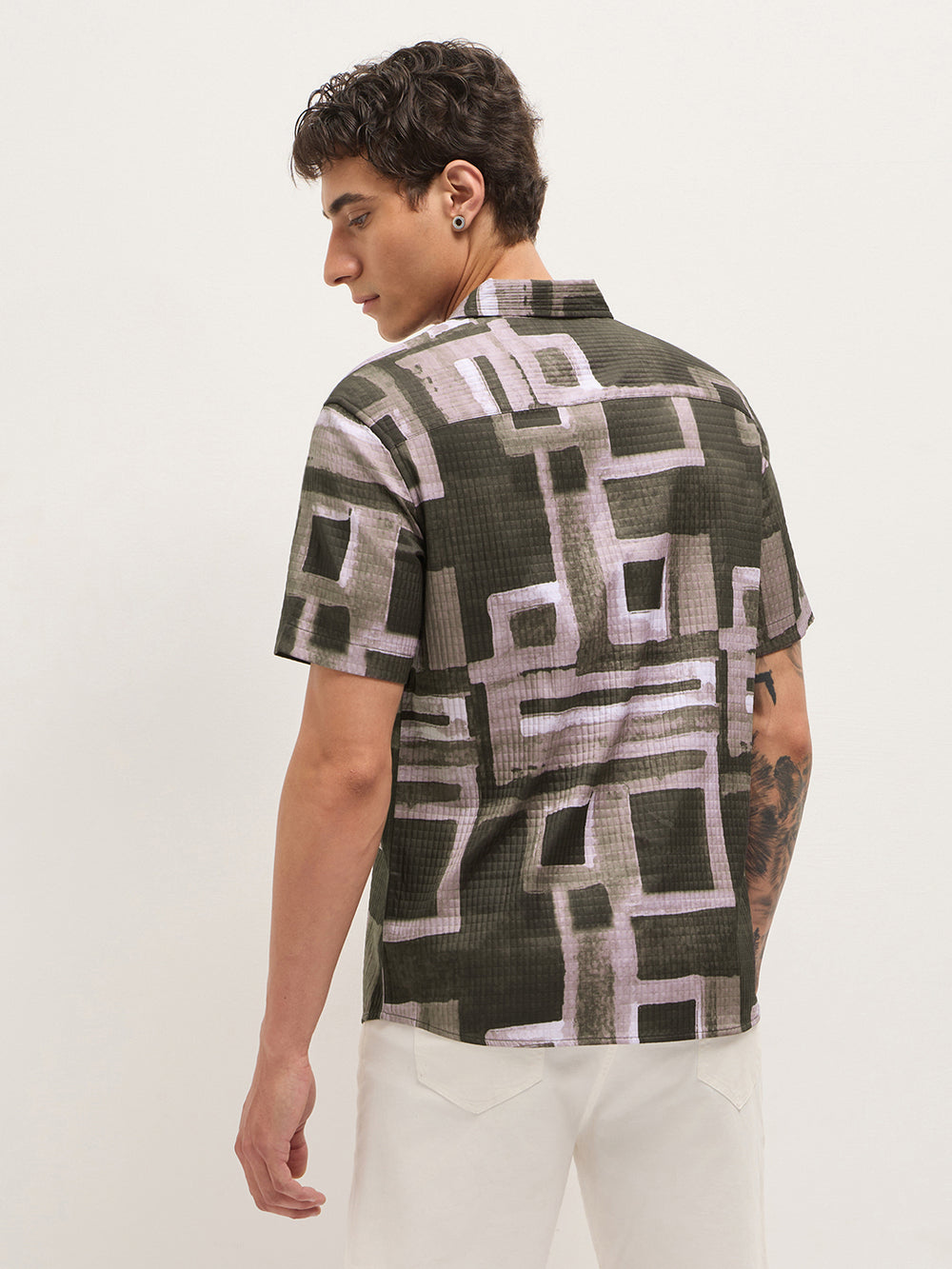 Multicolor Textured Check Geometric Digital Print Relaxed Fit Casual Shirt