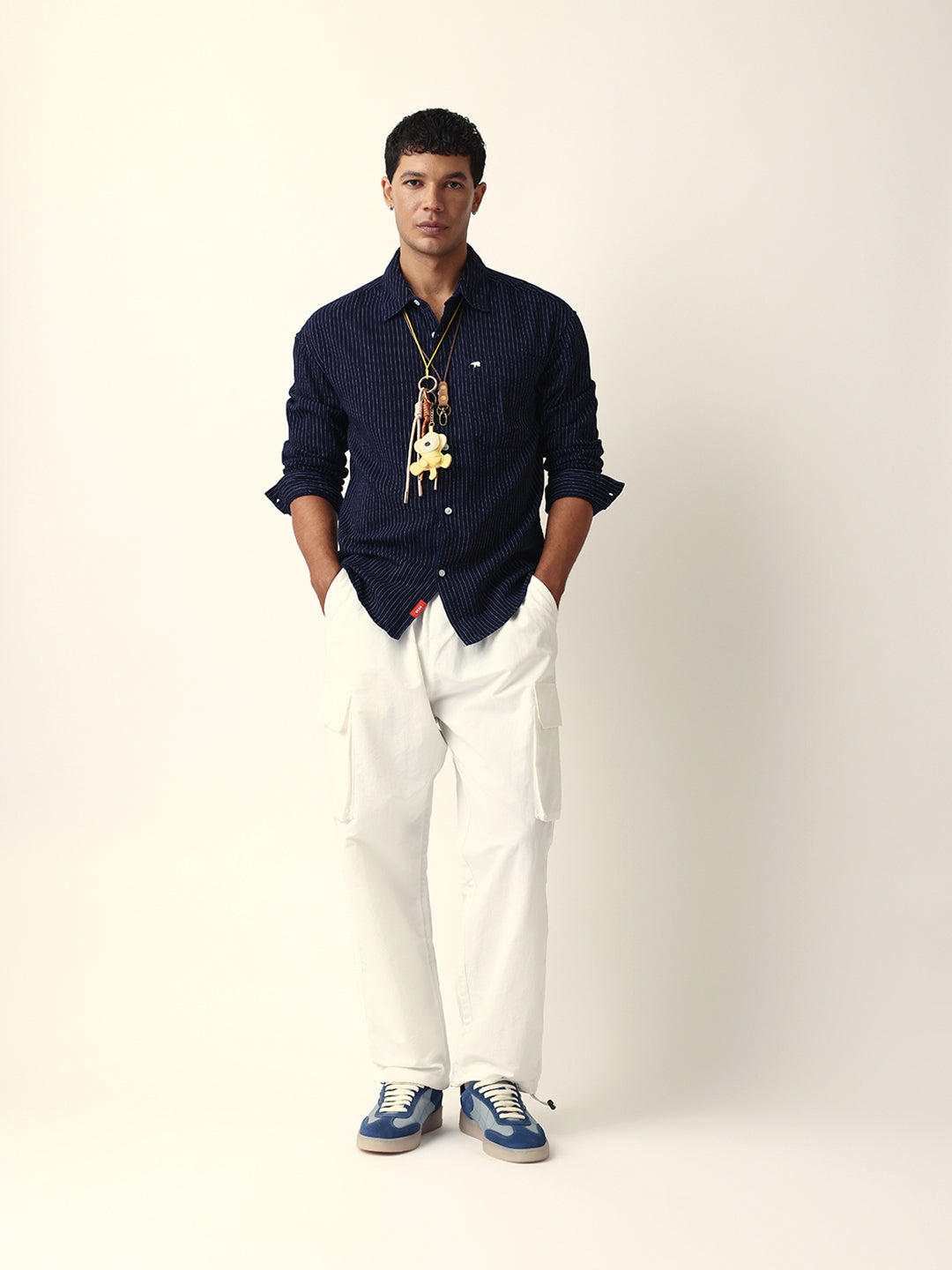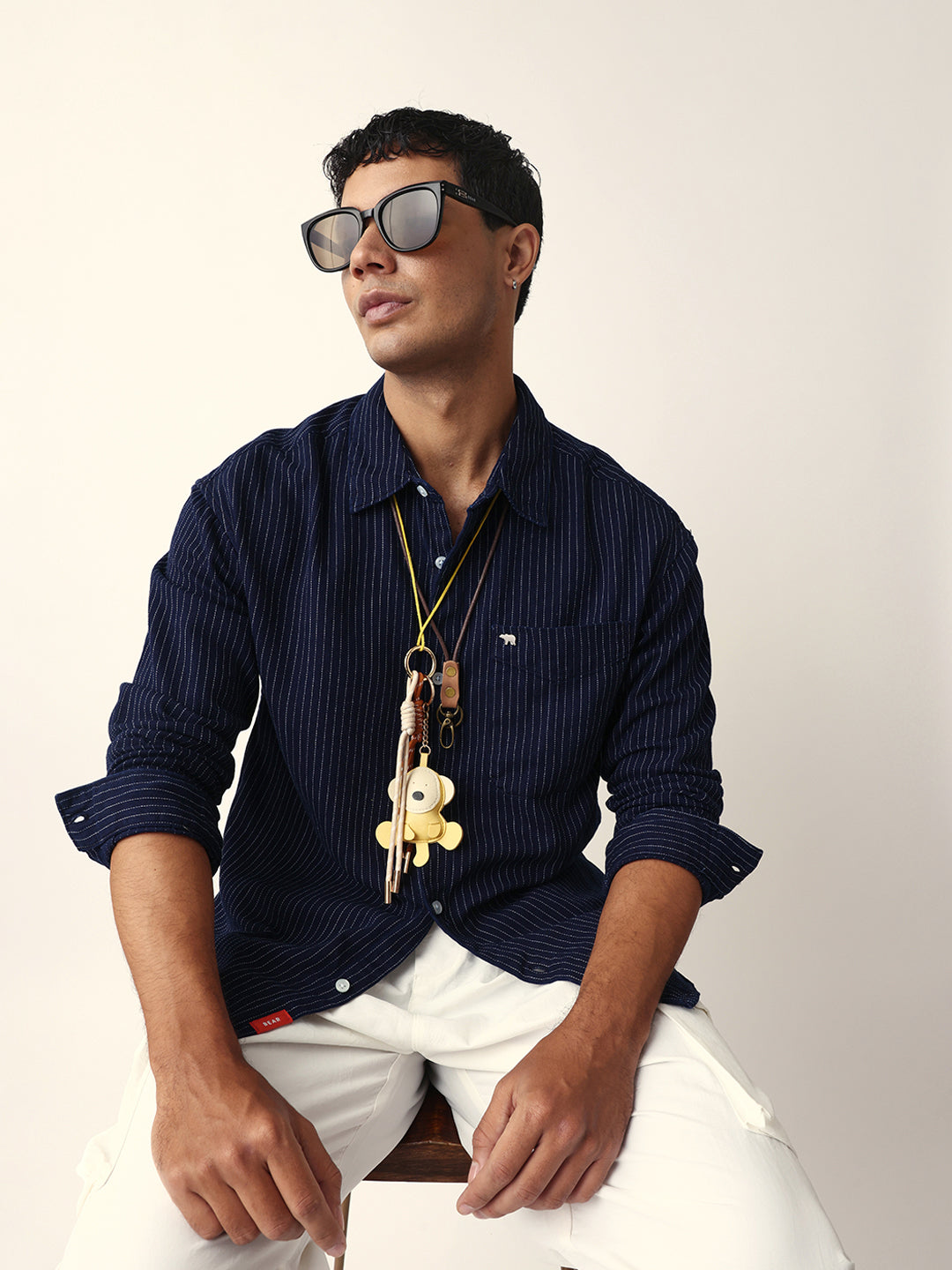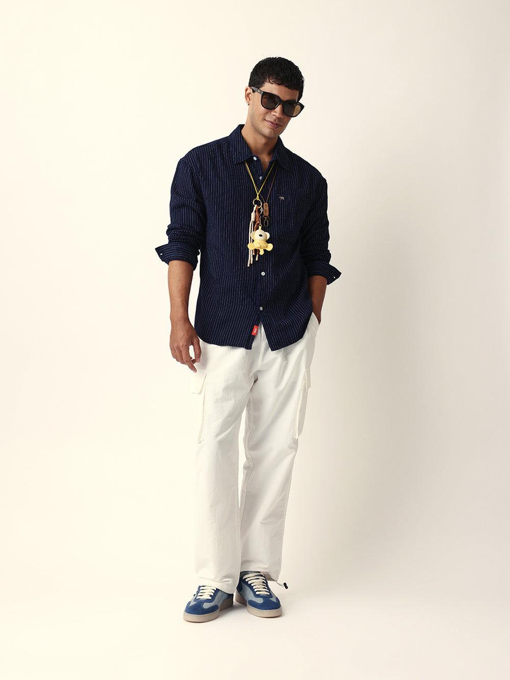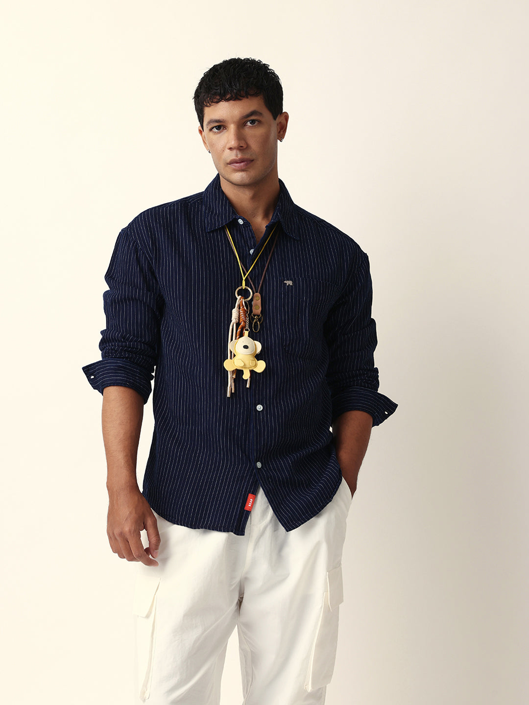 Navy Blue Vertical Woven Pinstripes Relax Fit Overshirt
