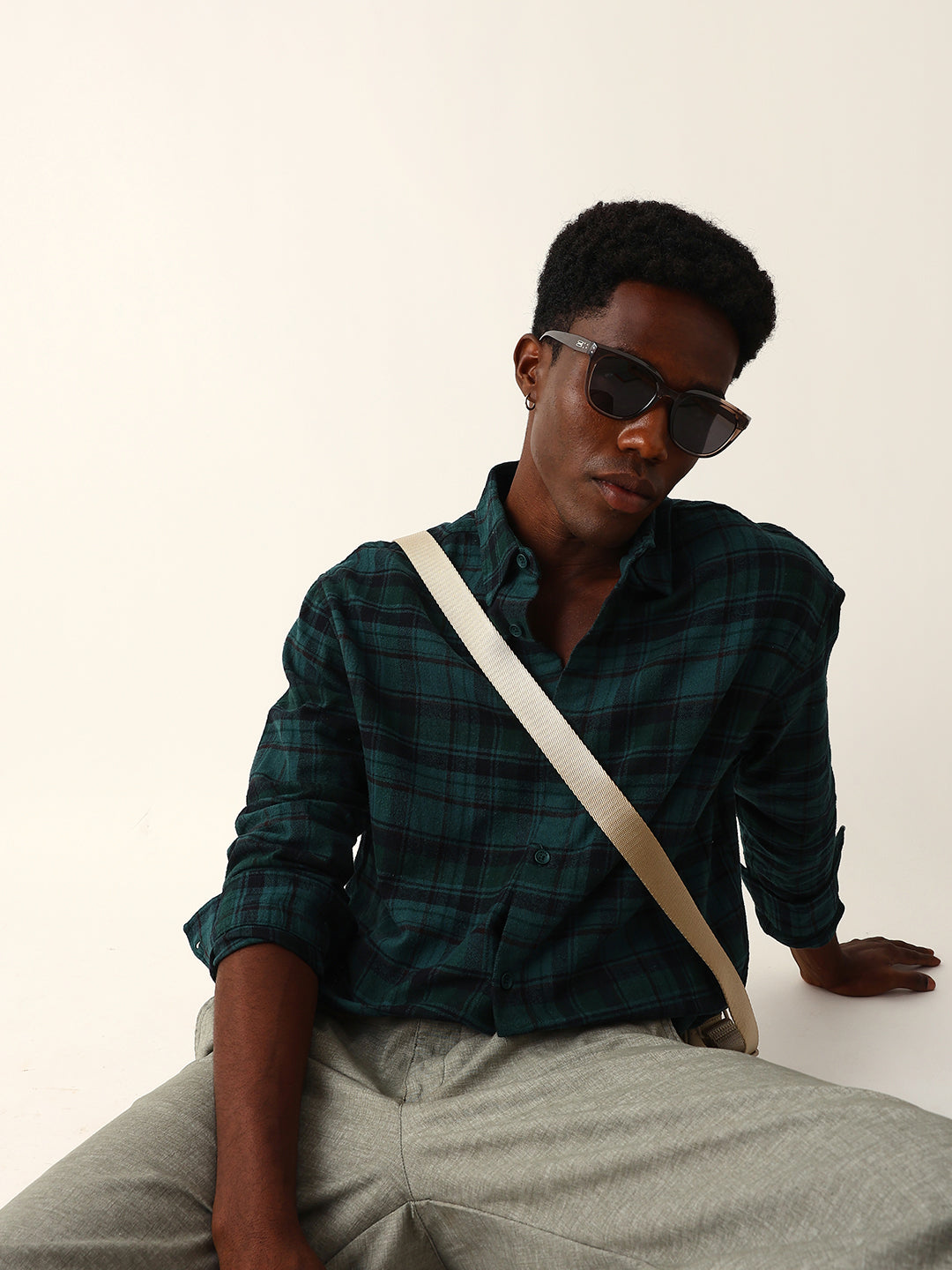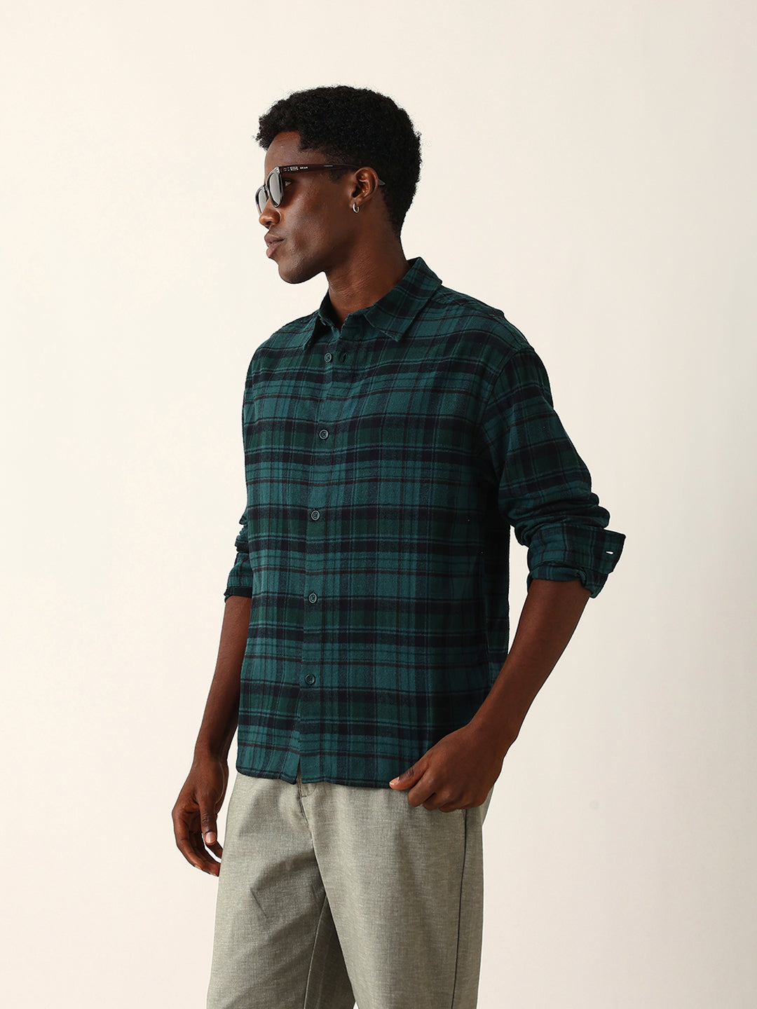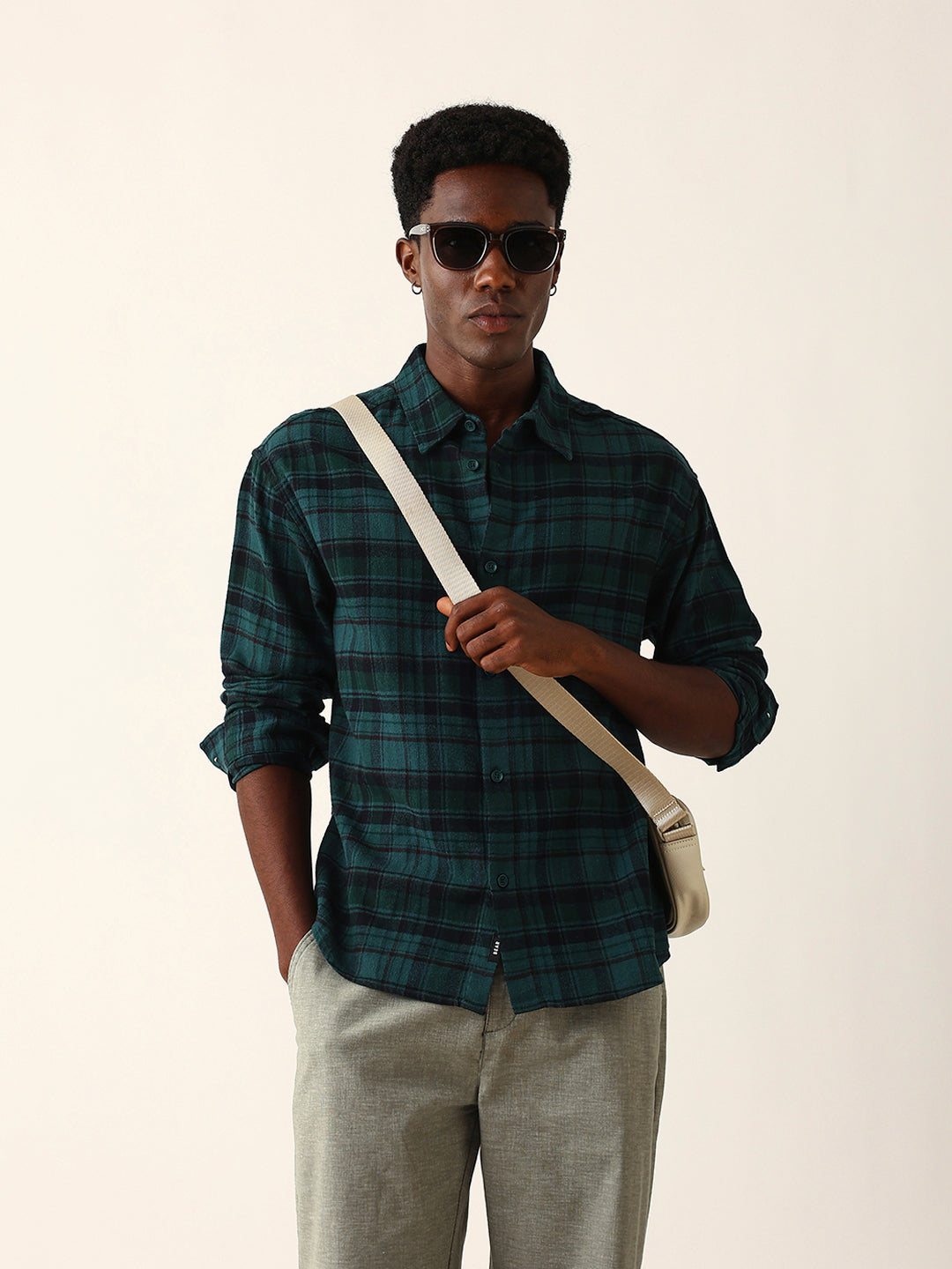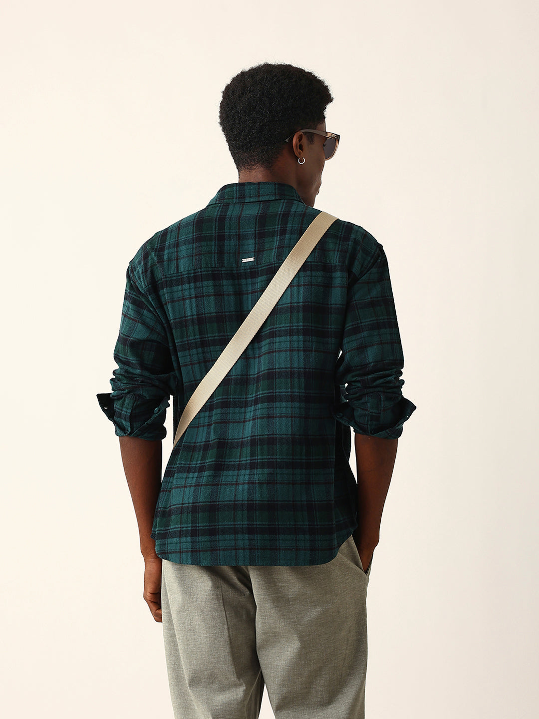 Shop Green Woven Checked Relaxed Fit Overshirt Online.