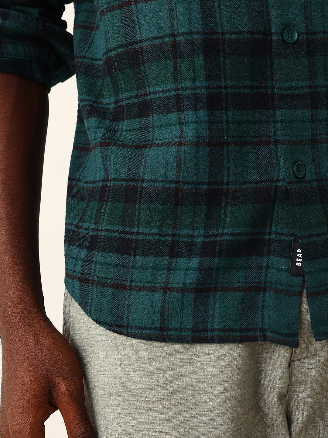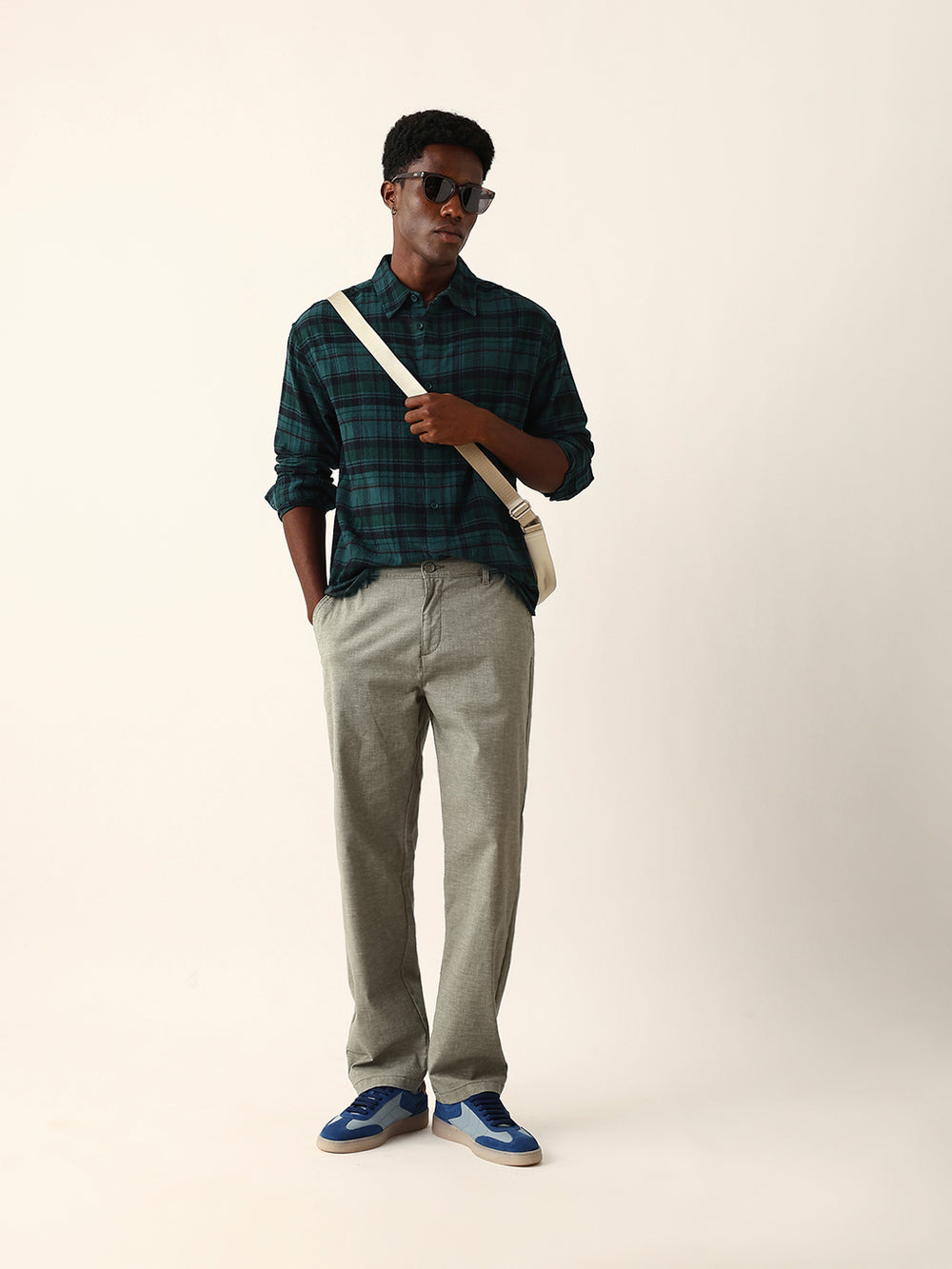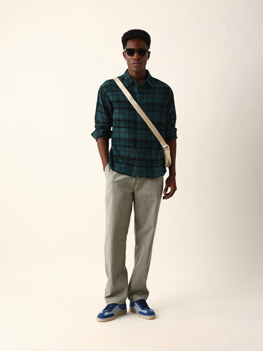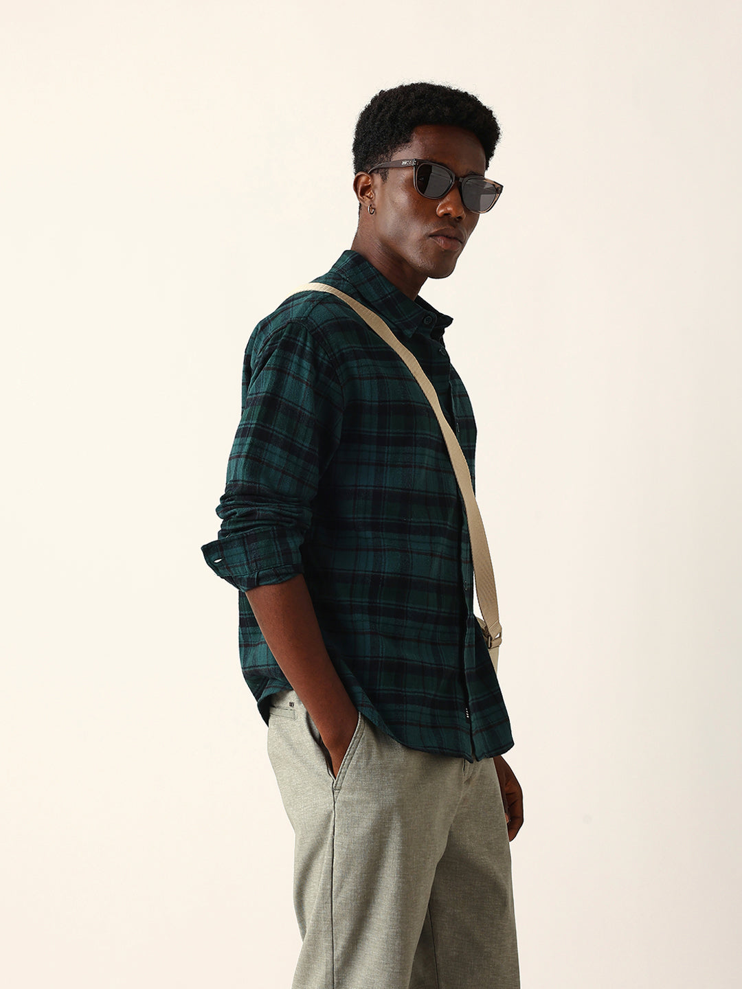 Shop Green Woven Checked Relaxed Fit Overshirt Online.