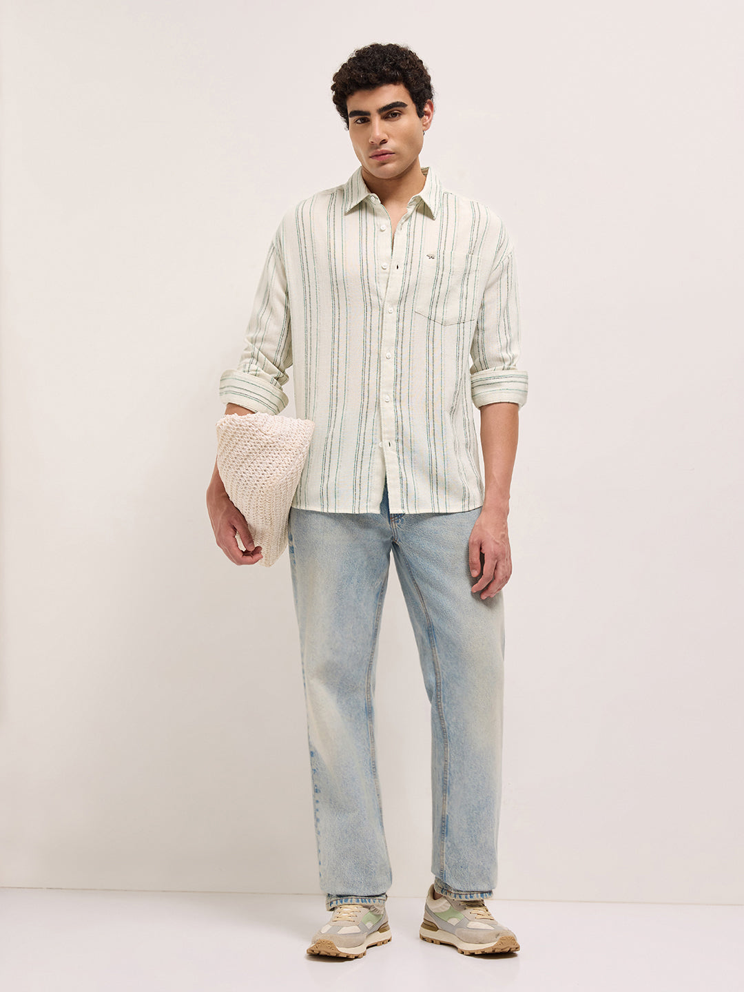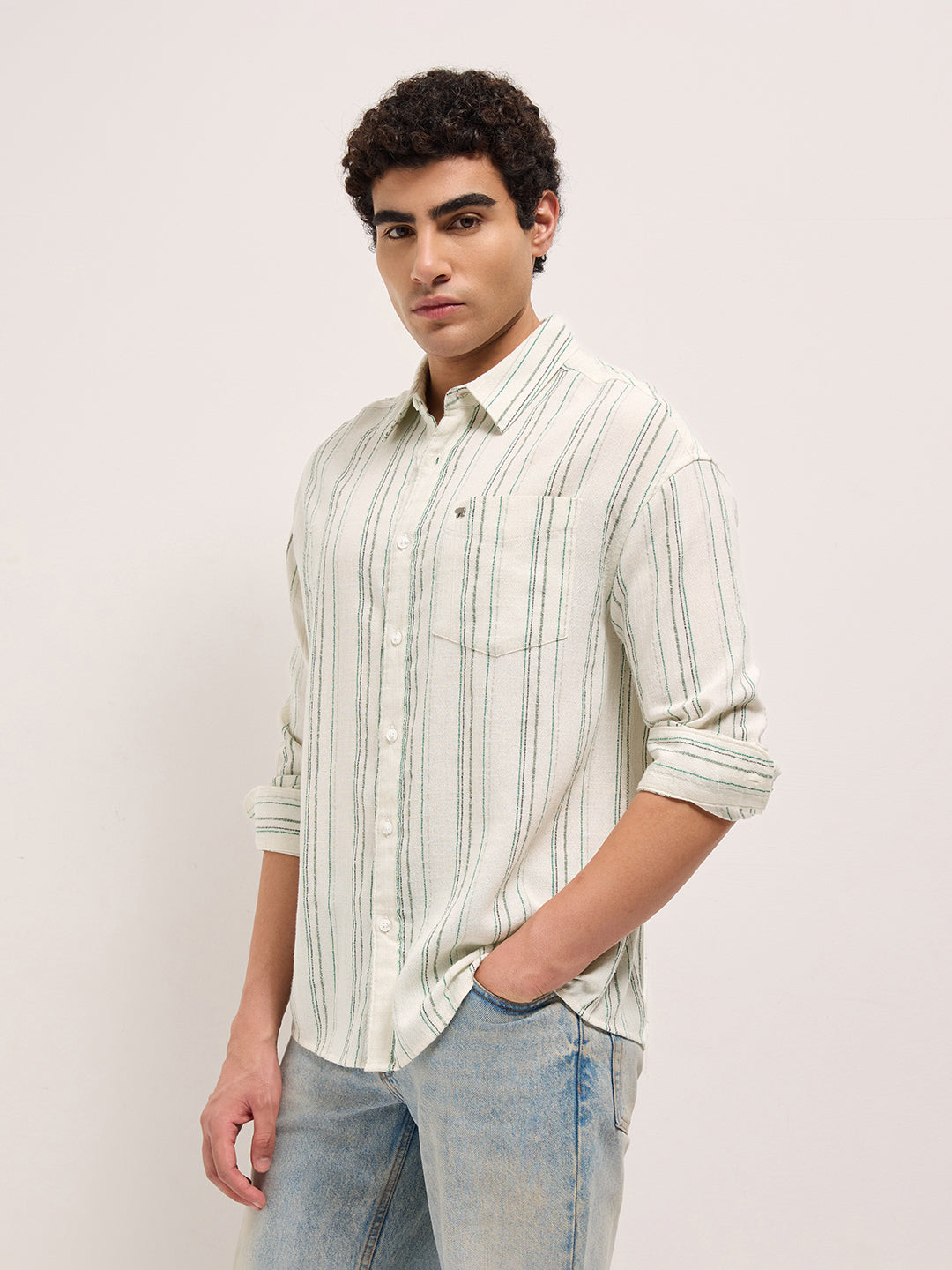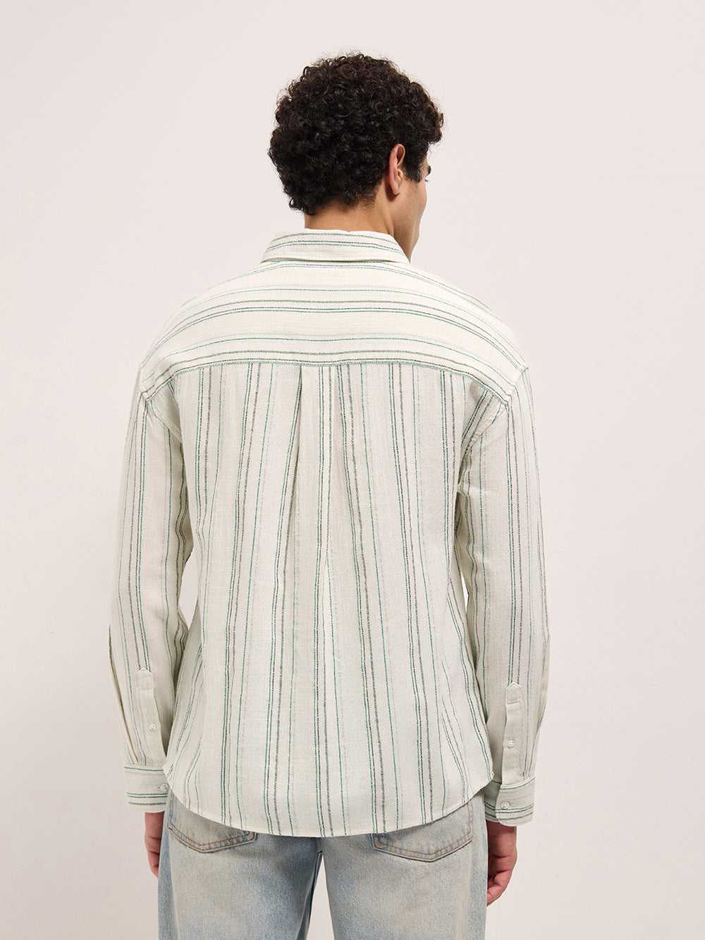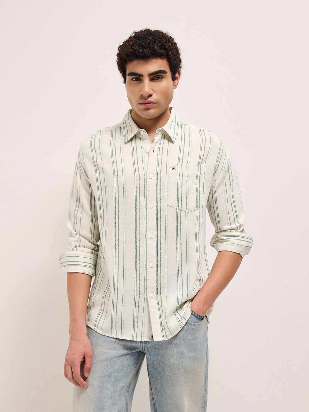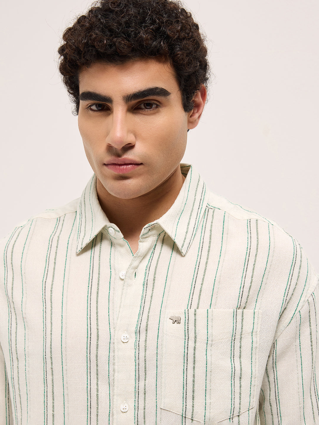 Cream Woven Vertical Stripes Relax Fit Casual Shirt