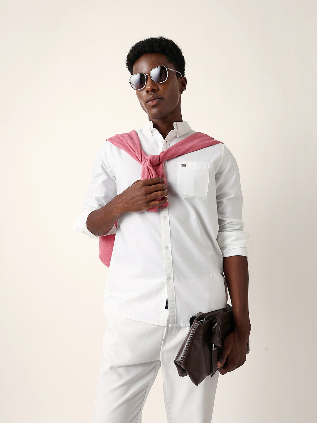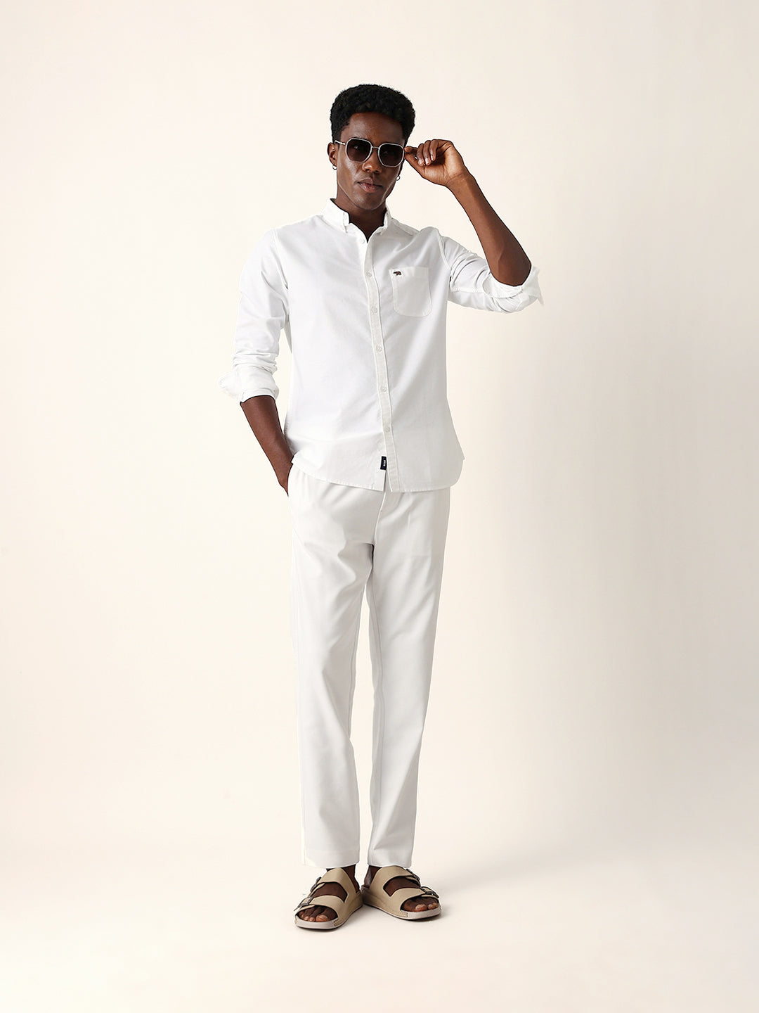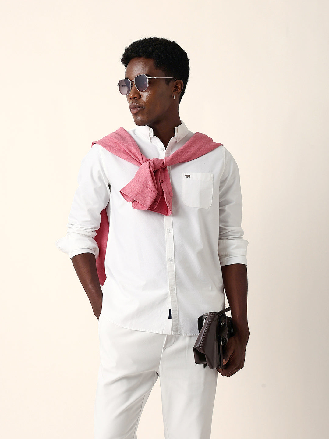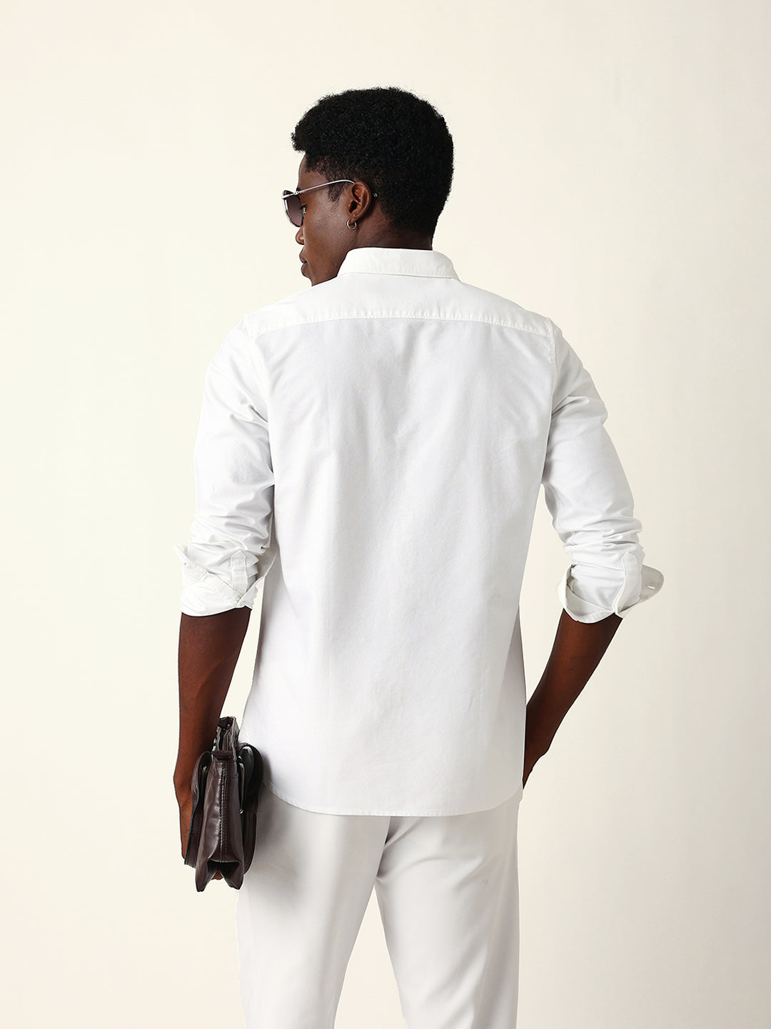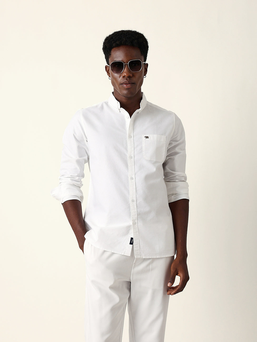 White Solid Slim-Fit Casual Shirt with Button-Down Collar