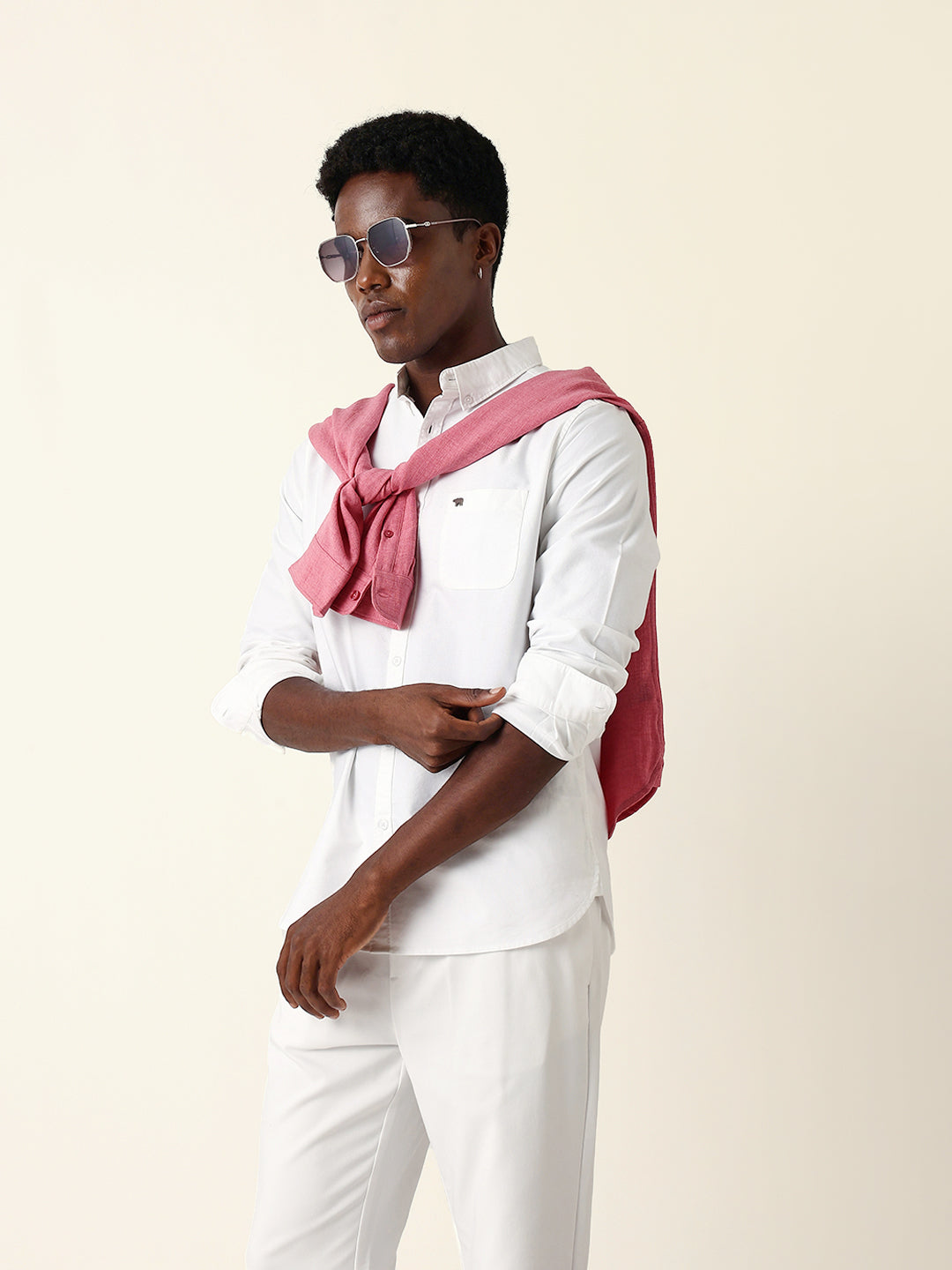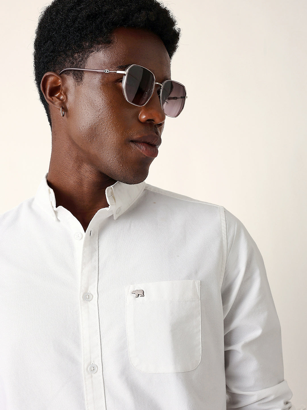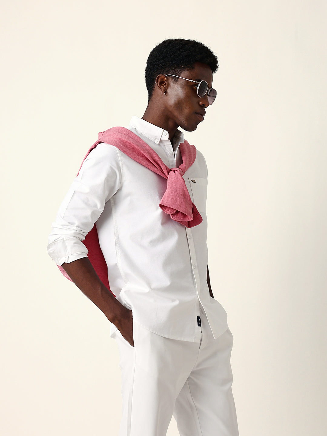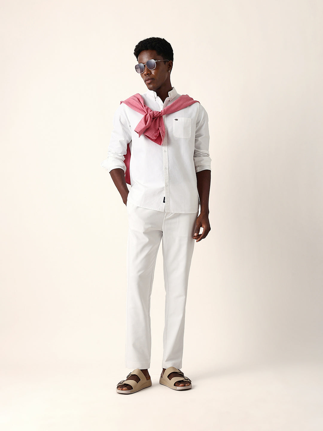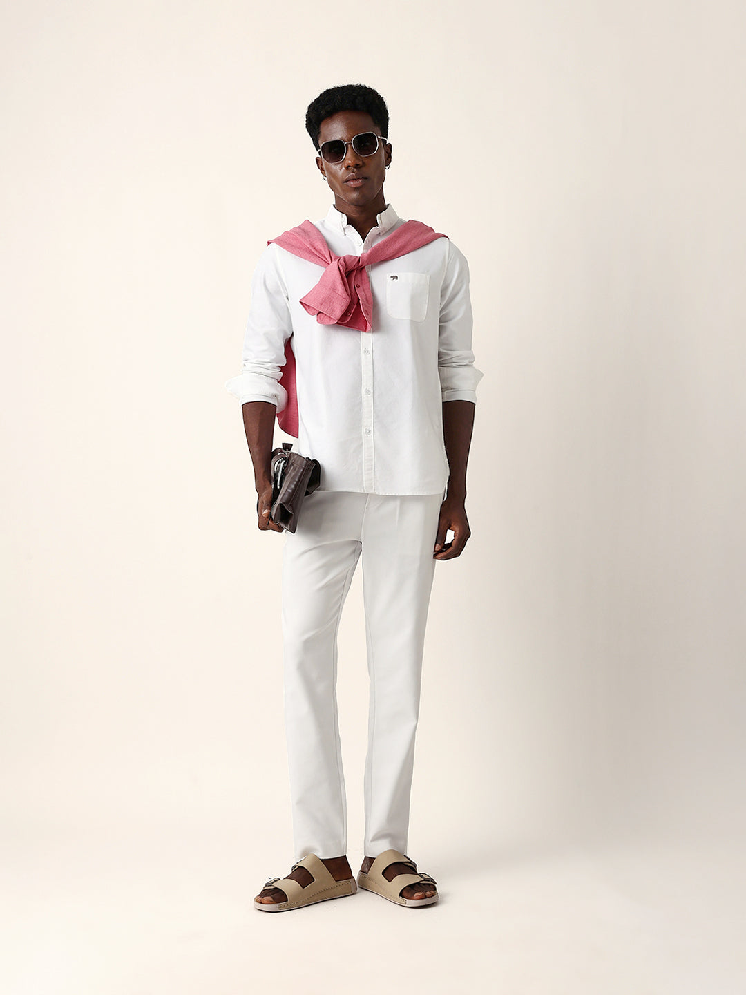White Solid Slim-Fit Casual Shirt with Button-Down Collar