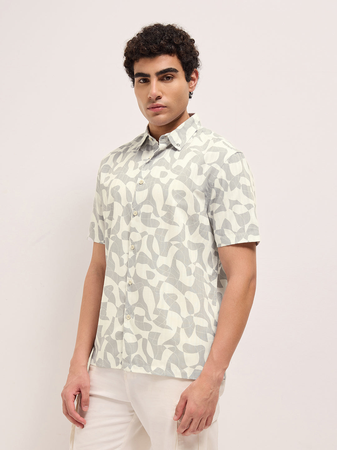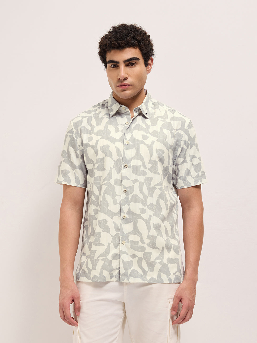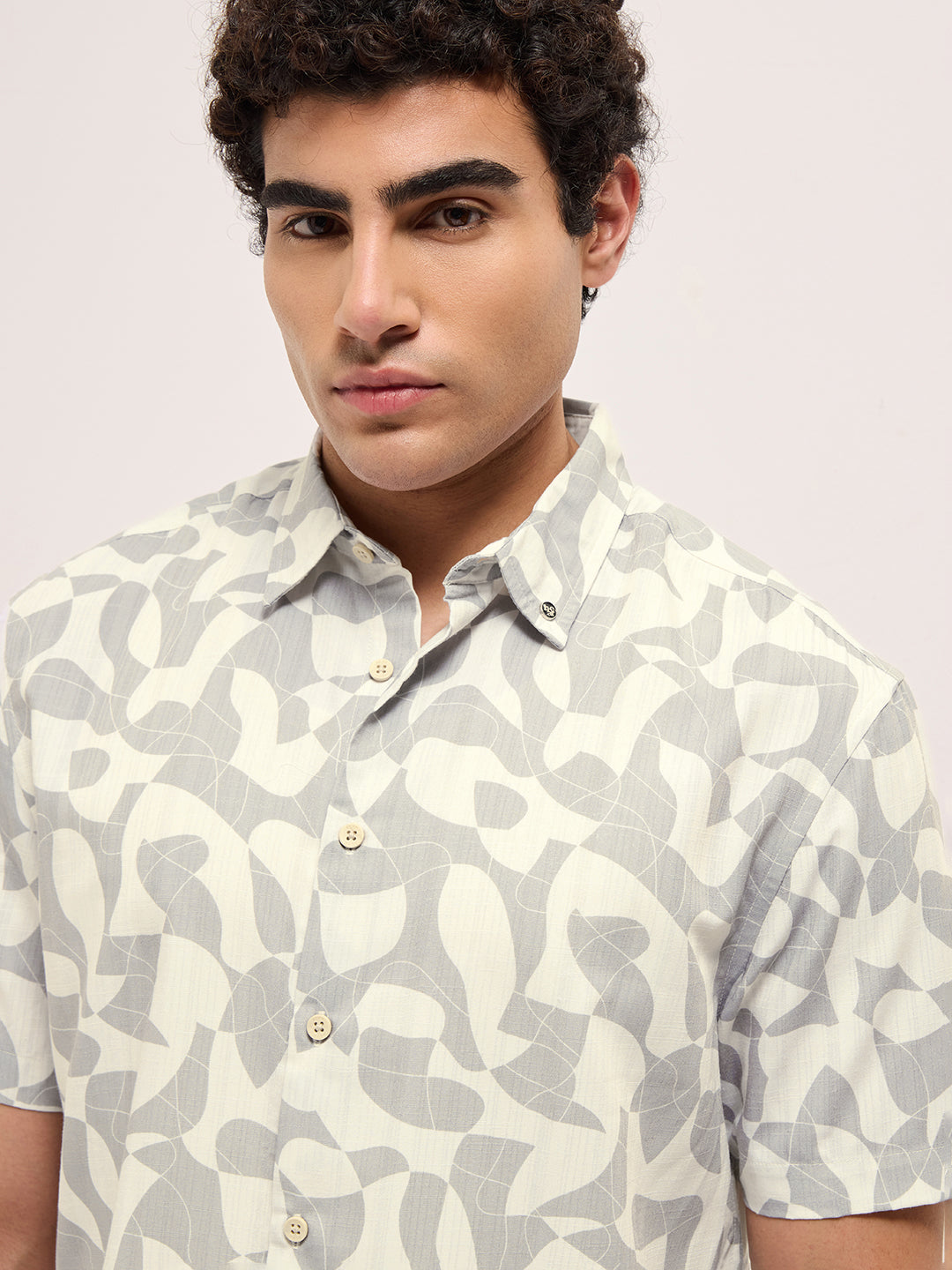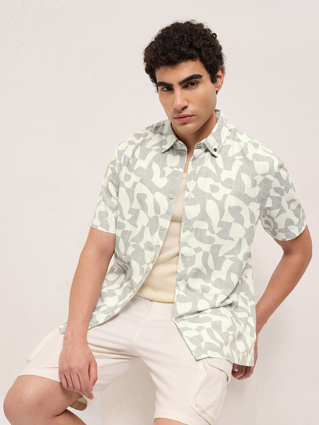 Shop Beige Relax Fit Casual Shirt with Abstract Geometric Print Online.