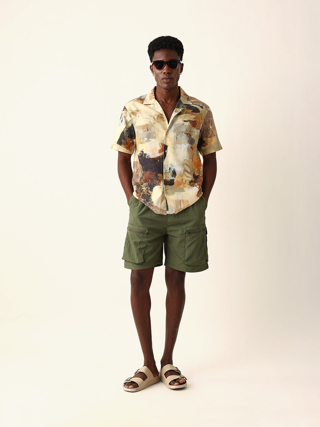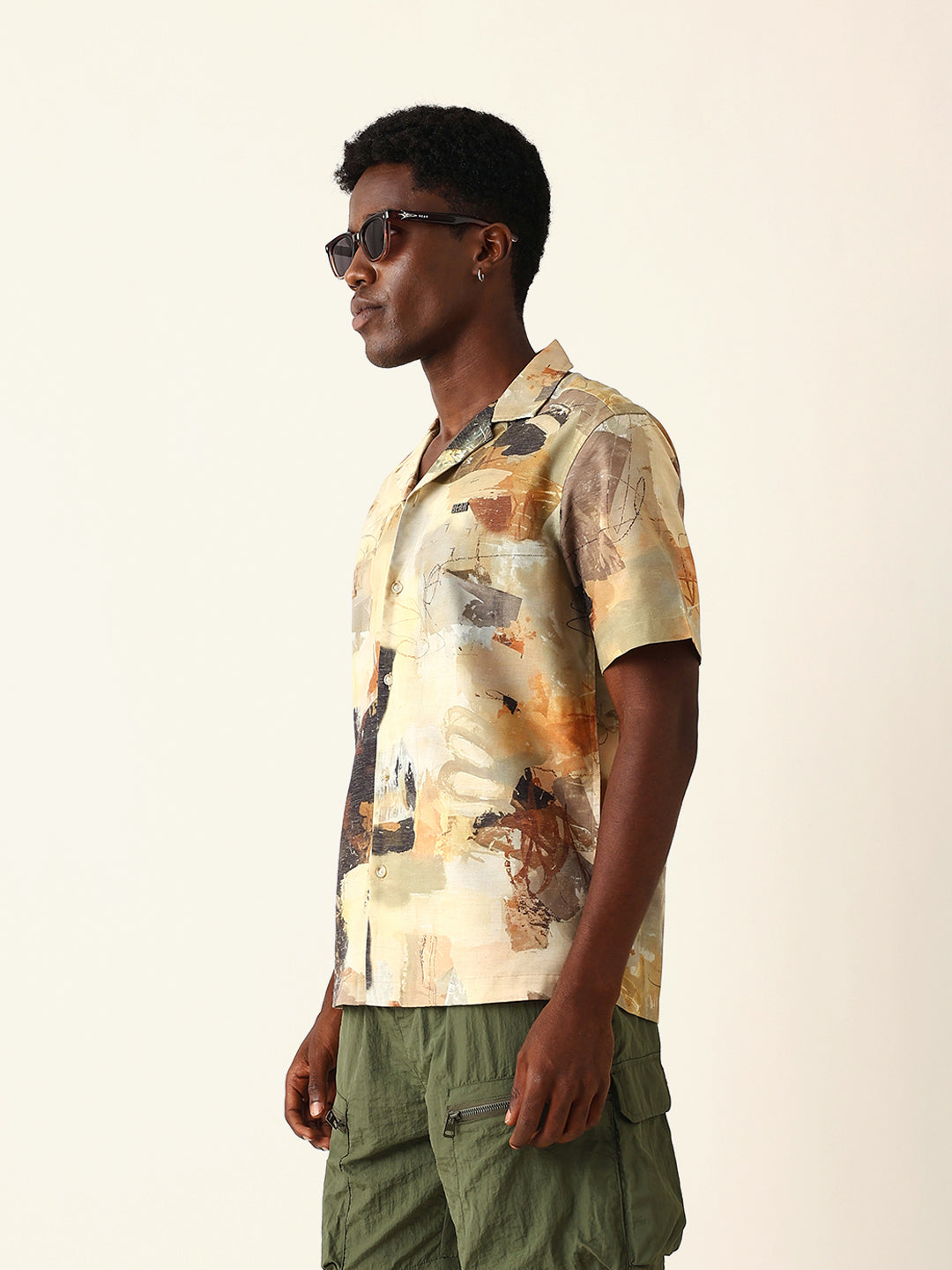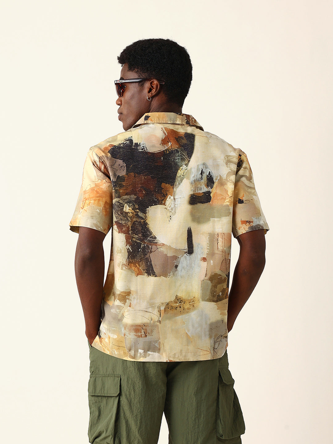 Shop Multicolor Abstract Brushstroke Print Cuban Collar Relaxed Fit Casual Shirt Online.