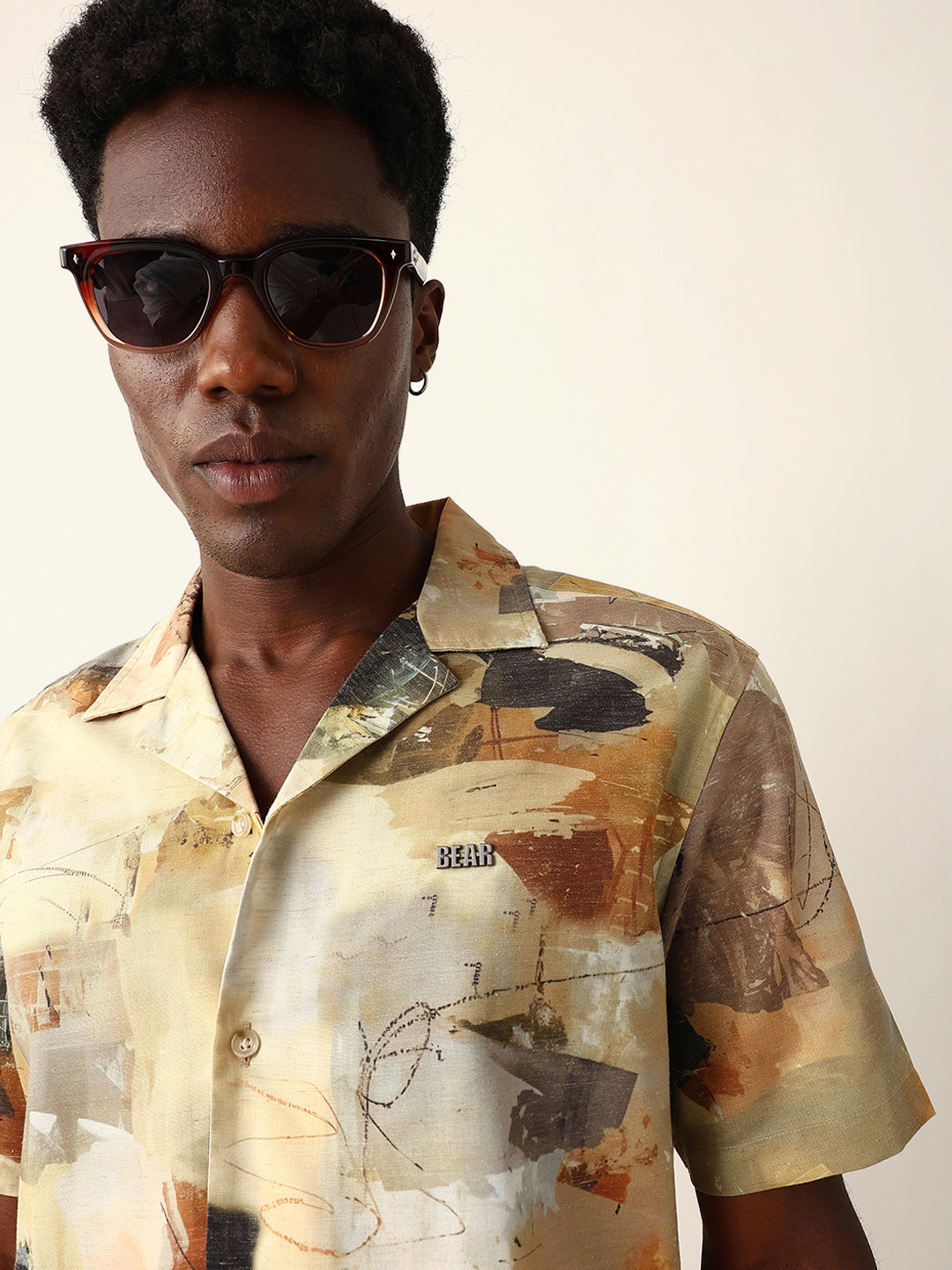 Multicolor Abstract Brushstroke Print Cuban Collar Relaxed Fit Casual Shirt