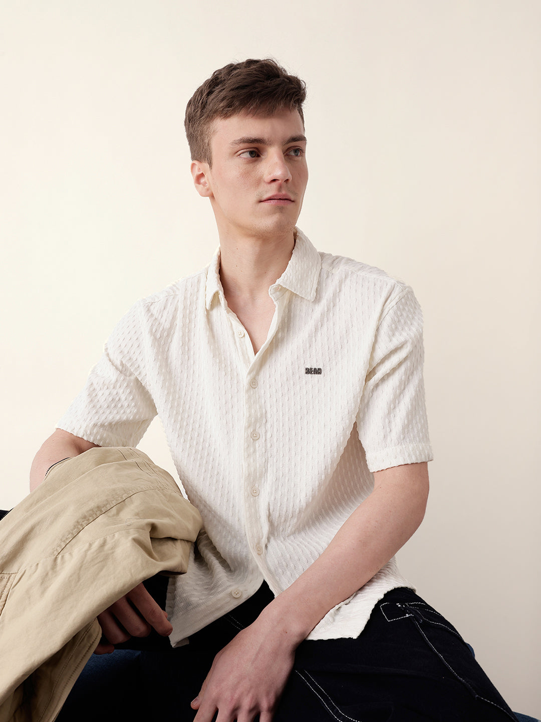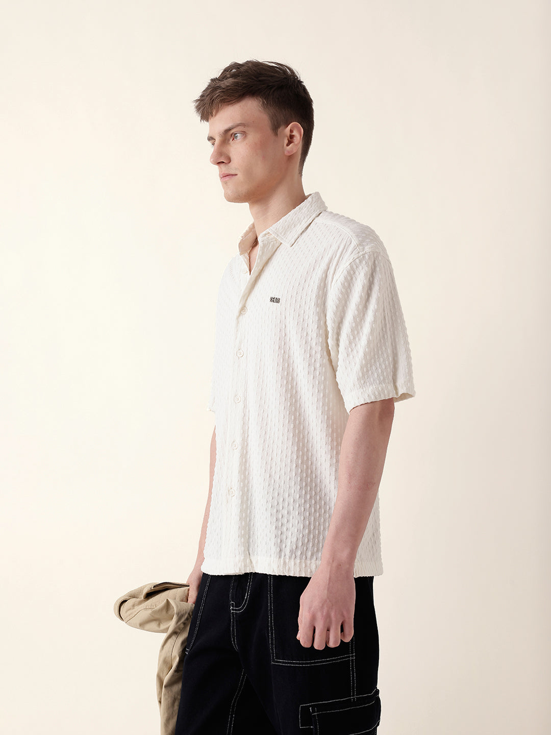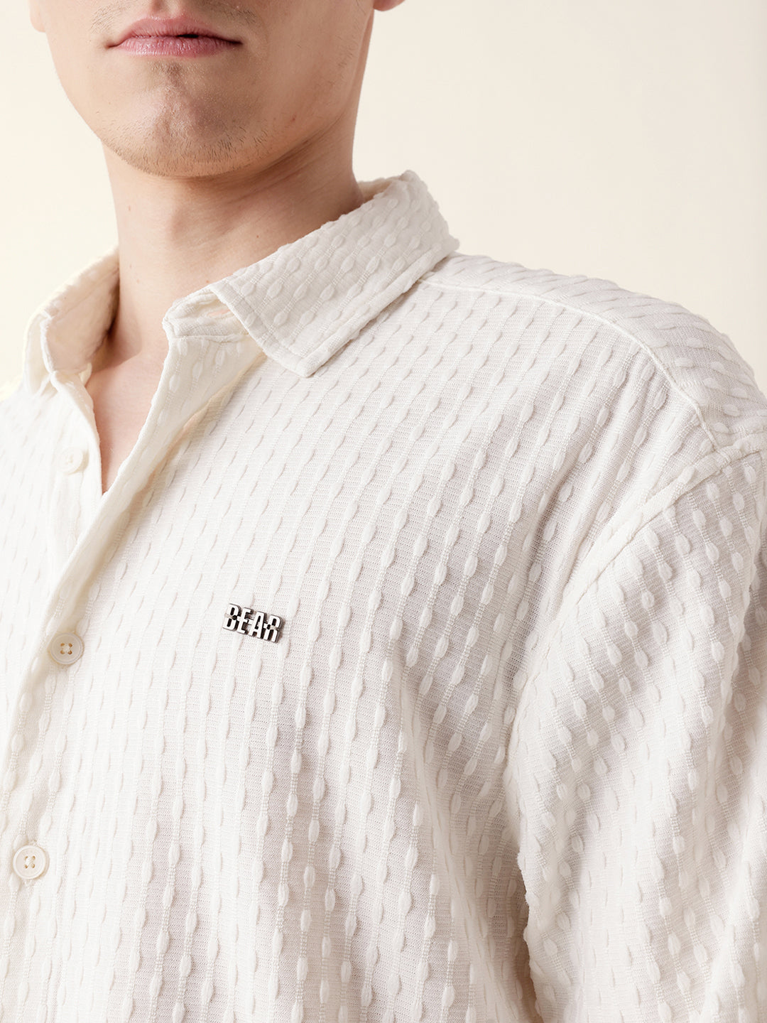 Shop White Textured Woven Oversized Fit Half Sleeve Casual Shirt Online.