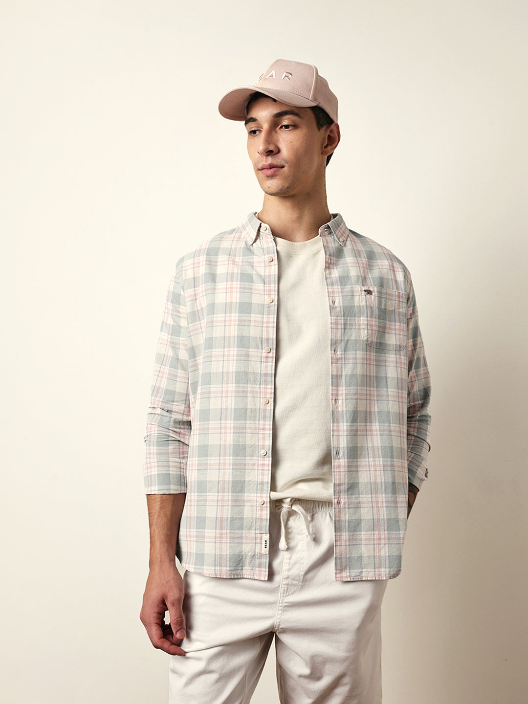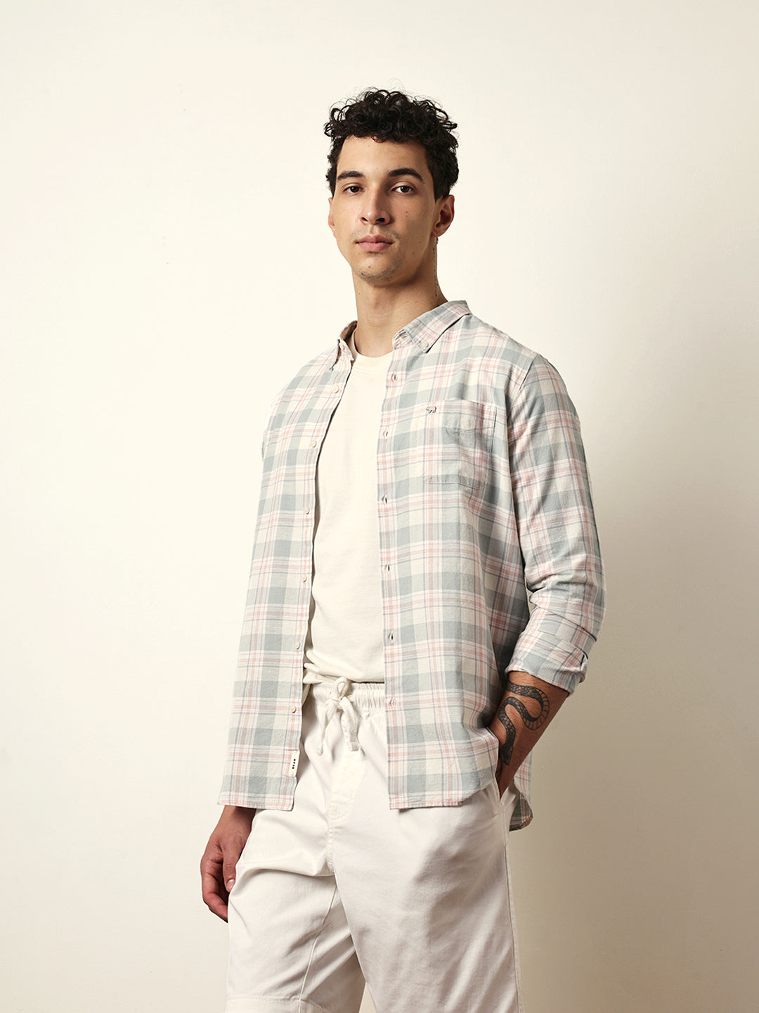 Shop Multicolor Woven Tartan Checked Slim Fit Casual Shirt Online.
