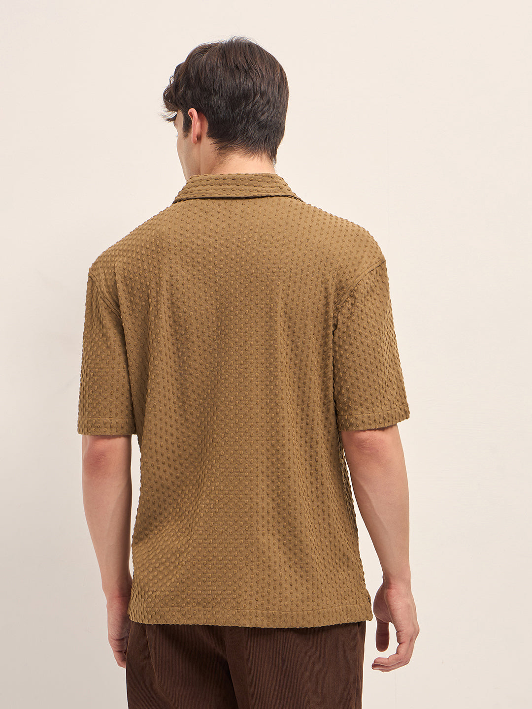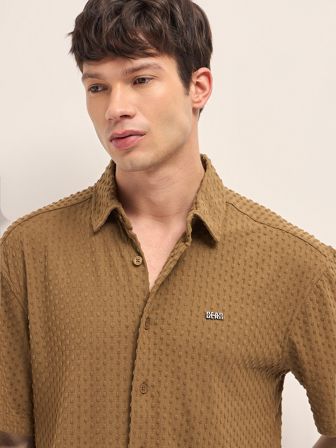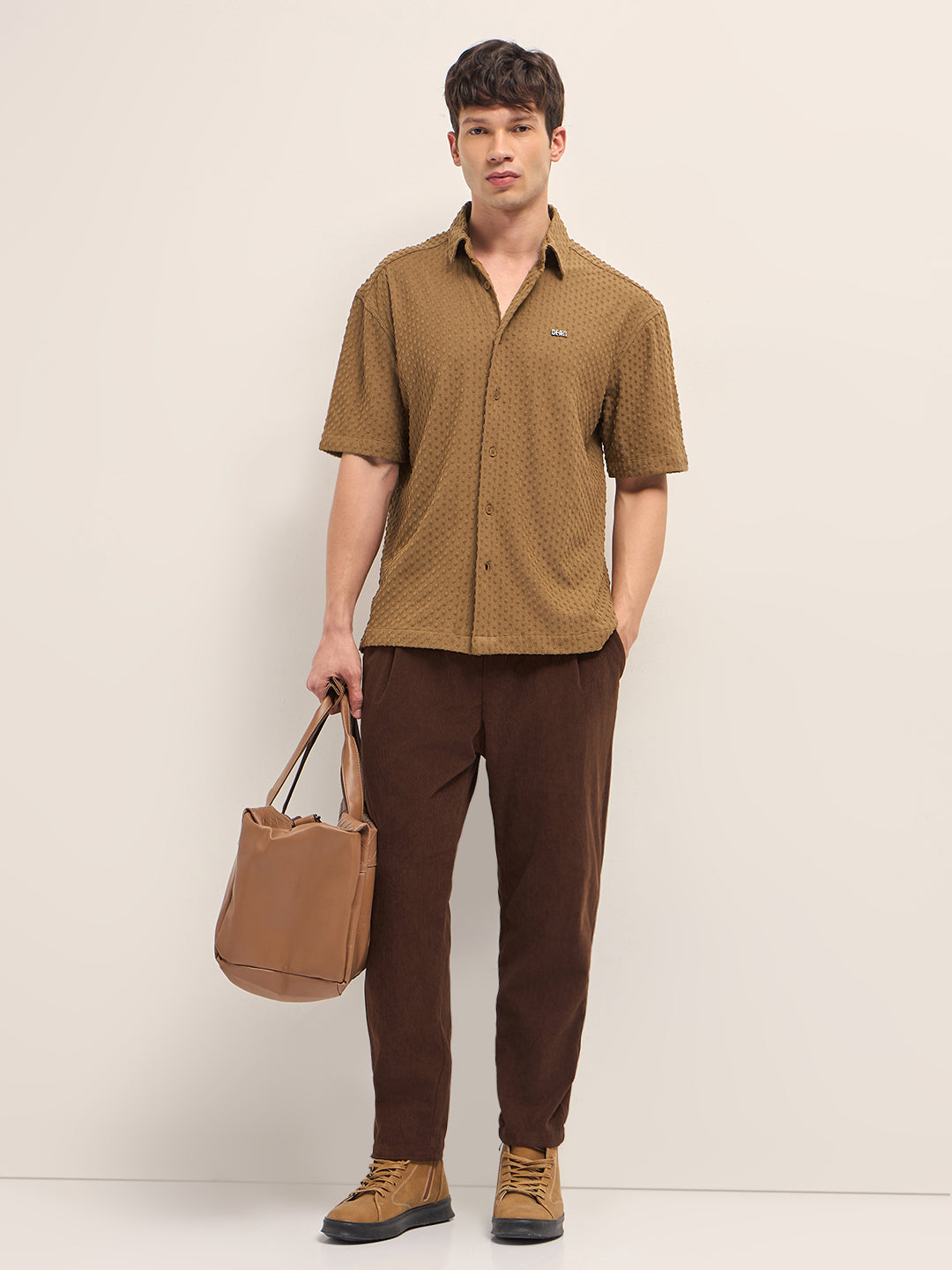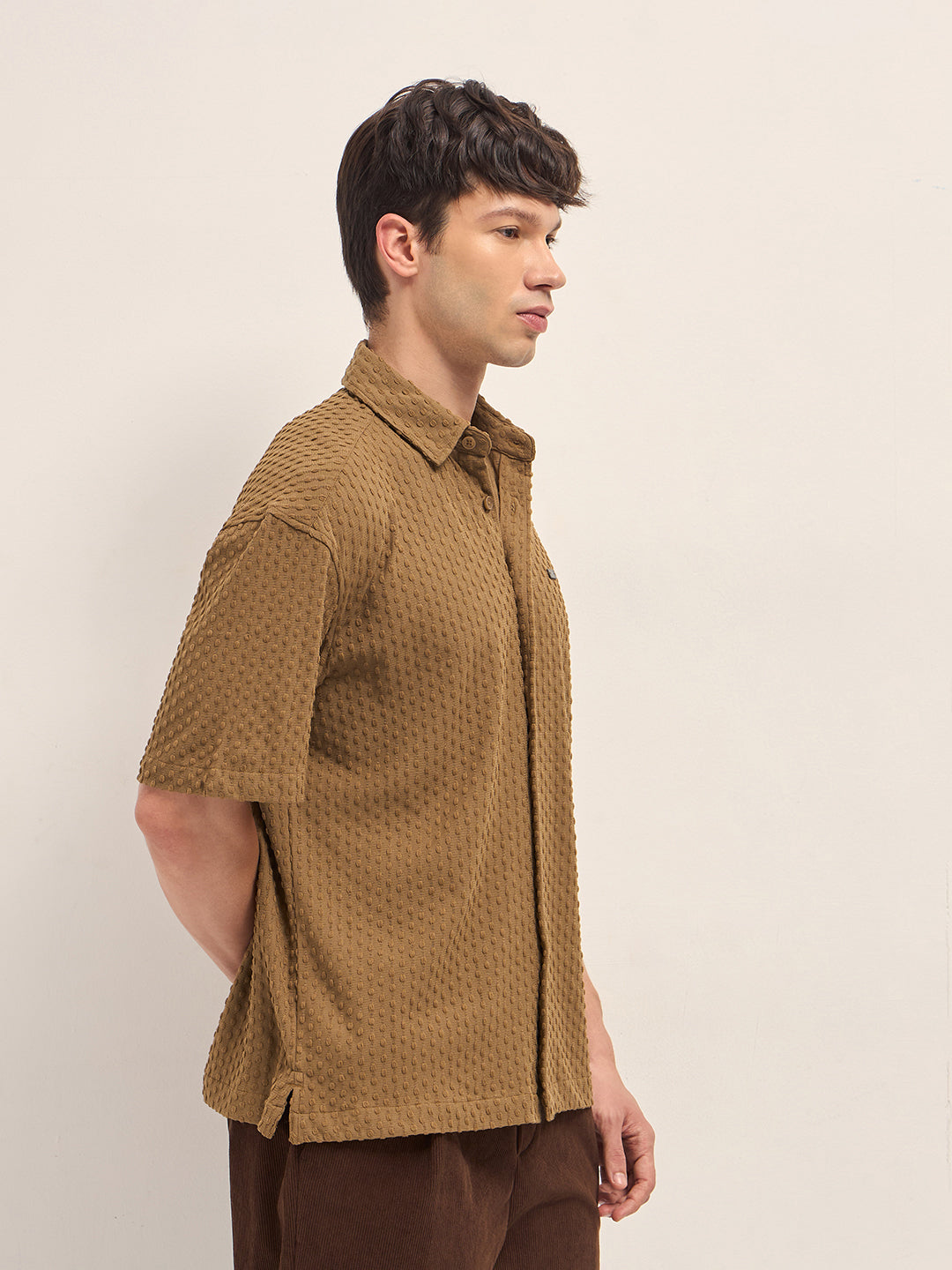Mustard Textured Woven Oversized Fit Half Sleeve Casual Shirt