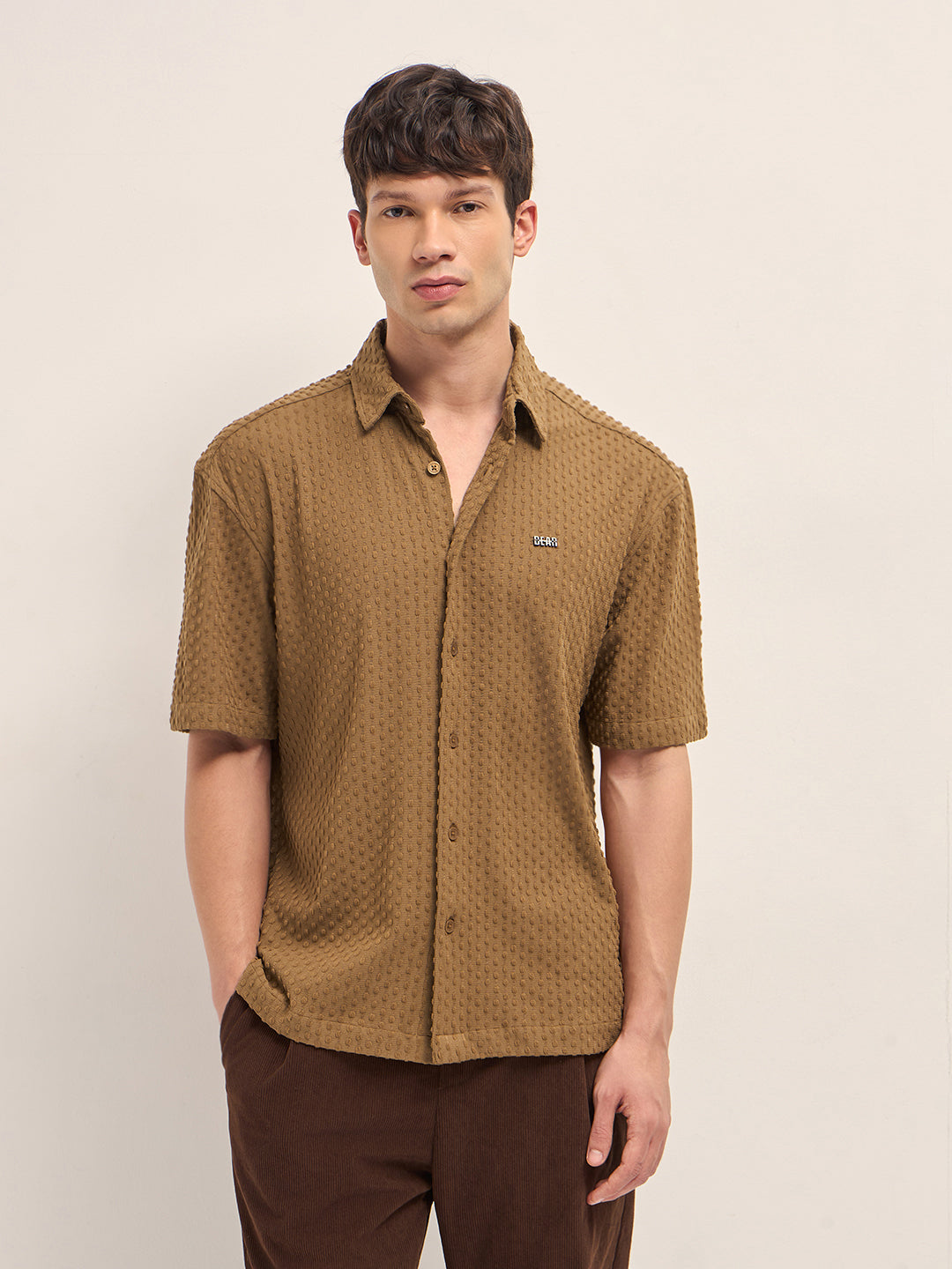 Shop Mustard Textured Woven Oversized Fit Half Sleeve Casual Shirt Online.