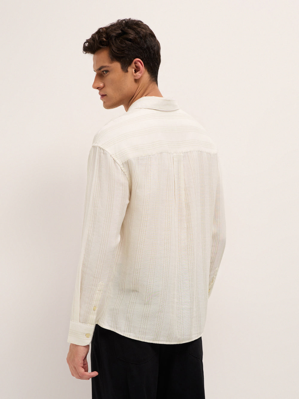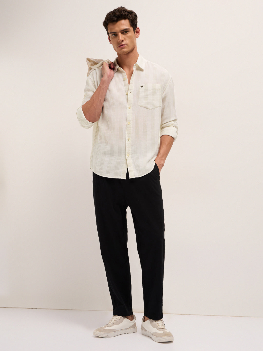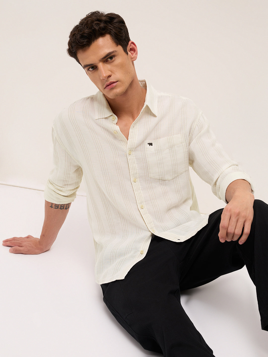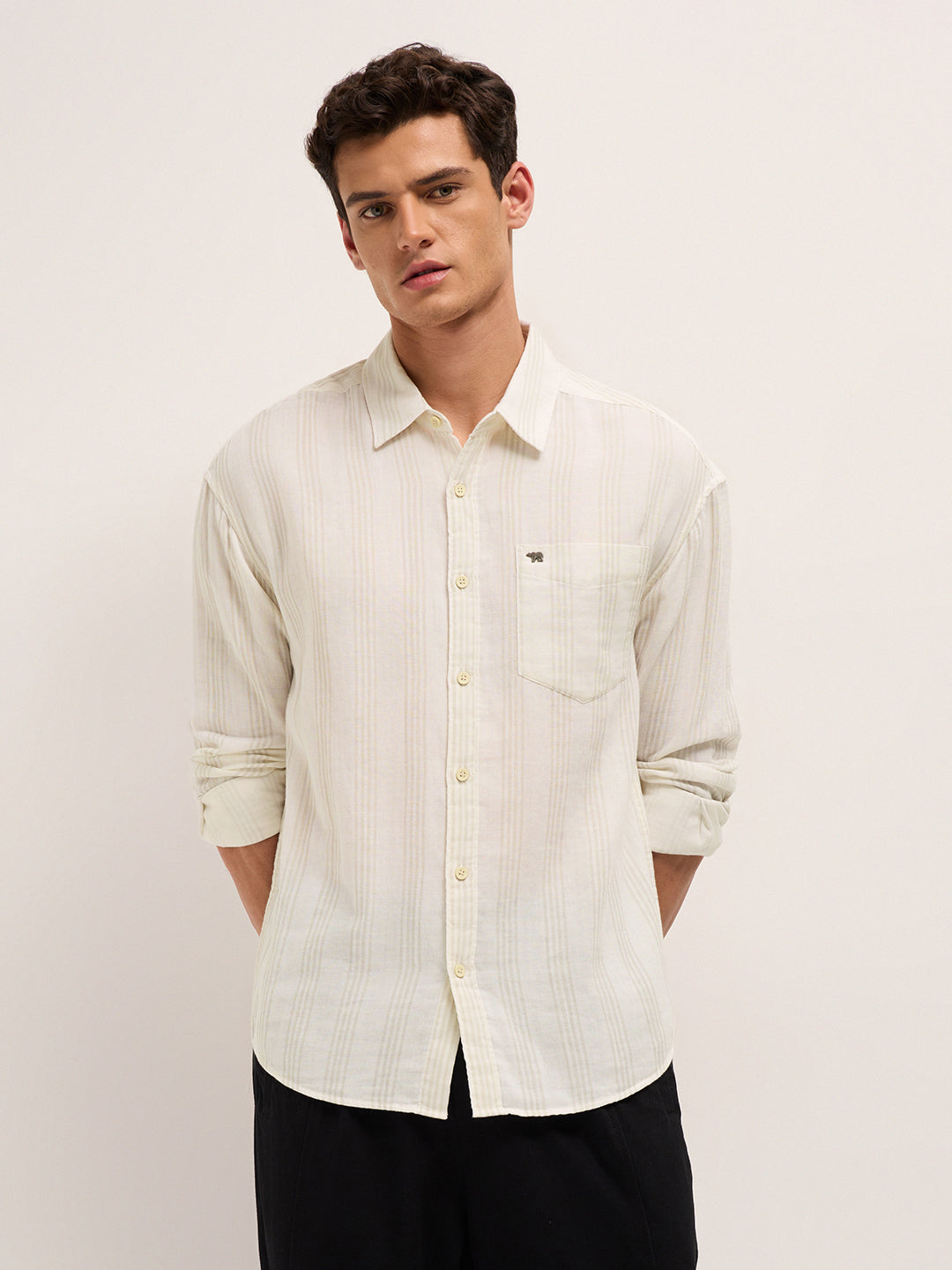 Shop Cream Woven Vertical Stripes Relax Fit Casual Shirt Online.