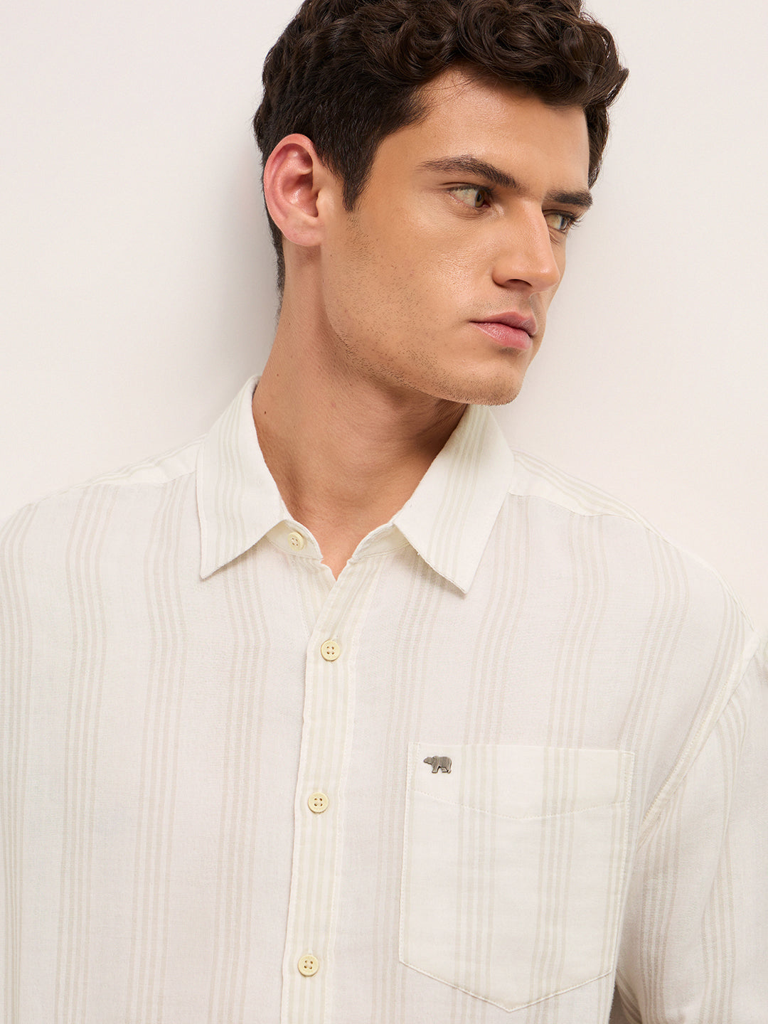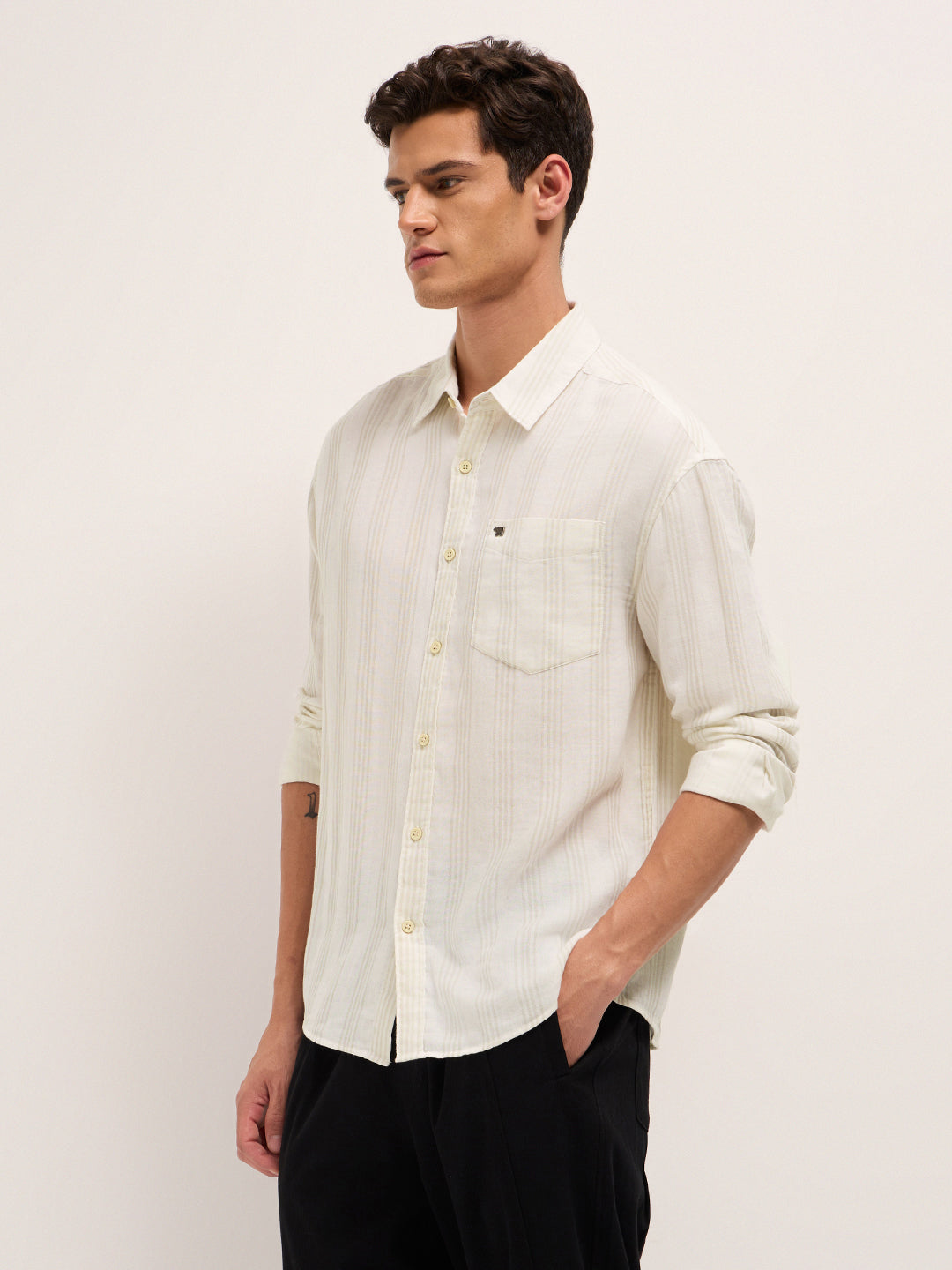 Cream Woven Vertical Stripes Relax Fit Casual Shirt