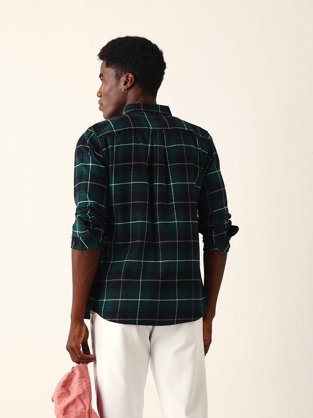 Dark Green & Black Flannel Checked Slim Fit Casual Shirt