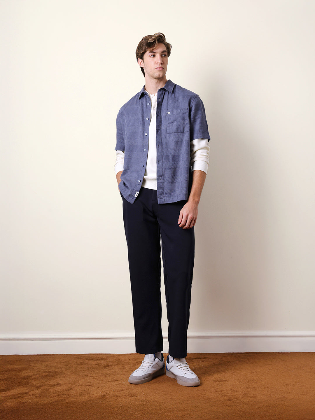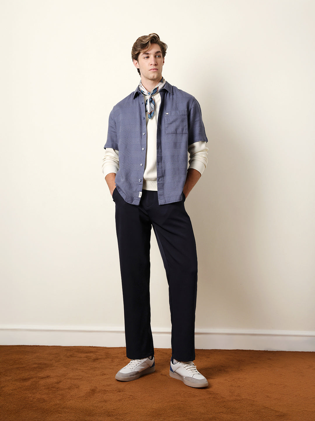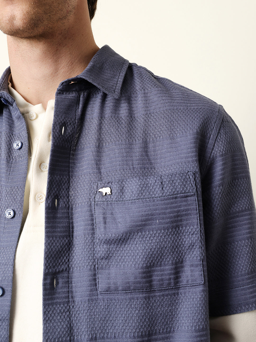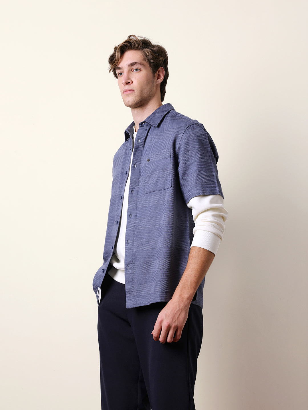Shop Blue Relaxed Fit Casual Half Sleeve Shirt with Textured Horizontal Stripes Online.