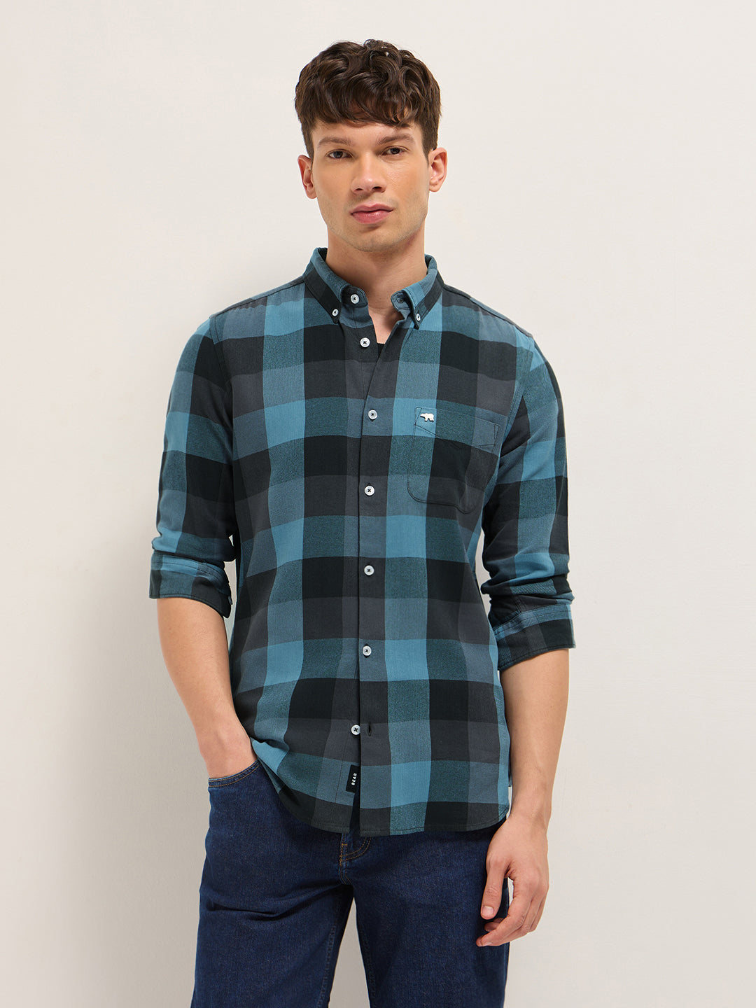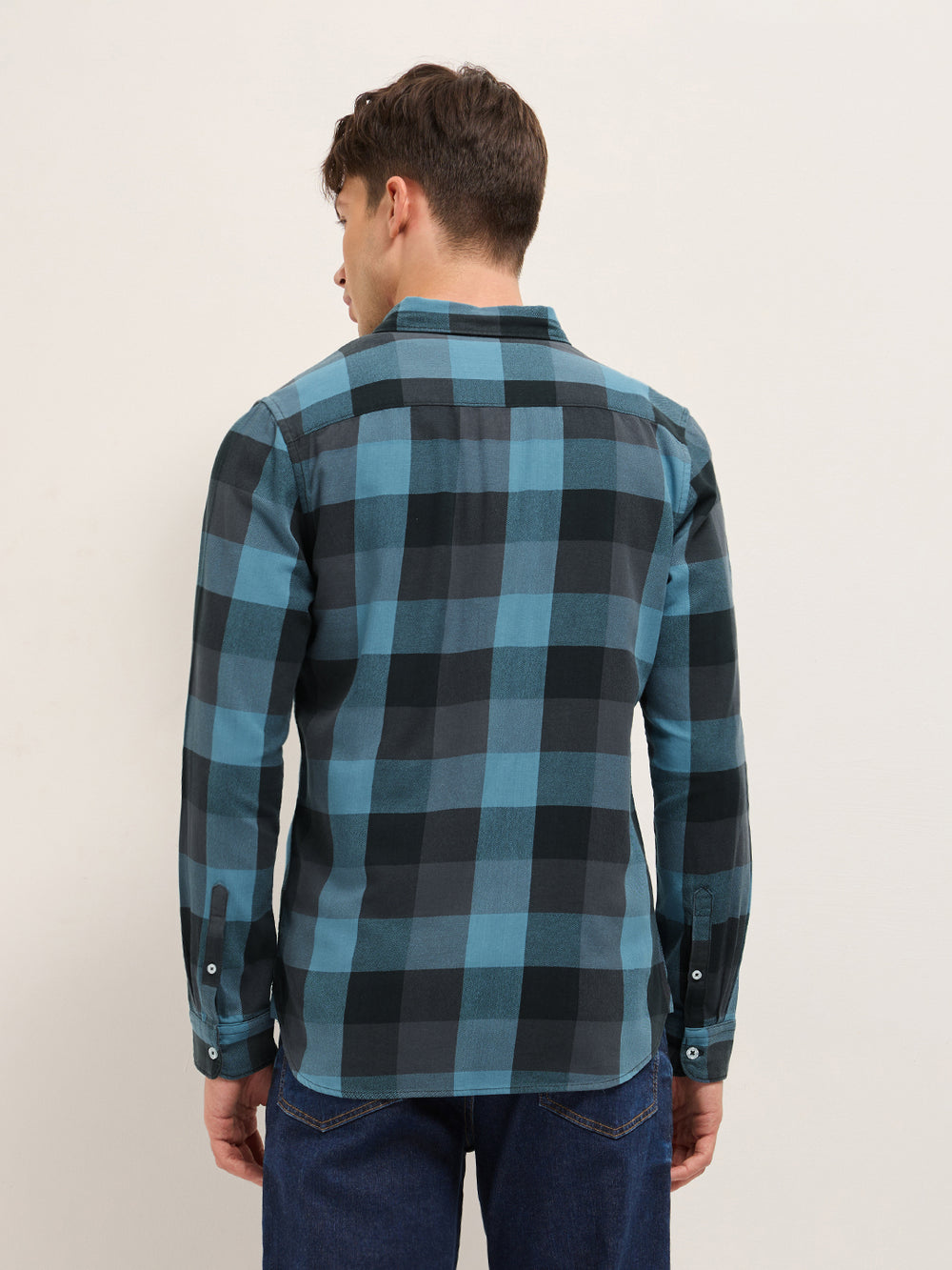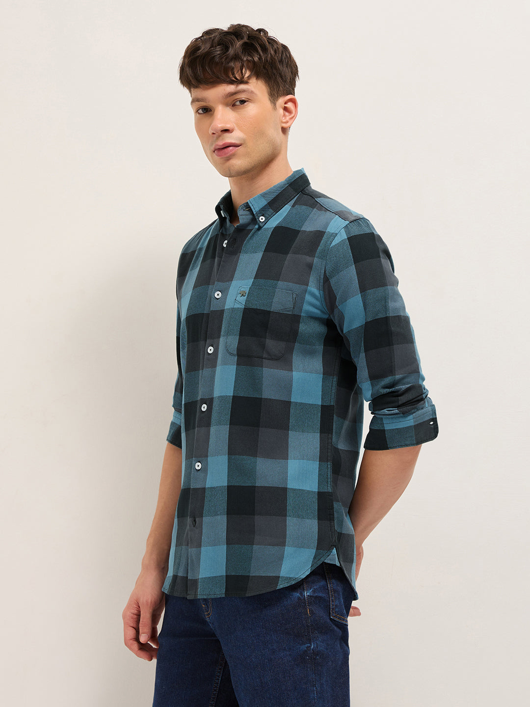 Blue with Black Woven Checks Slim Fit Casual Shirt