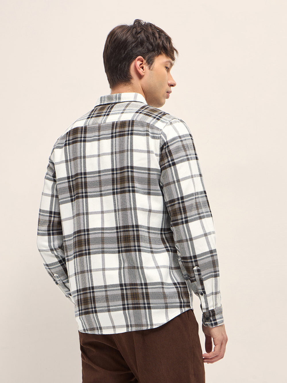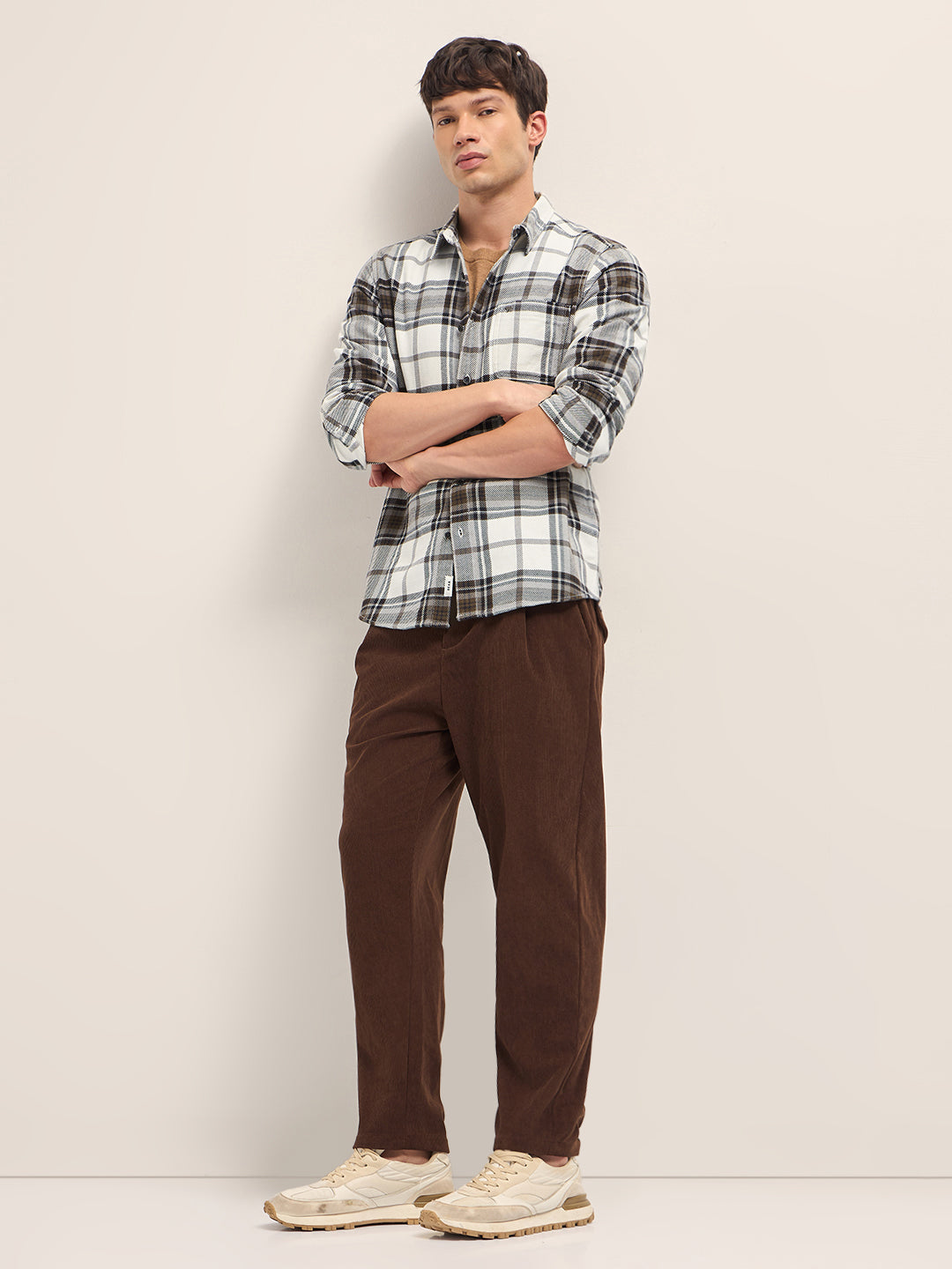 Cream & Brown Woven Check Regular Fit Casual Shirt