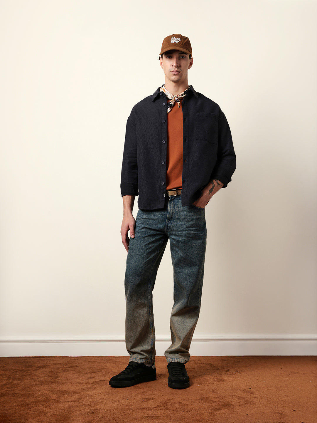 Shop Dark Blue Textured Crepe Relaxed Fit Overshirt Online. Explore our wide range of men's clothing collections. Free Shipping Hassle-free returns