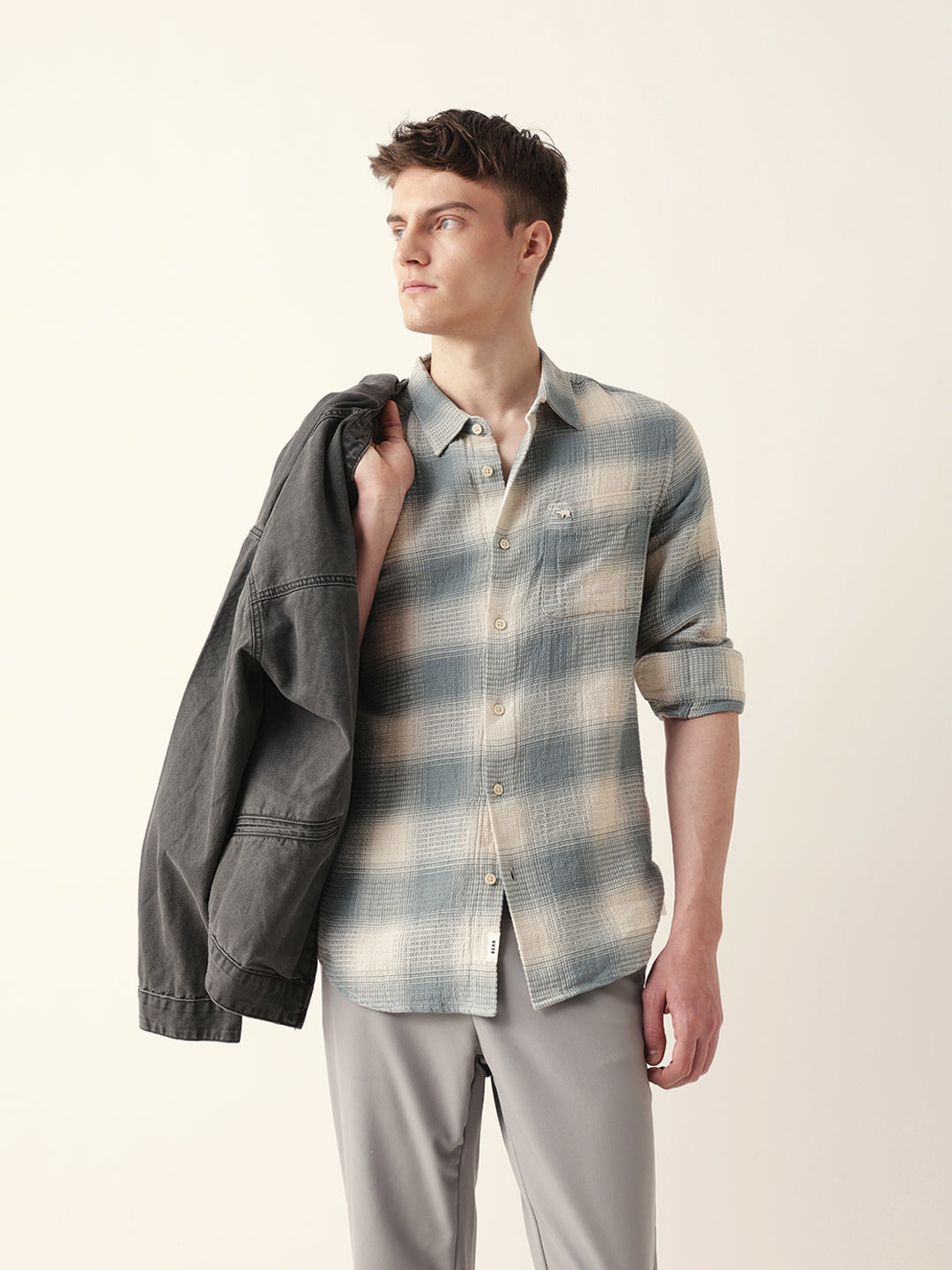 Shop Teal & Cream Woven Textured Checks Regular Fit Casual Shirt Online. Explore our wide range of men's clothing collections. Free Shipping Hassle-free returns