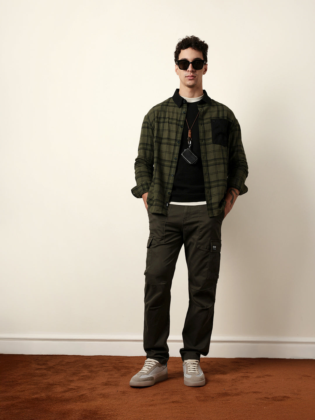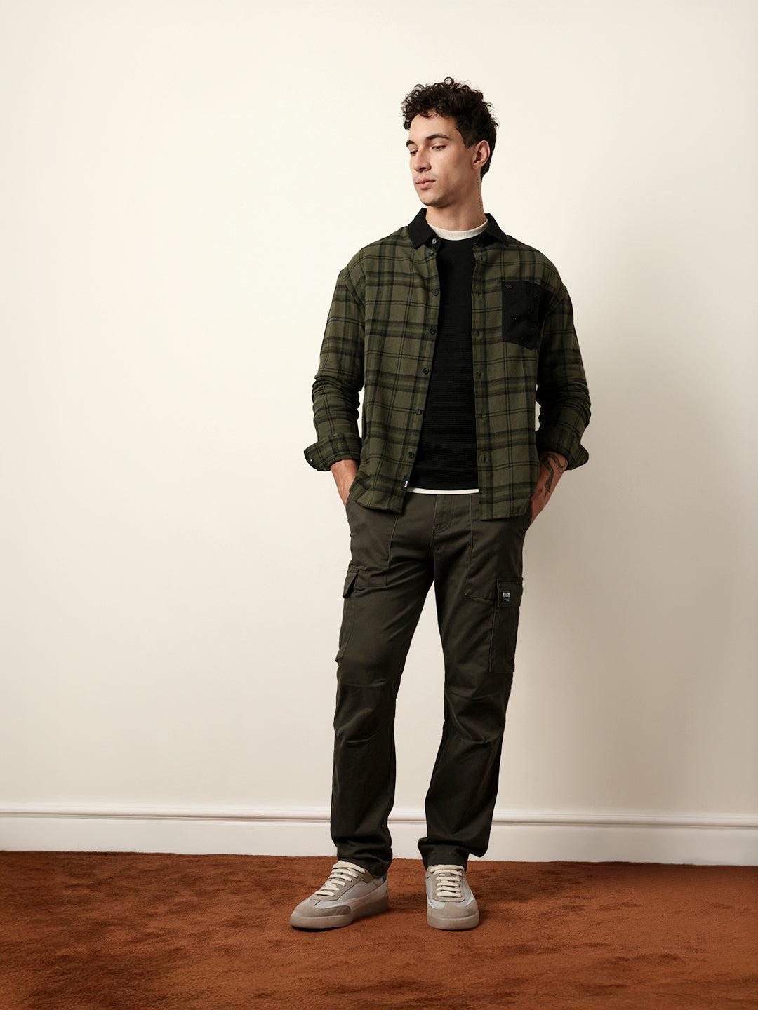 Shop Olive Checked Relaxed Fit Overshirt with Solid Back Online. Explore our wide range of men's clothing collections. Free Shipping Hassle-free returns