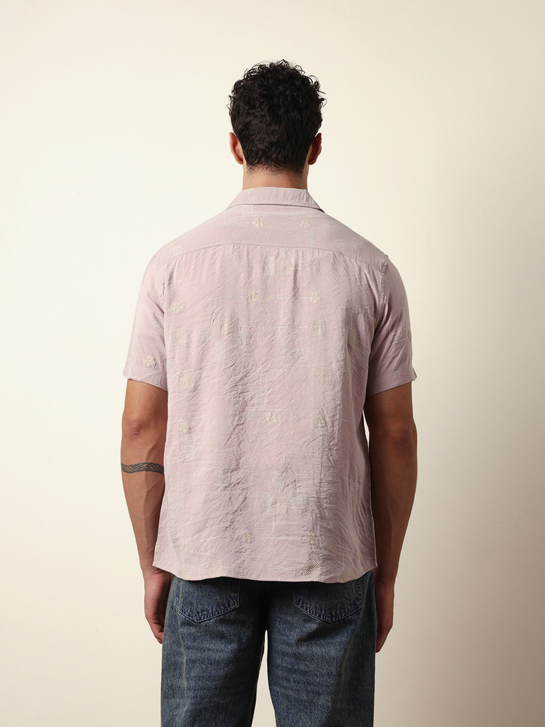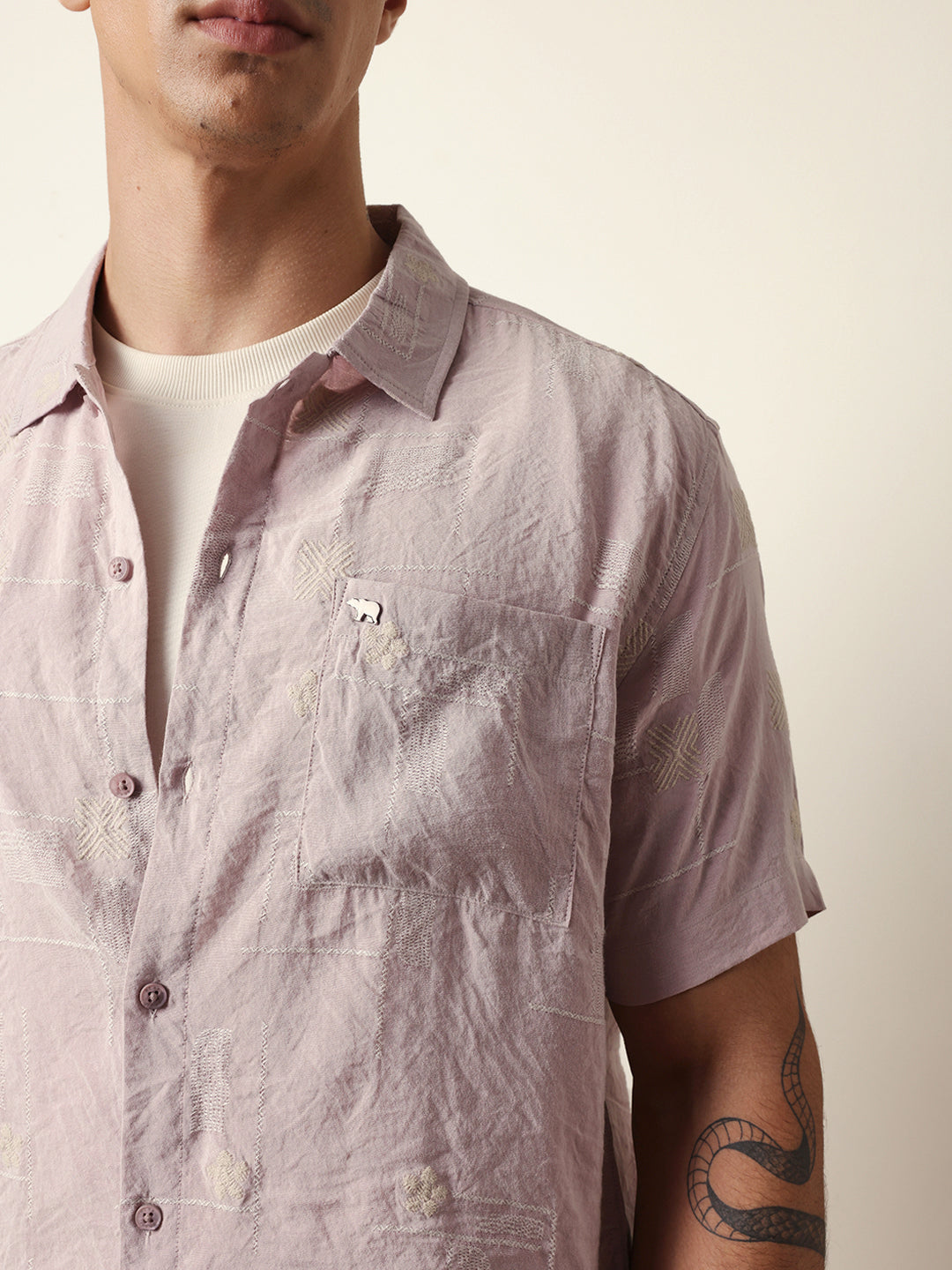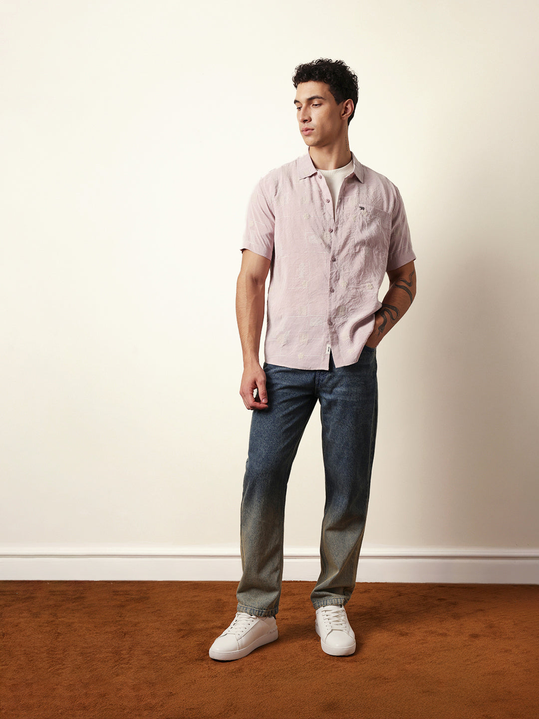 Pink Embroidered Motif Regular Fit Casual Shirt