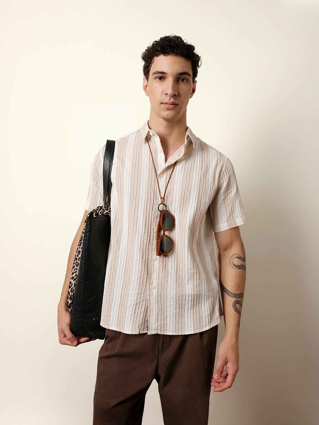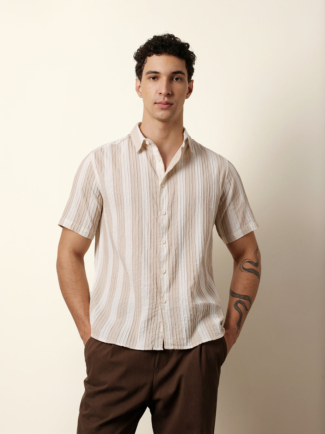 Shop Beige & Cream Vertical Striped Regular Fit Half Sleeve Shirt Online. Explore our wide range of men's clothing collections. Free Shipping Hassle-free returns