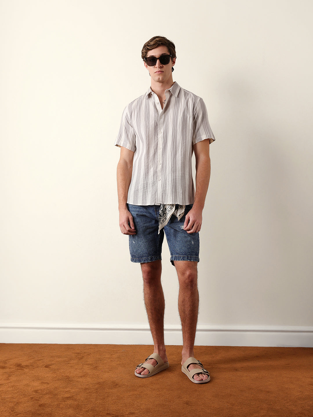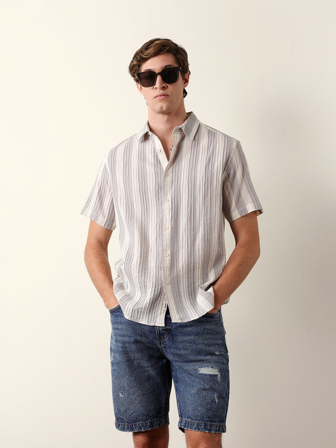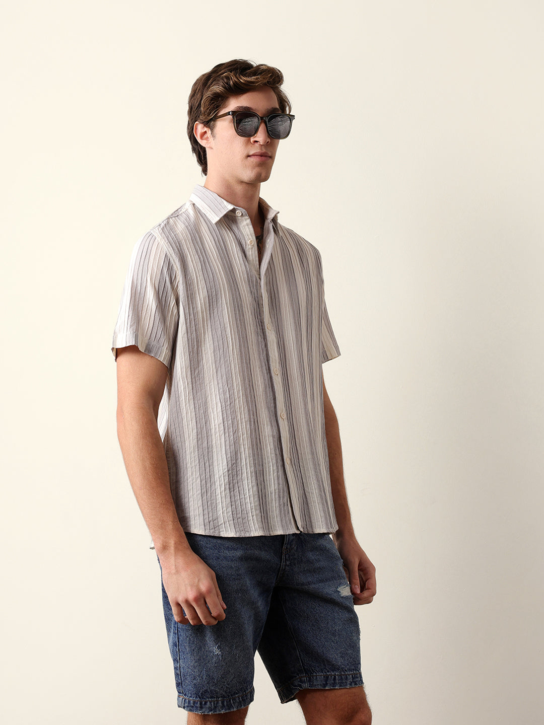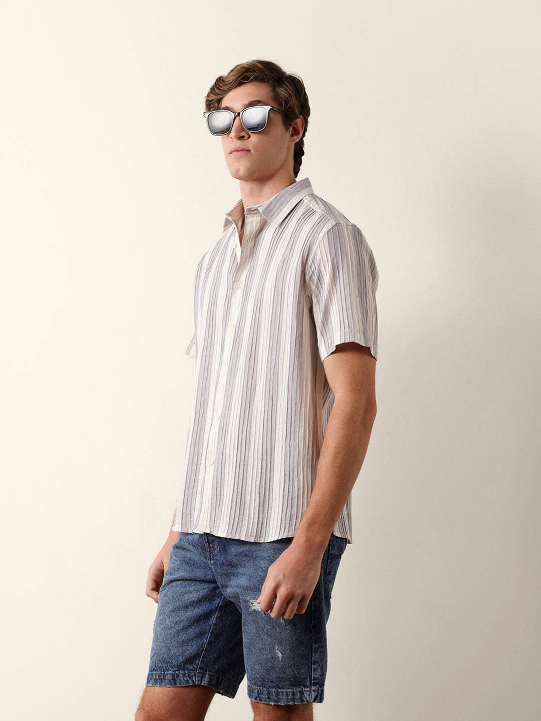 Shop Grey & Cream Vertical Striped Regular Fit Half Sleeve Shirt Online. Explore our wide range of men's clothing collections. Free Shipping Hassle-free returns