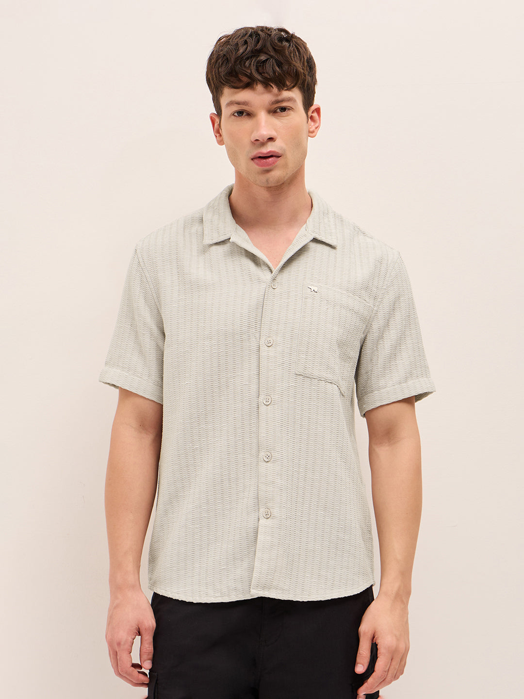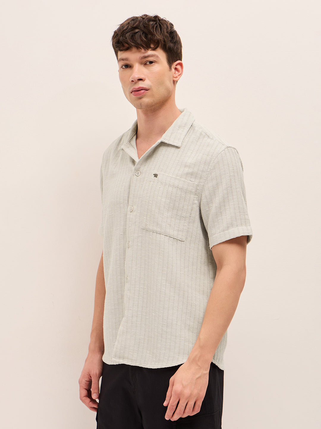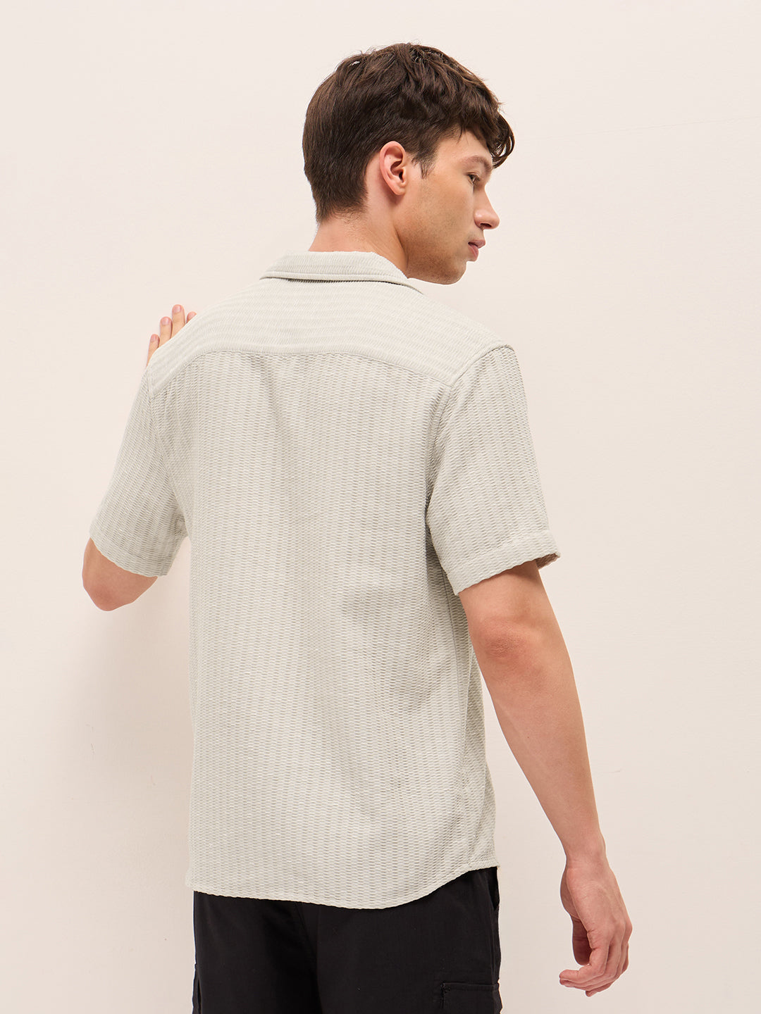 Light Grey Textured Relaxed Fit Half-Sleeve Casual Shirt