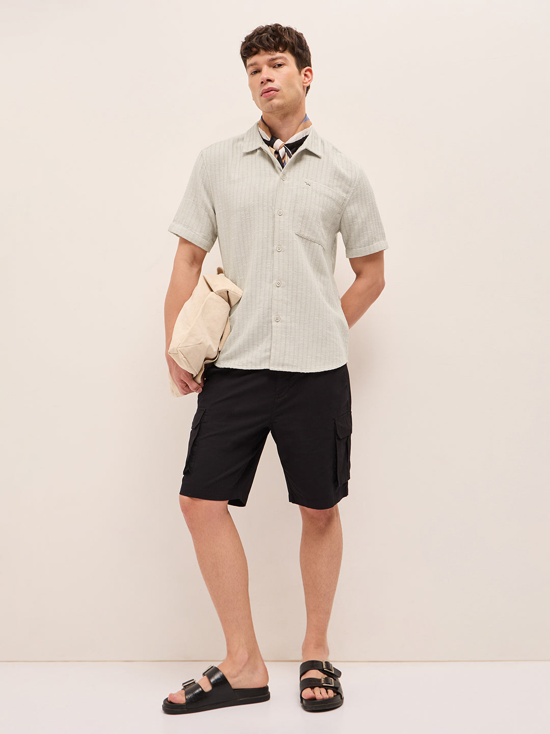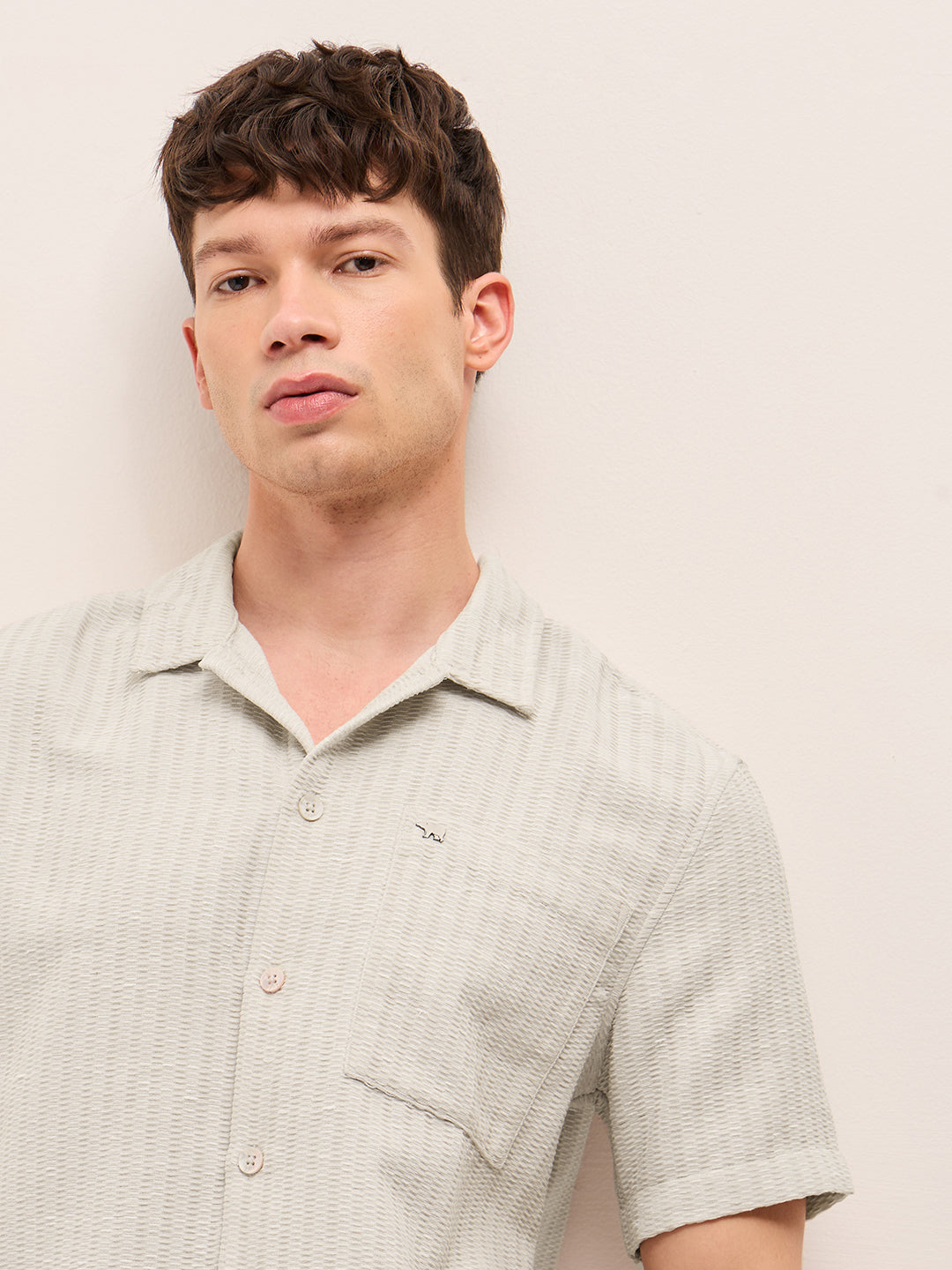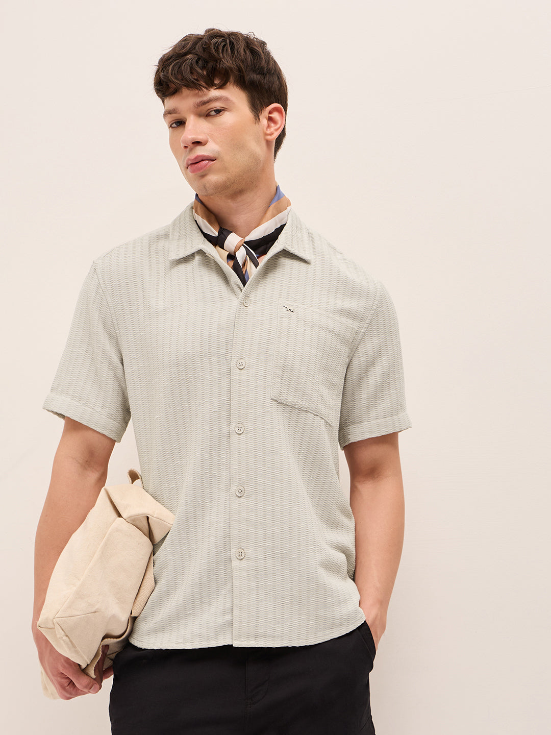 Light Grey Textured Relaxed Fit Half-Sleeve Casual Shirt