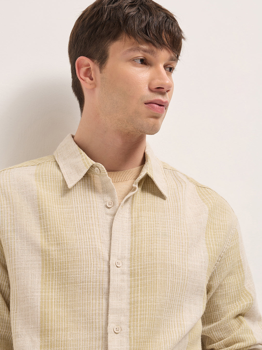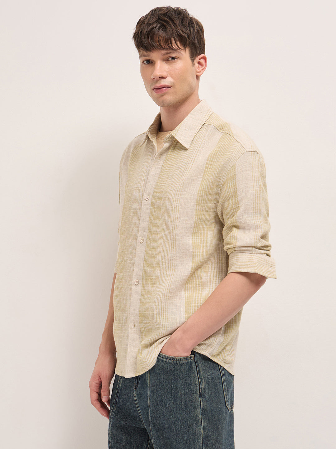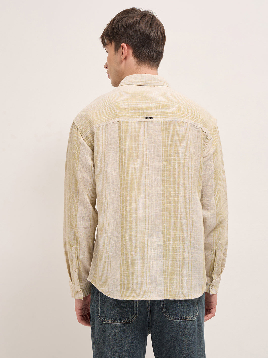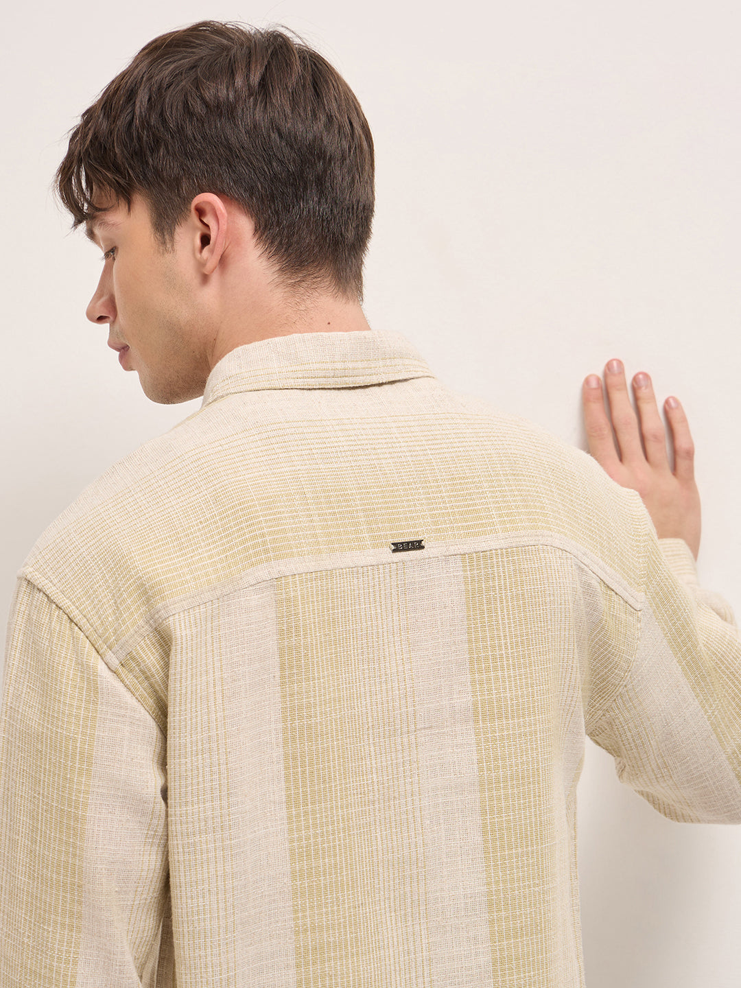 Green Relaxed Fit Overshirt with Woven Pinstripe Design