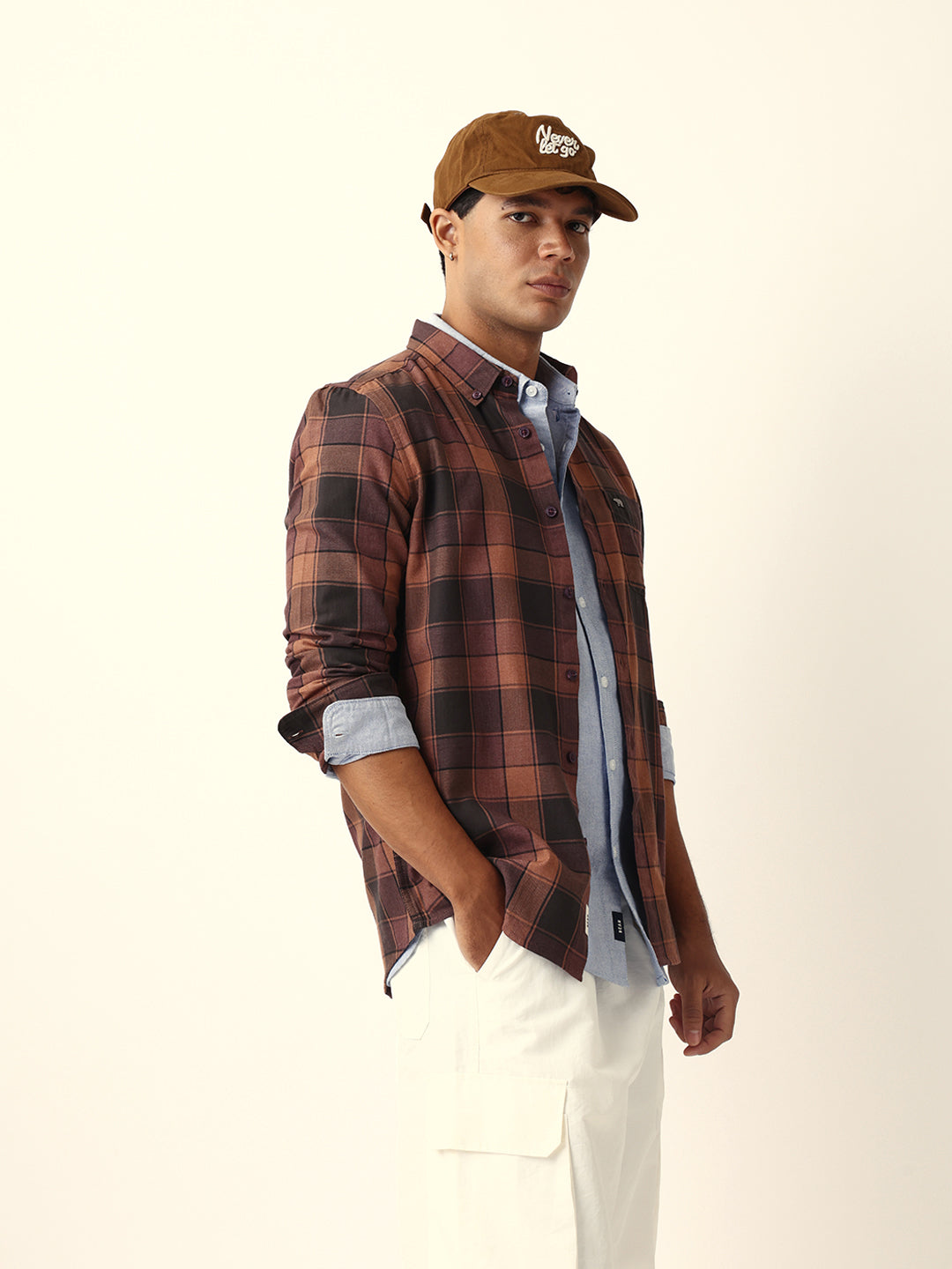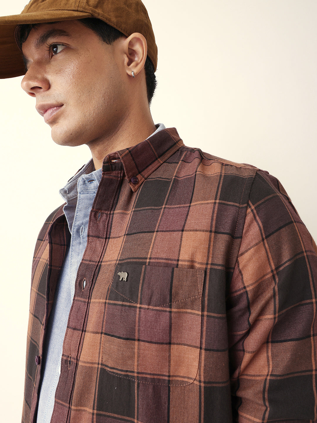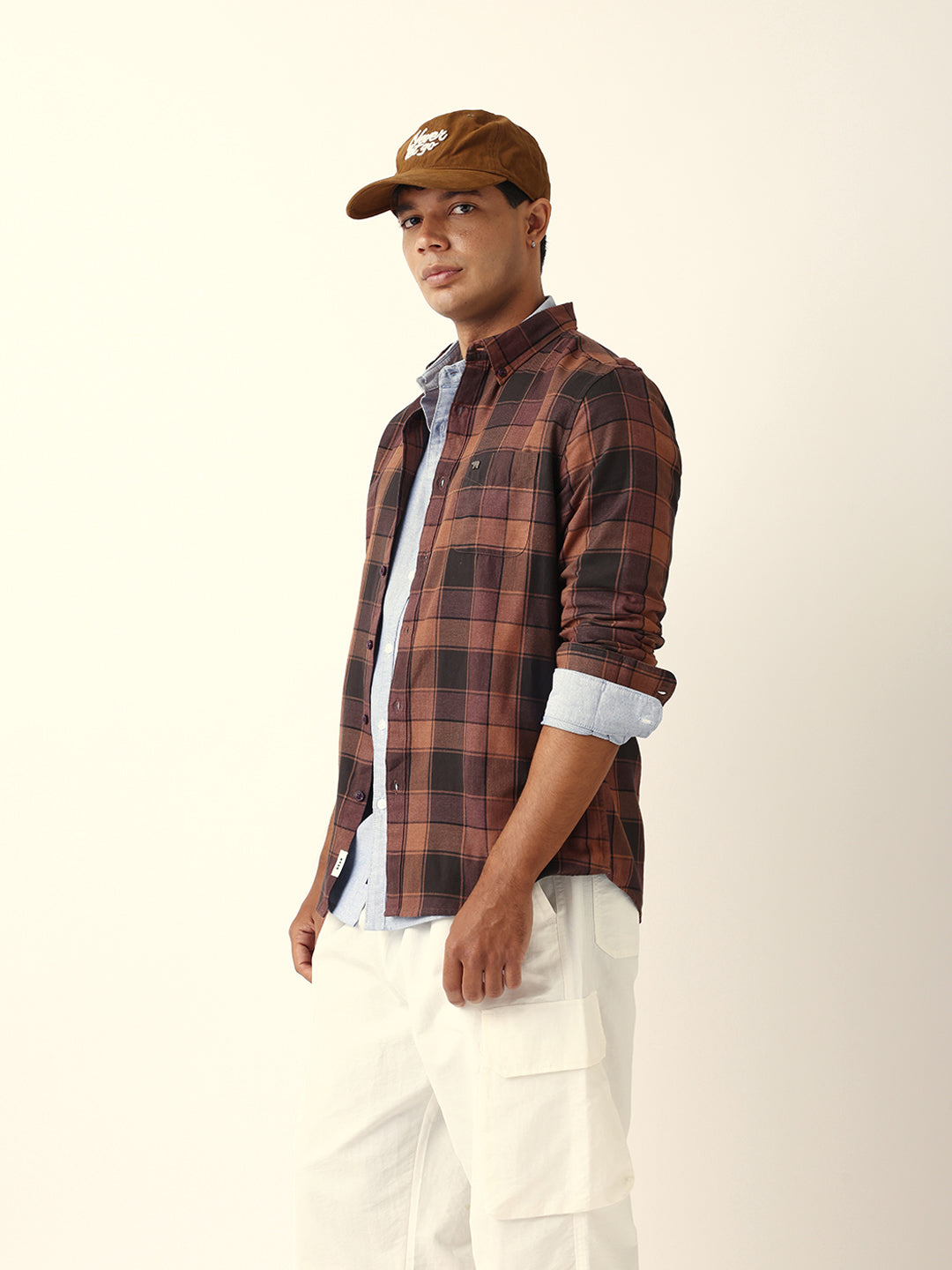 Shop Multicolor Woven Tartan Checks Slim Fit Casual Shirt Online.