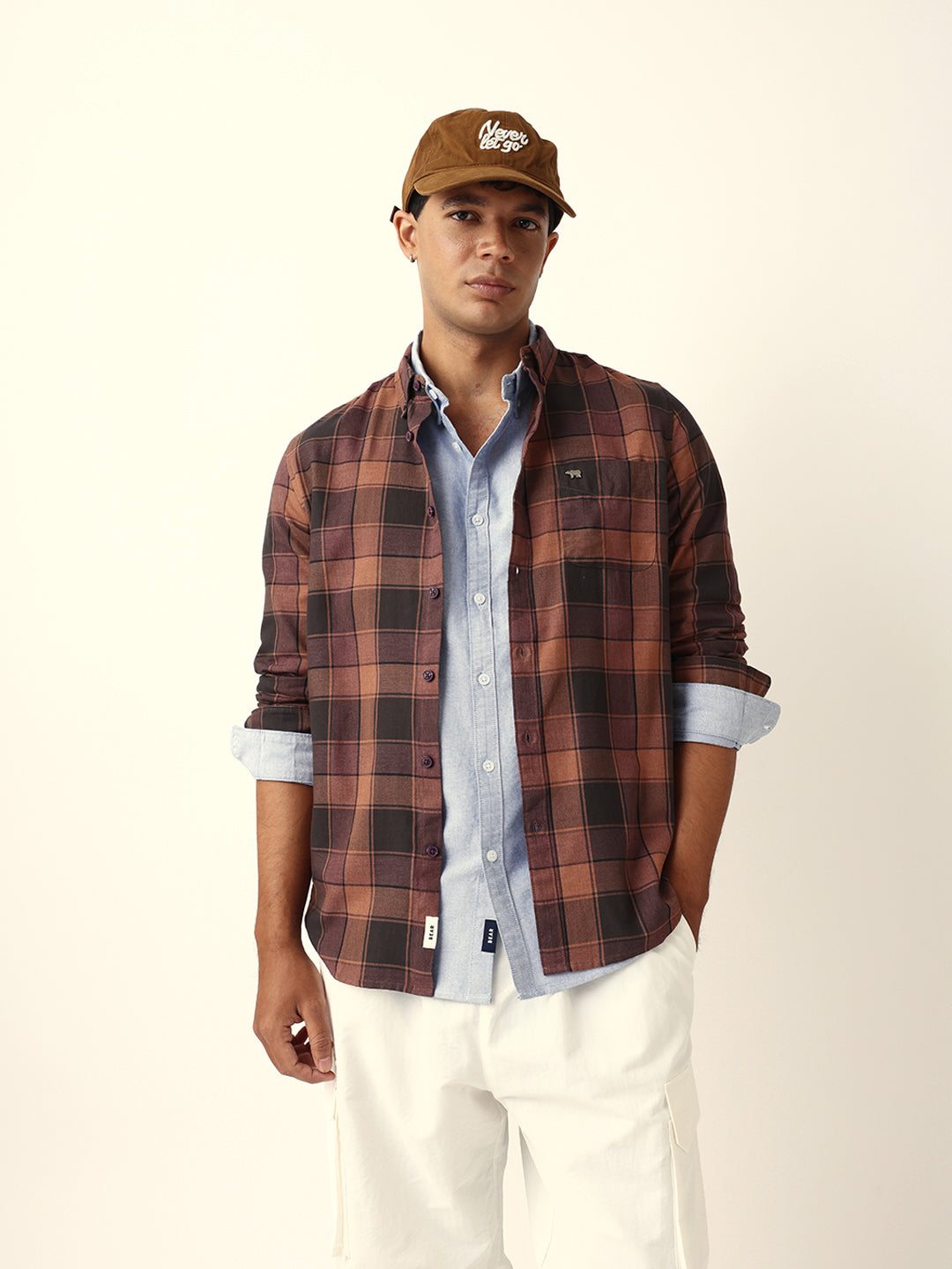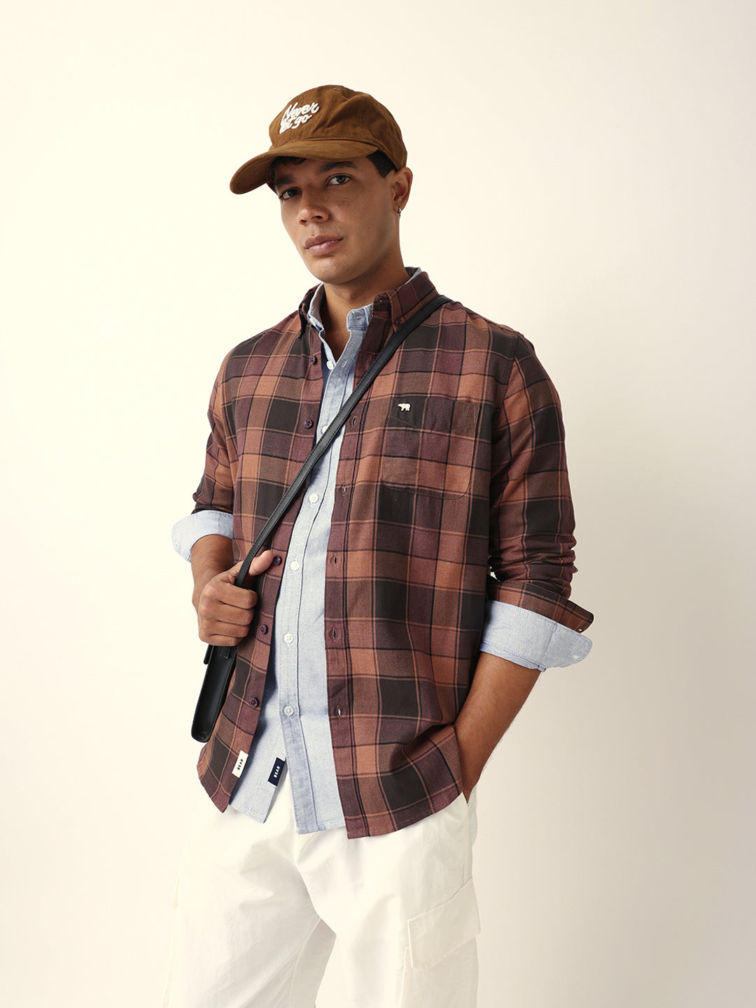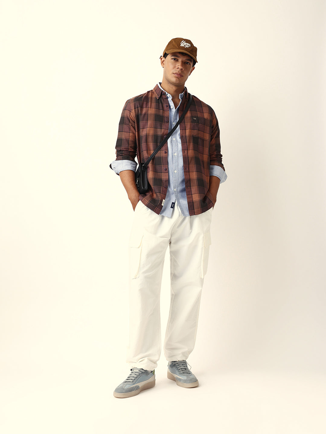 Shop Multicolor Woven Tartan Checks Slim Fit Casual Shirt Online.