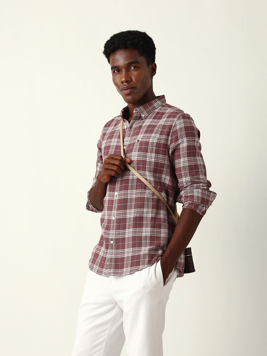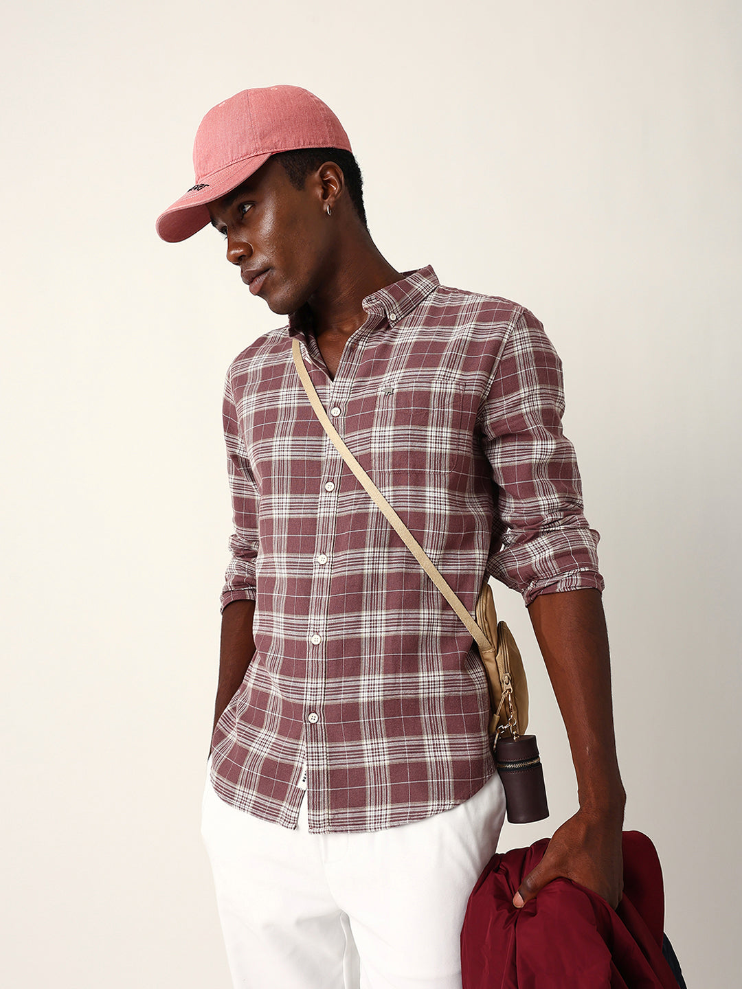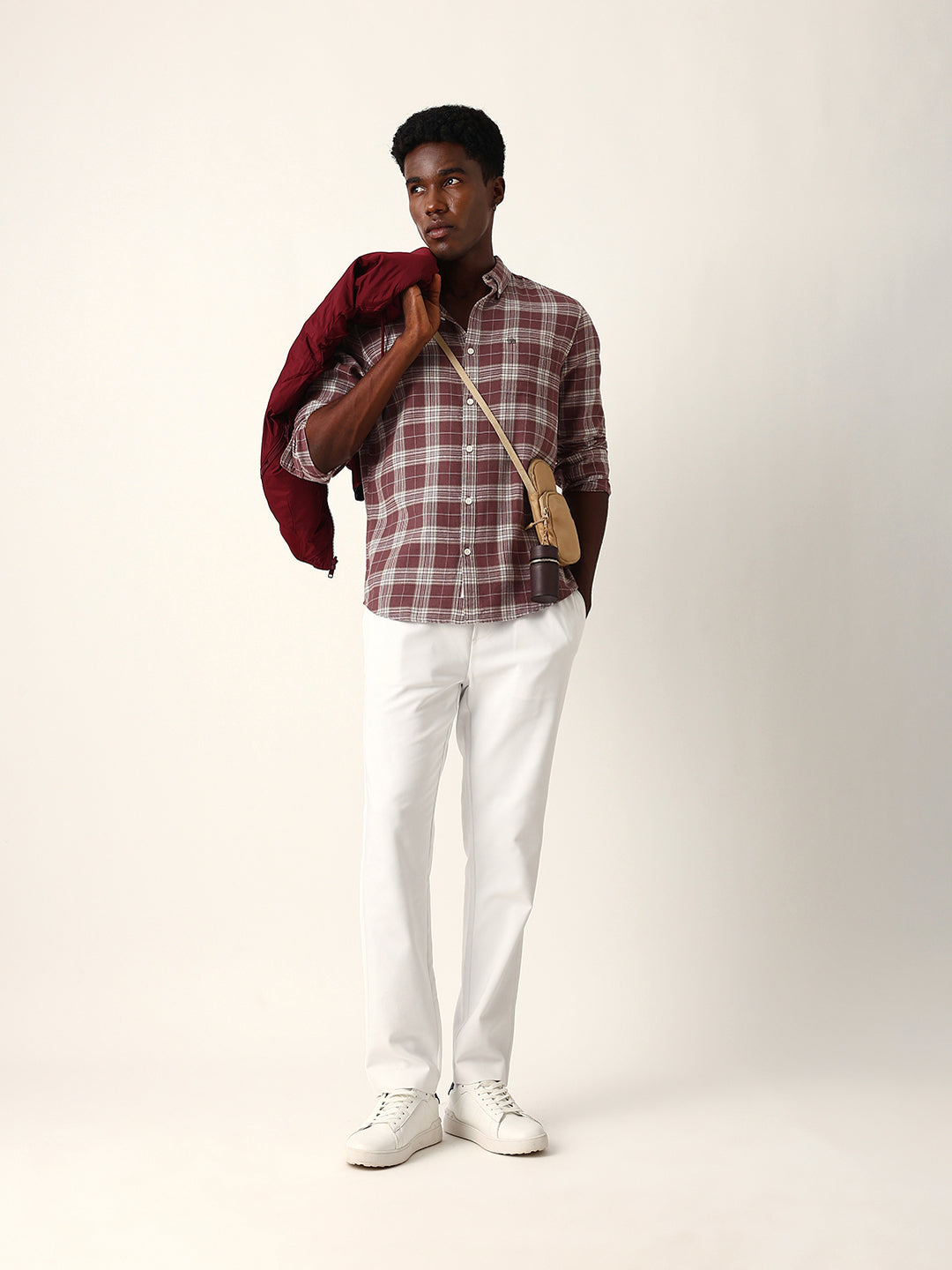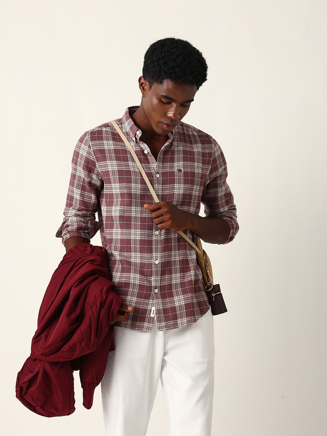 Shop Maroon & Cream Woven Checked Slim Fit Casual Shirt Online.
