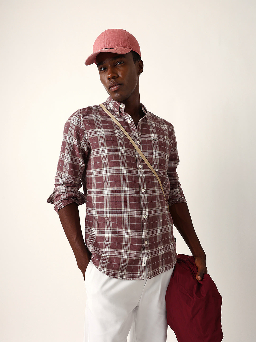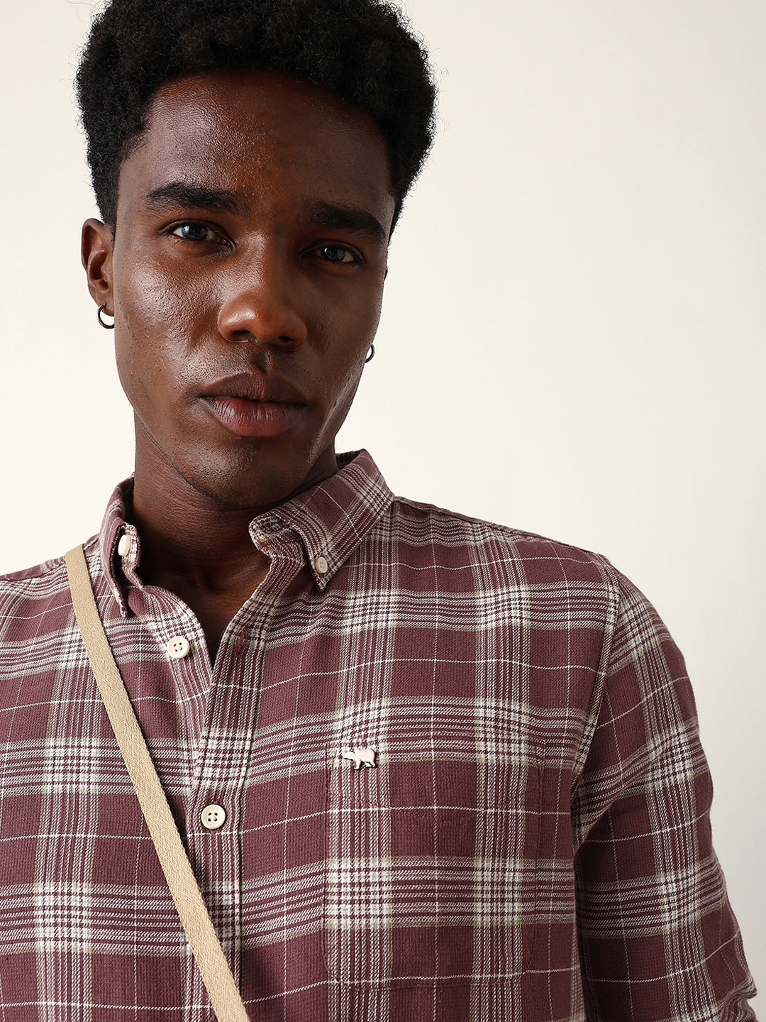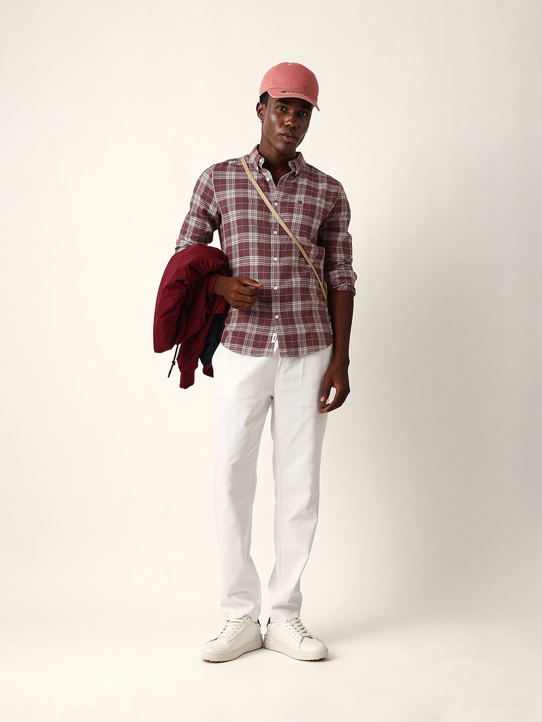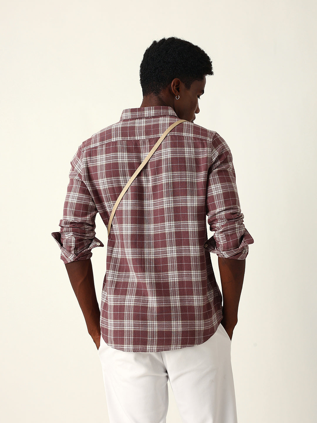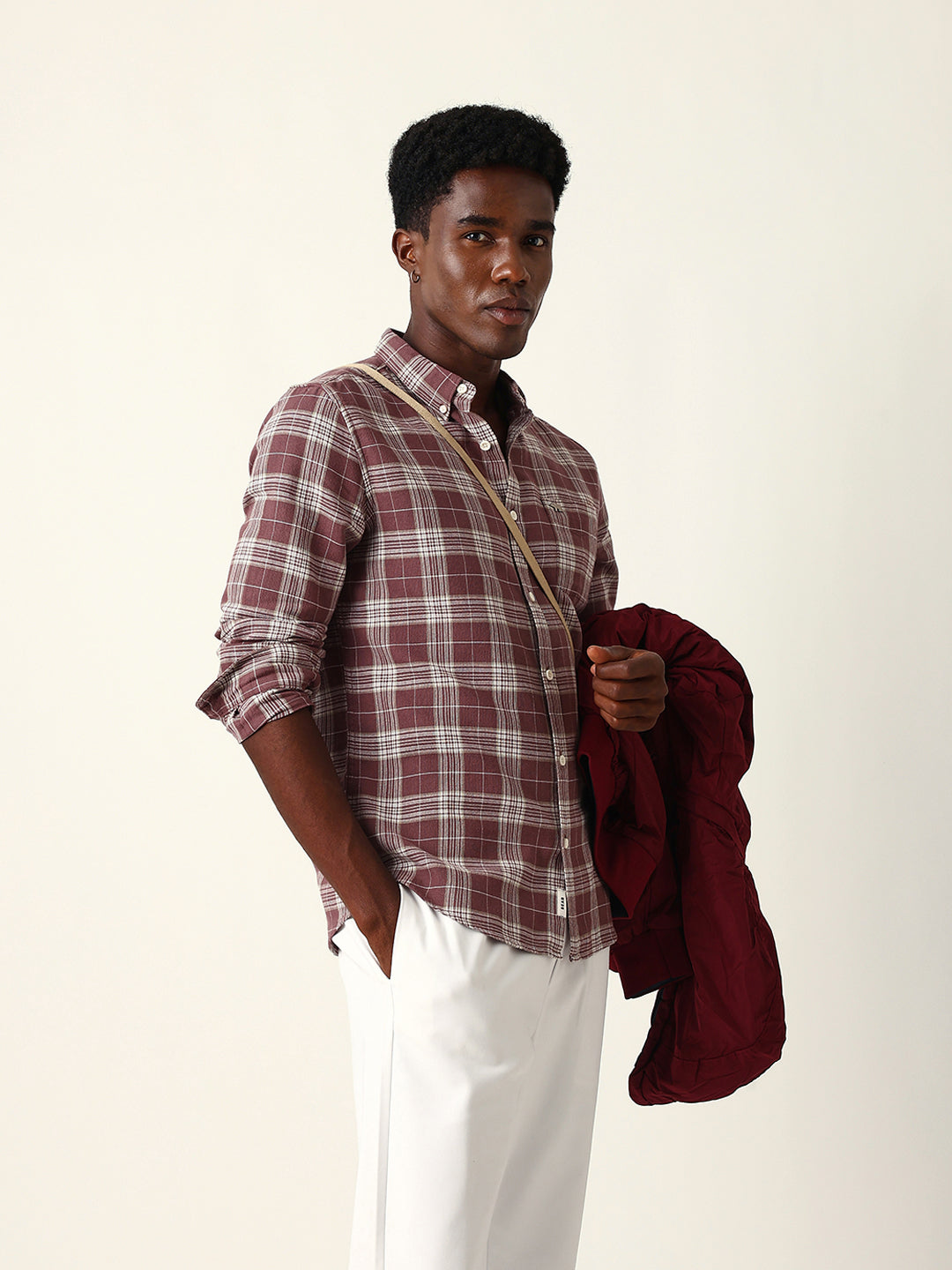 Shop Maroon & Cream Woven Checked Slim Fit Casual Shirt Online.
