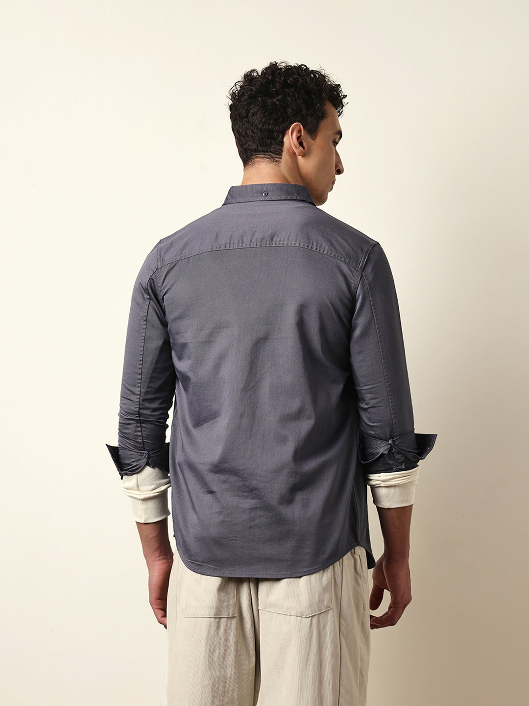 Shop Grey Solid Slim-Fit Casual Shirt with Button-Down Collar Online.