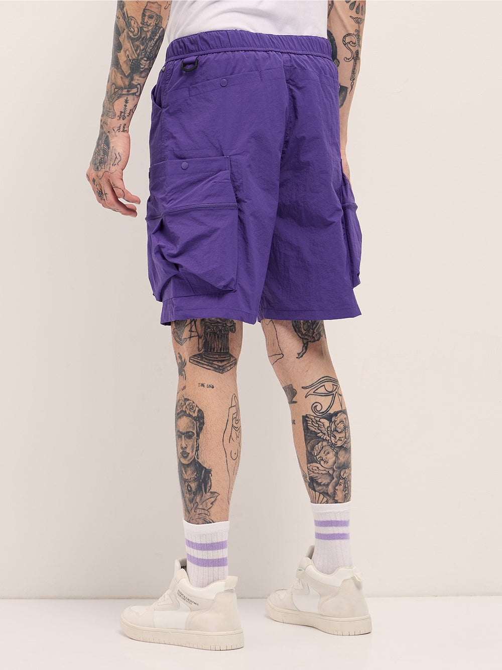 Shop Purple Solid Cargo Shorts with Multiple Utility Pockets Online