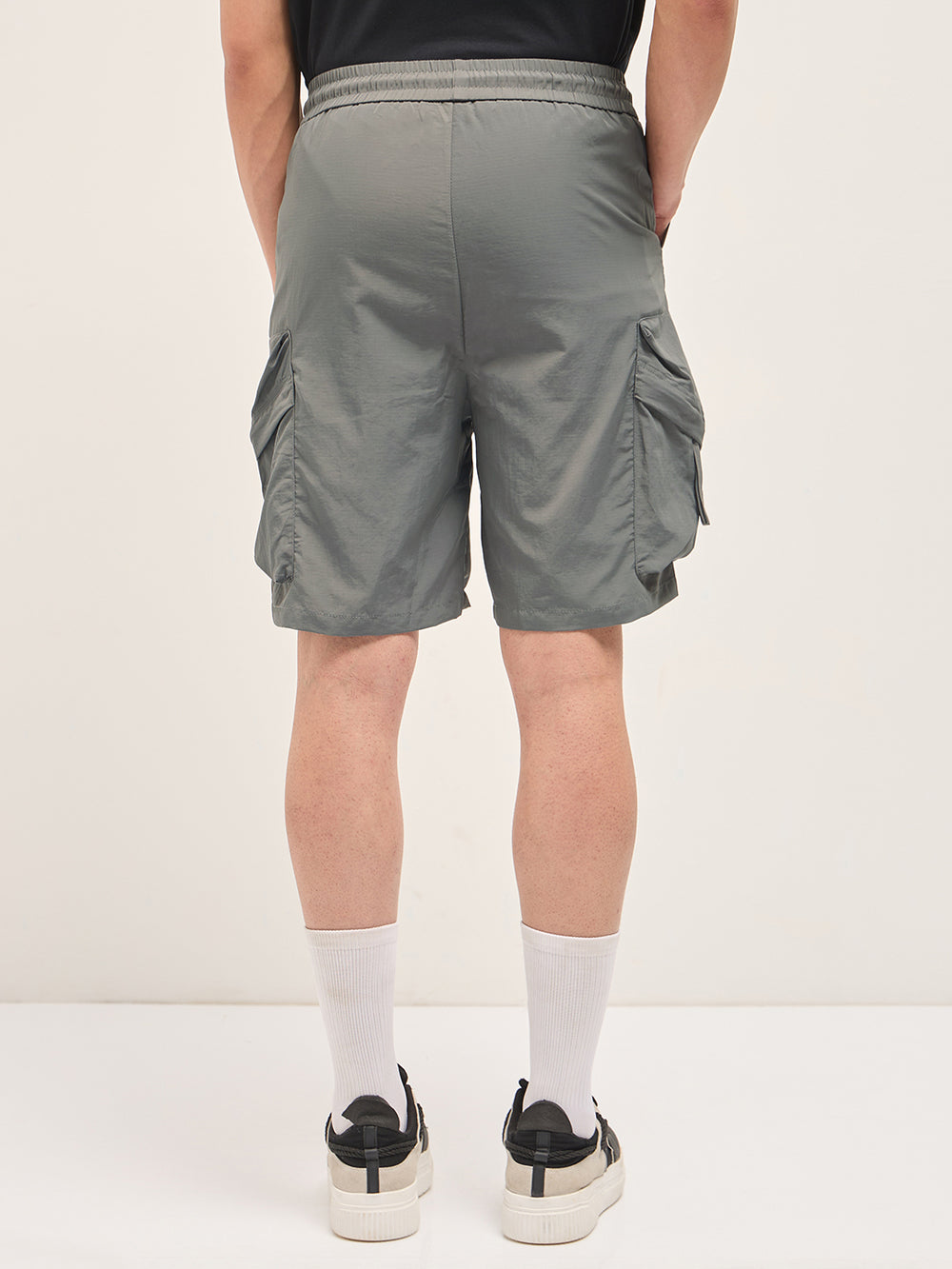 Shop Grey Regular Fit Knee-Length Cargo Shorts Online