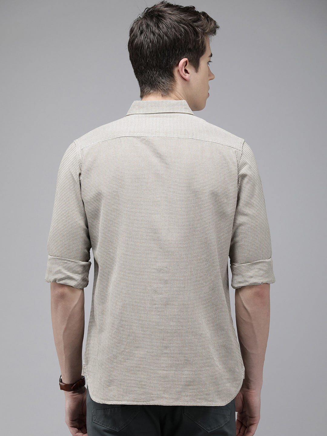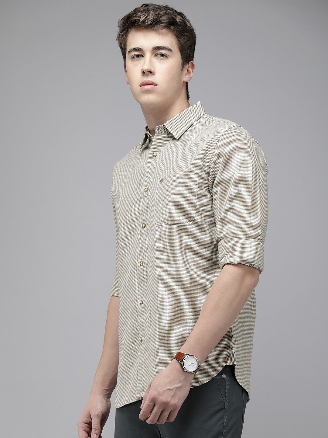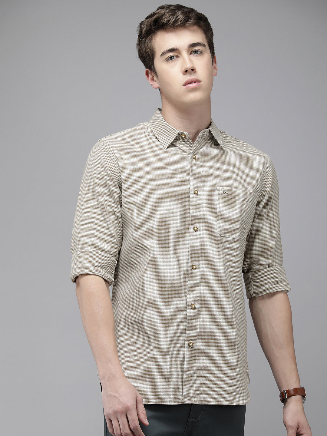 Men Brown Hounds tooth Checked Slim Fit Cotton Casual Shirt