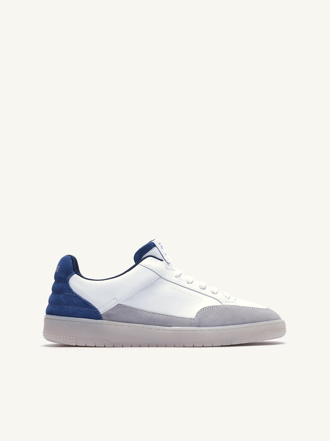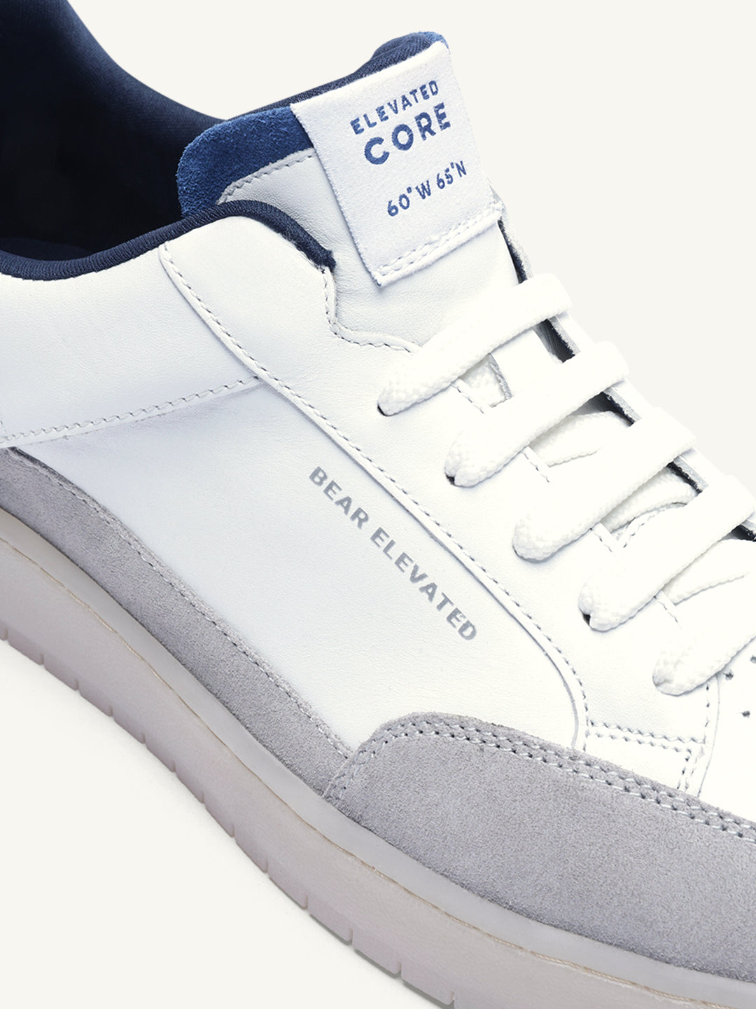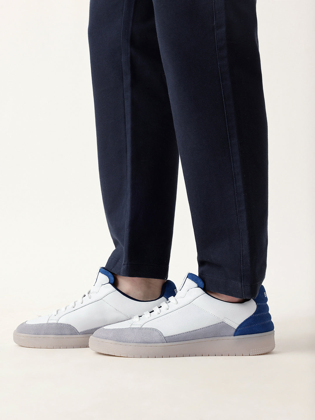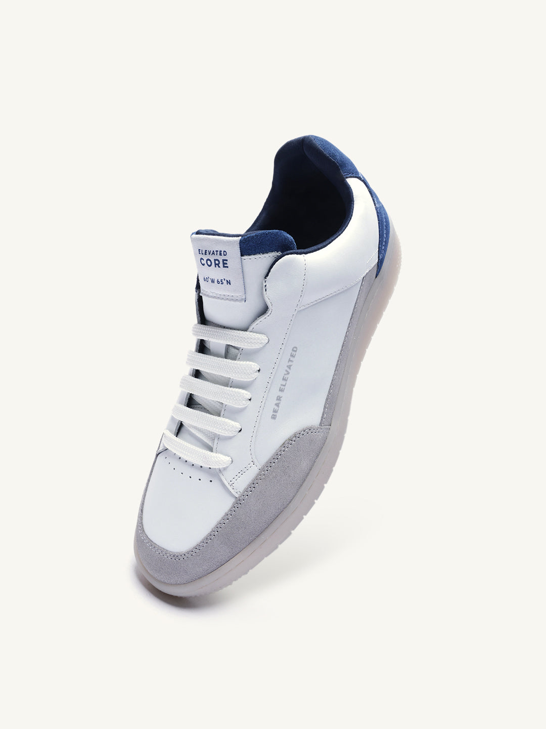 White Leather & Suede Lace-Up Sneakers with TPR Sole
