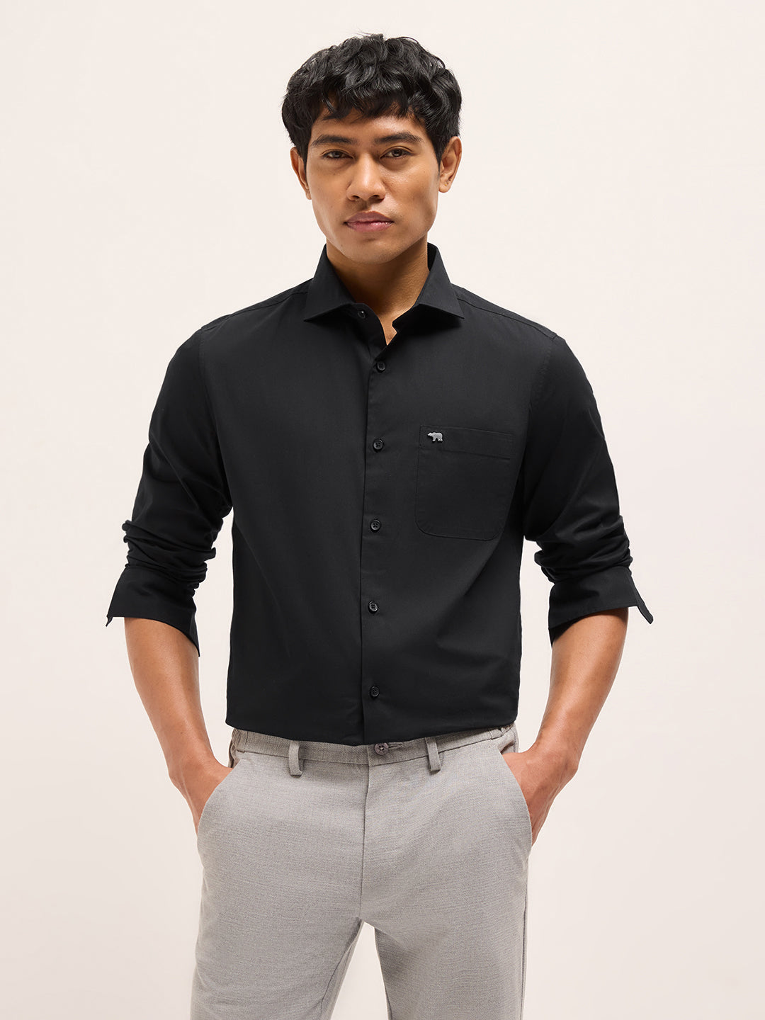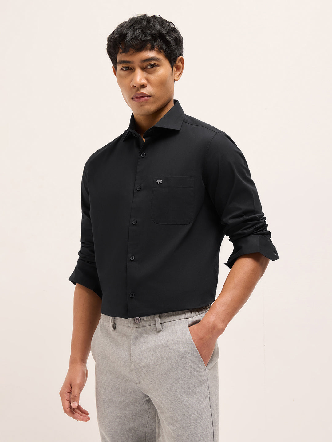 Black Solid Tailored Fit Formal Shirt
