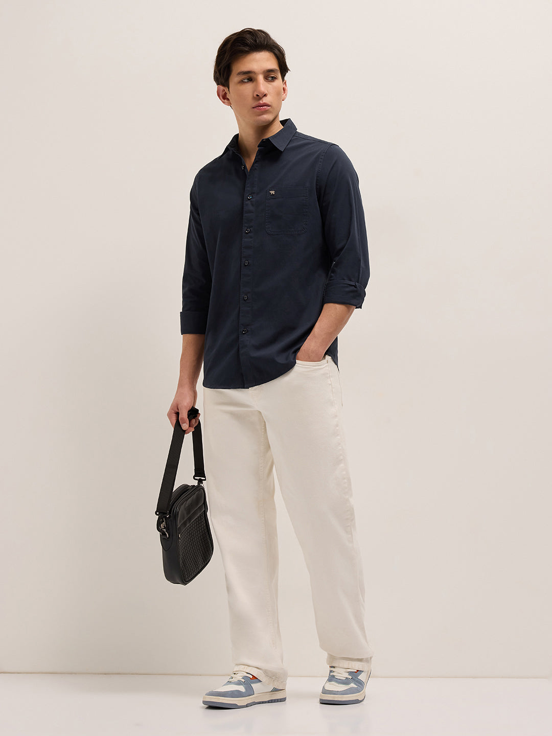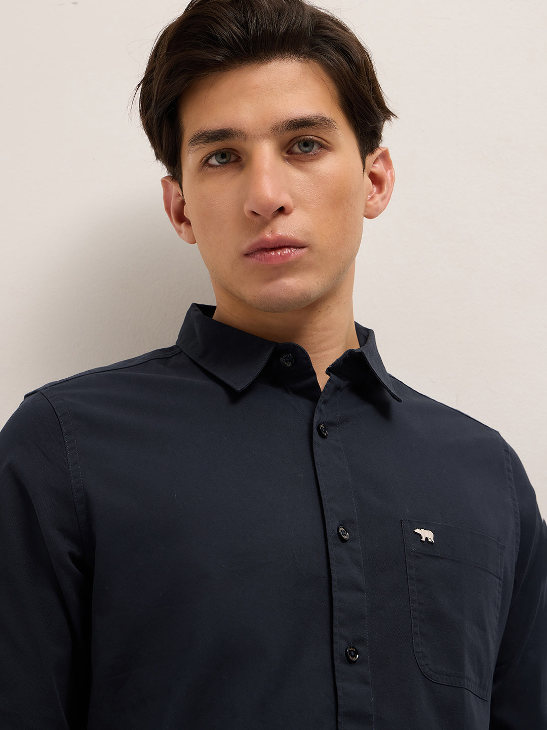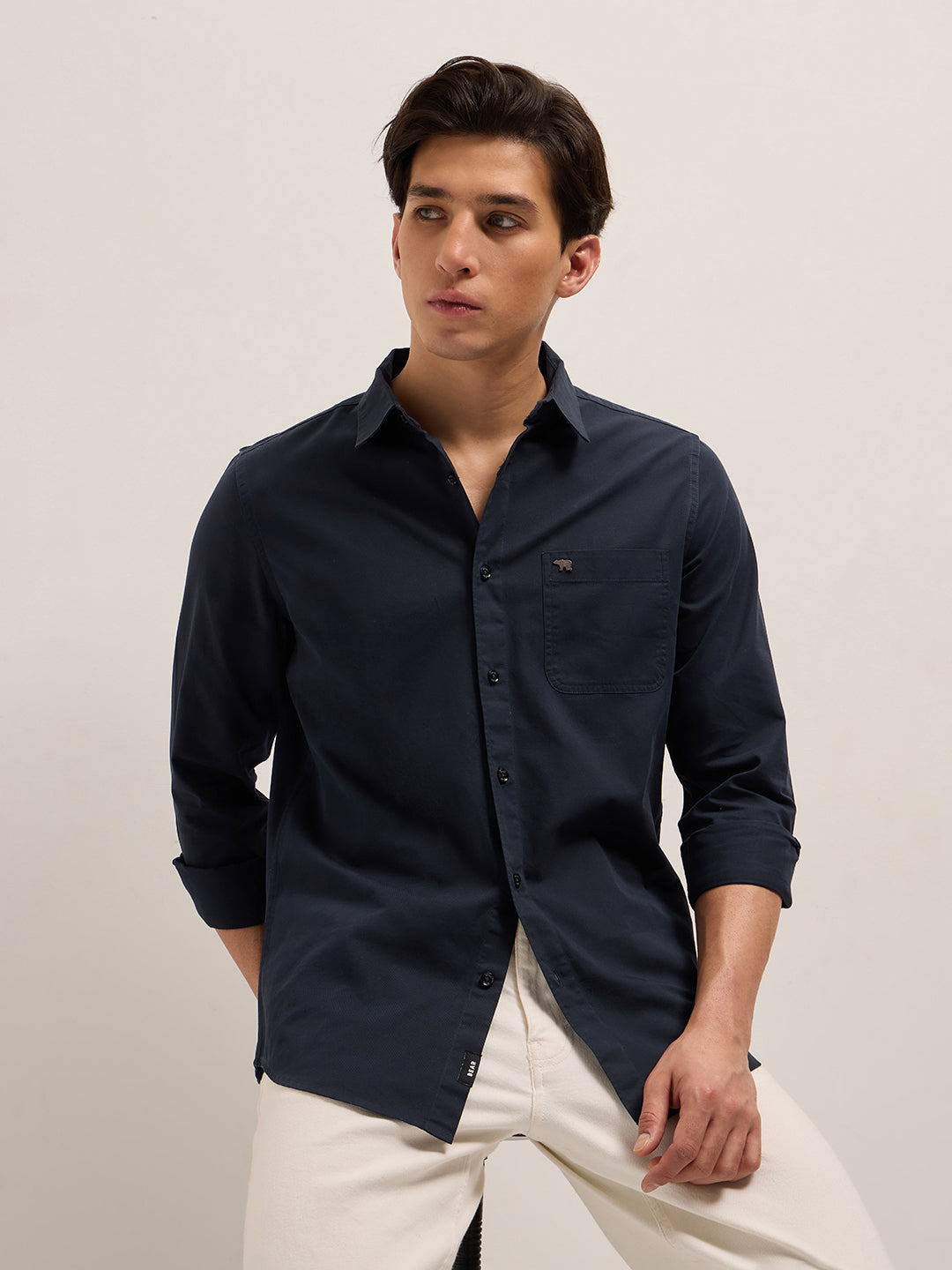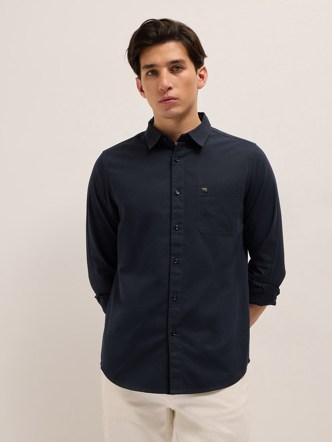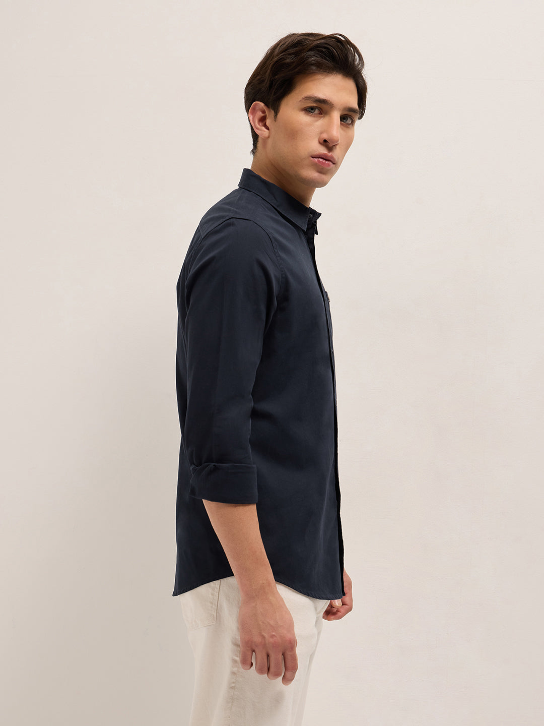 Navy Blue Cotton Solid Slim Fit Casual Shirt