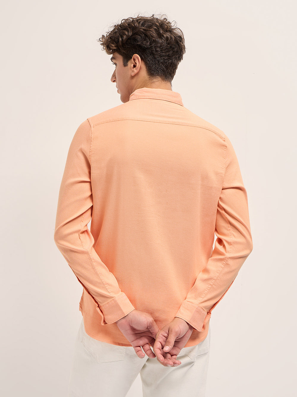 Orange Solid Cotton Blend Slim Fit Casual Shirt